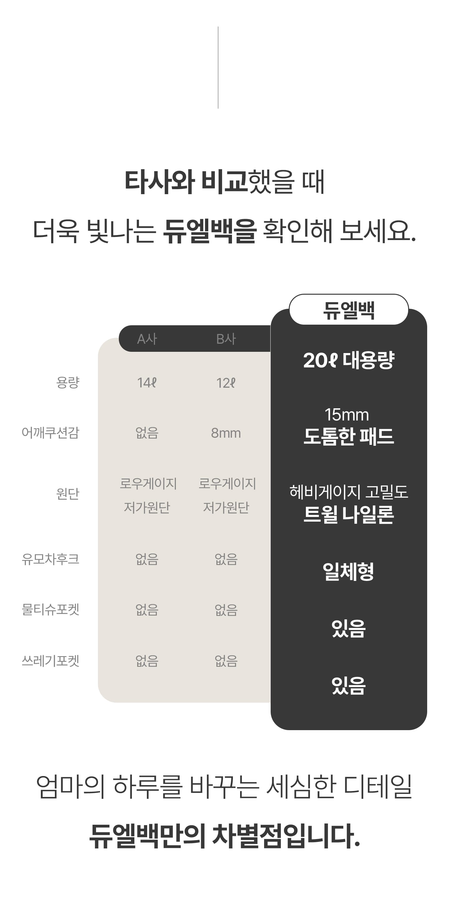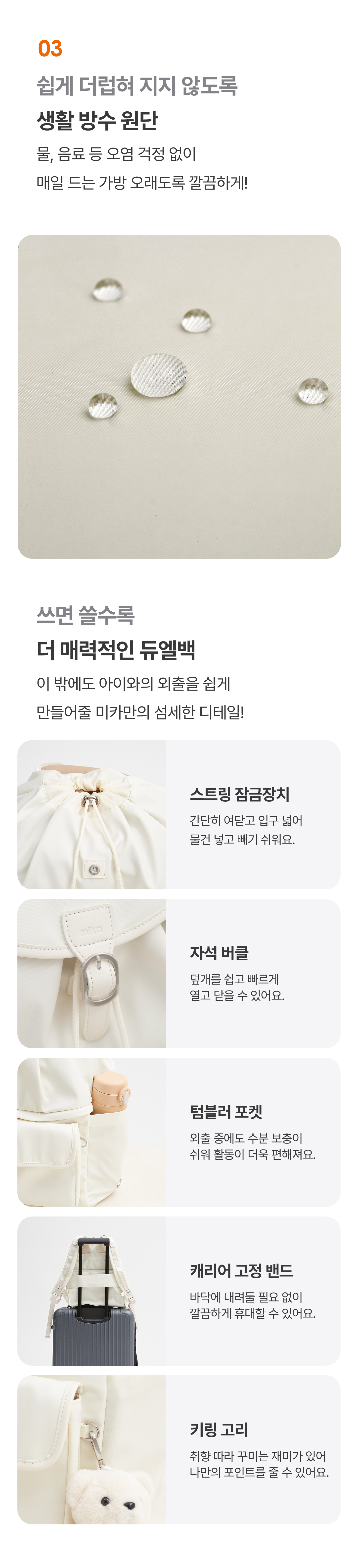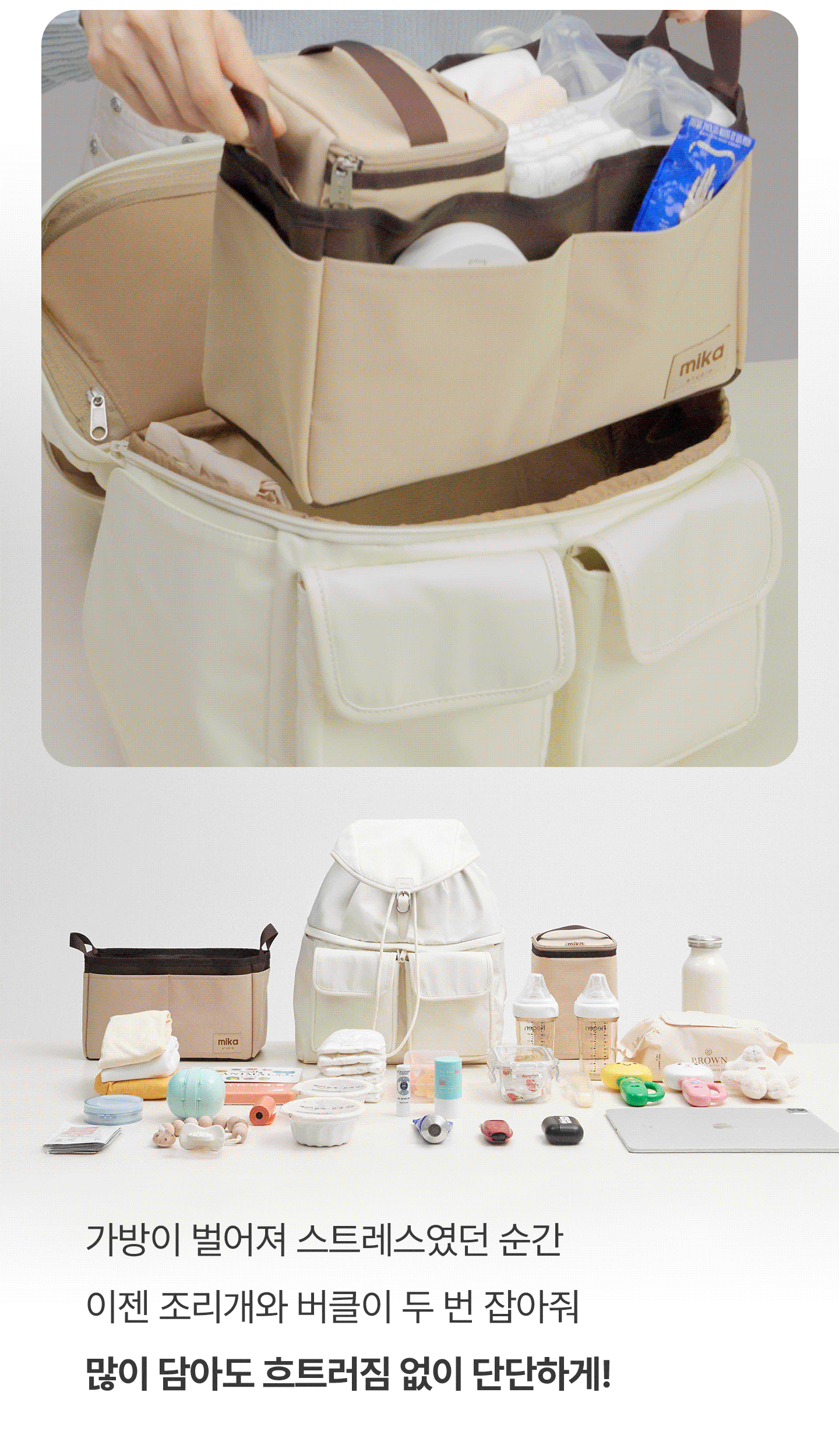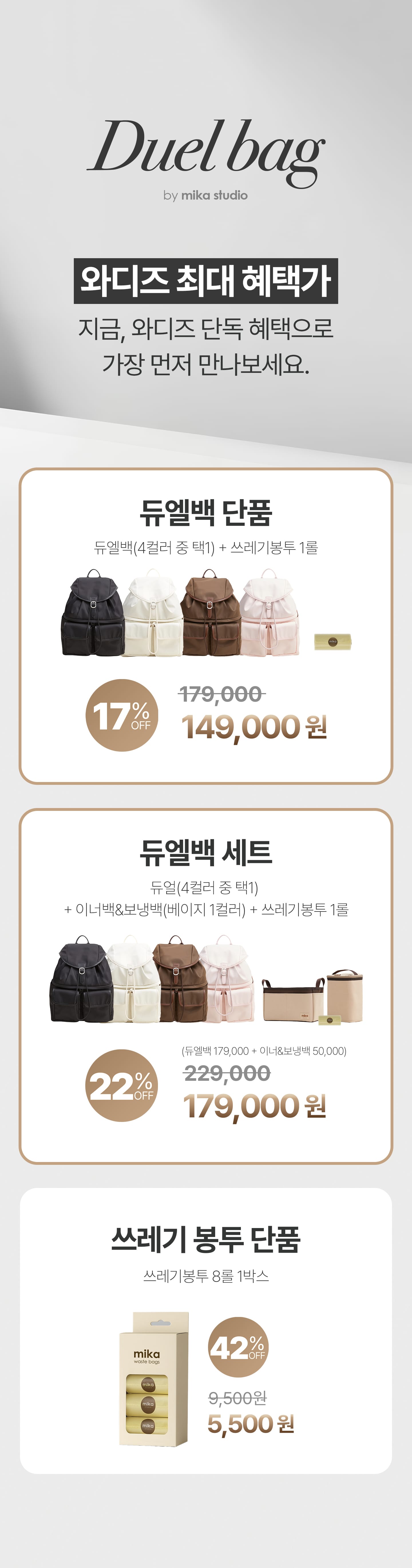 1. 🎒 上下分离收纳Duel包 - 创新设计,轻松收纳全天物品 2. 👜 育儿实用多功能包 - 配备湿巾和垃圾袋口袋,细节贴心 3. 💸 优惠及套装福利 - 单品及套装购买享折扣及赠品
