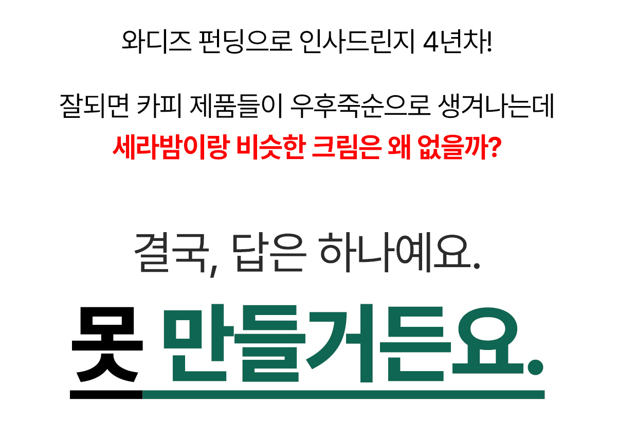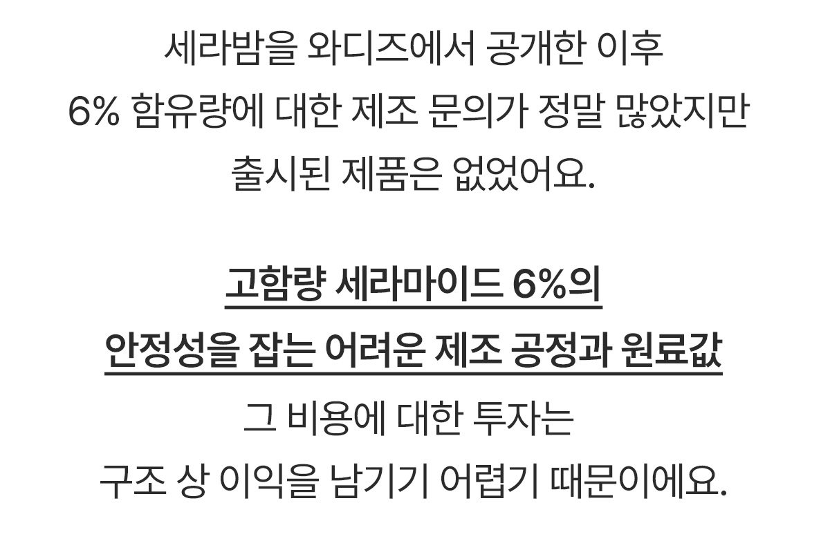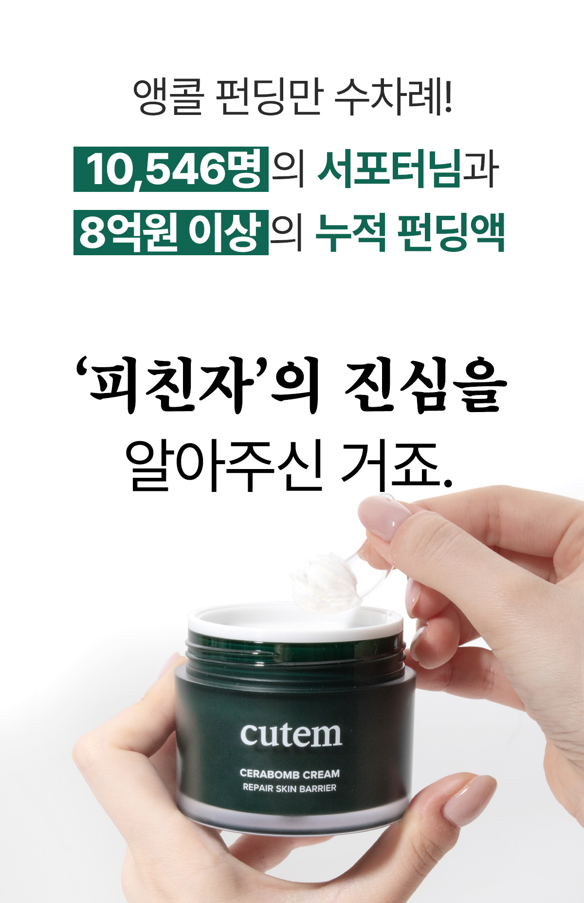 큐템은 오직 성분과 효과에 집중해 제품력이 확실한 화장품을 만들고자 2008년부터 현재까지 꾸준히 연구해 왔습니다. 그간 쌓아온 과정과 그 과정에 대한 진정한 가치를 알아봐주실 서포터 분들이 계시는 와디즈에서 2022년부터 세라밤 프로젝트를 이어왔습니다.