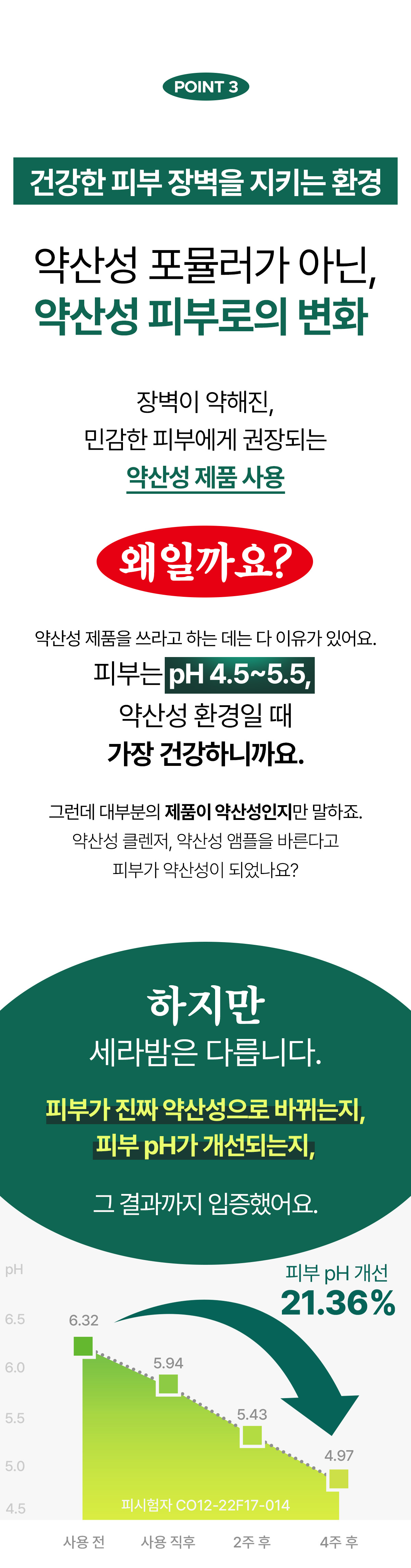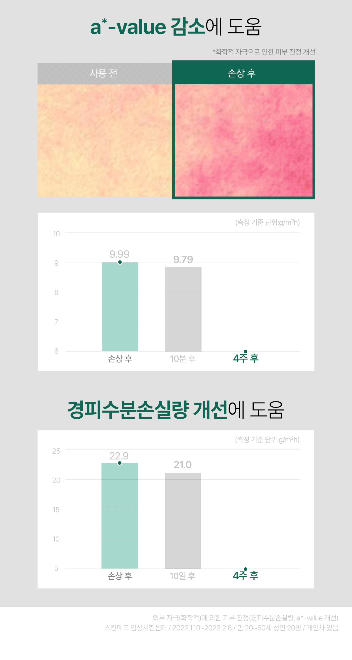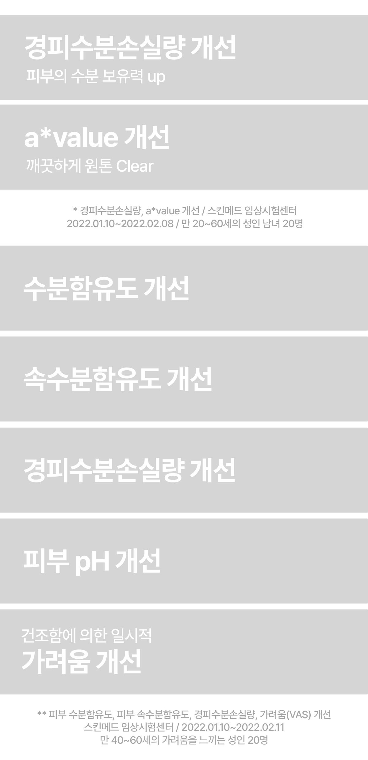 *피부 pH 개선 - 4주 사용 후 8.18% / 스킨메드 임상시험센터 / 2022. 1. 10~2022. 2. 11 / 성인 20명 / 개인차 있음