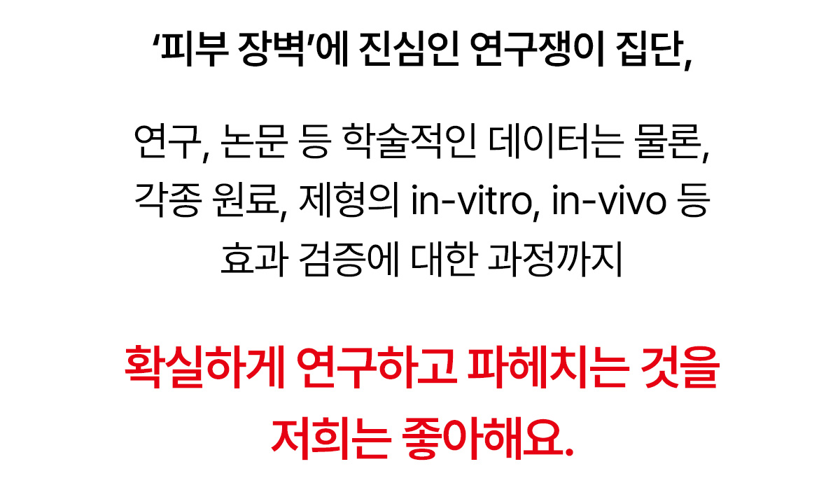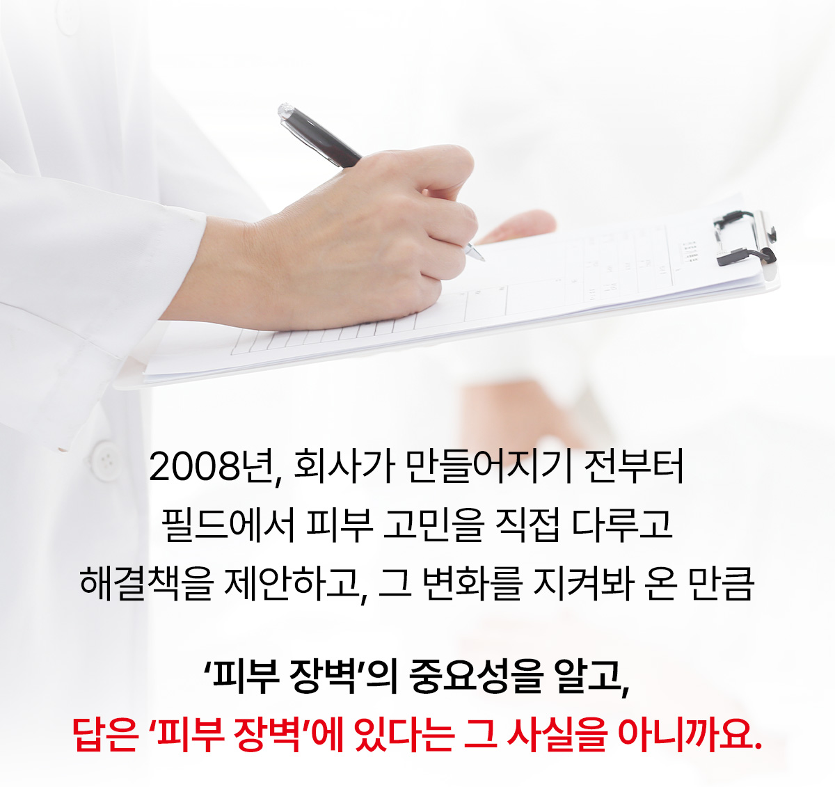 '피부 장벽' 연구에 미쳐있는 스페셜리스트들에게 서포터님의 고민은 맡겨만 두세요.