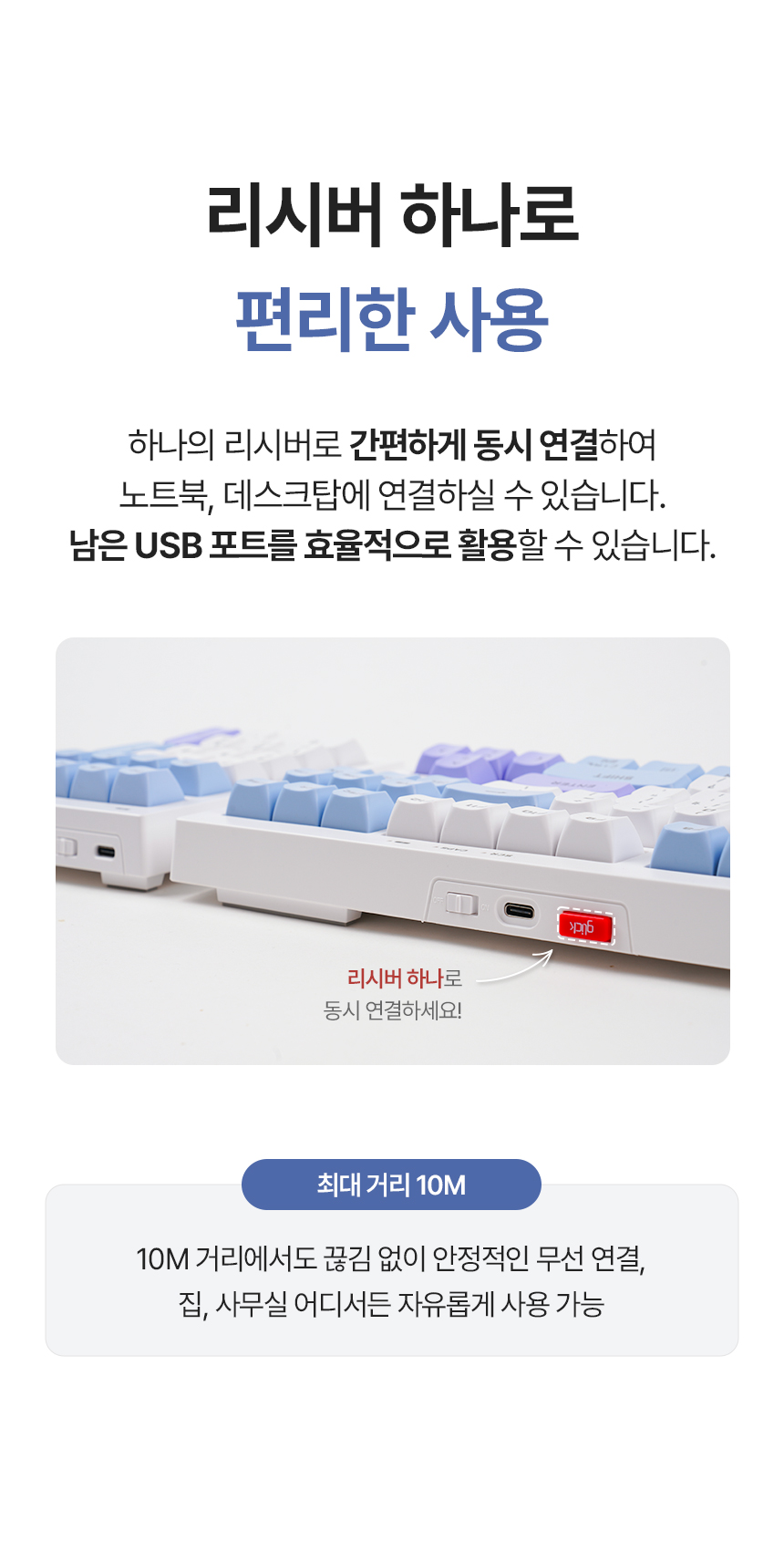 3. 필요에 따라 자유롭게 분리 가능한 구조4. USB 리시버 하나로 편리한 사용