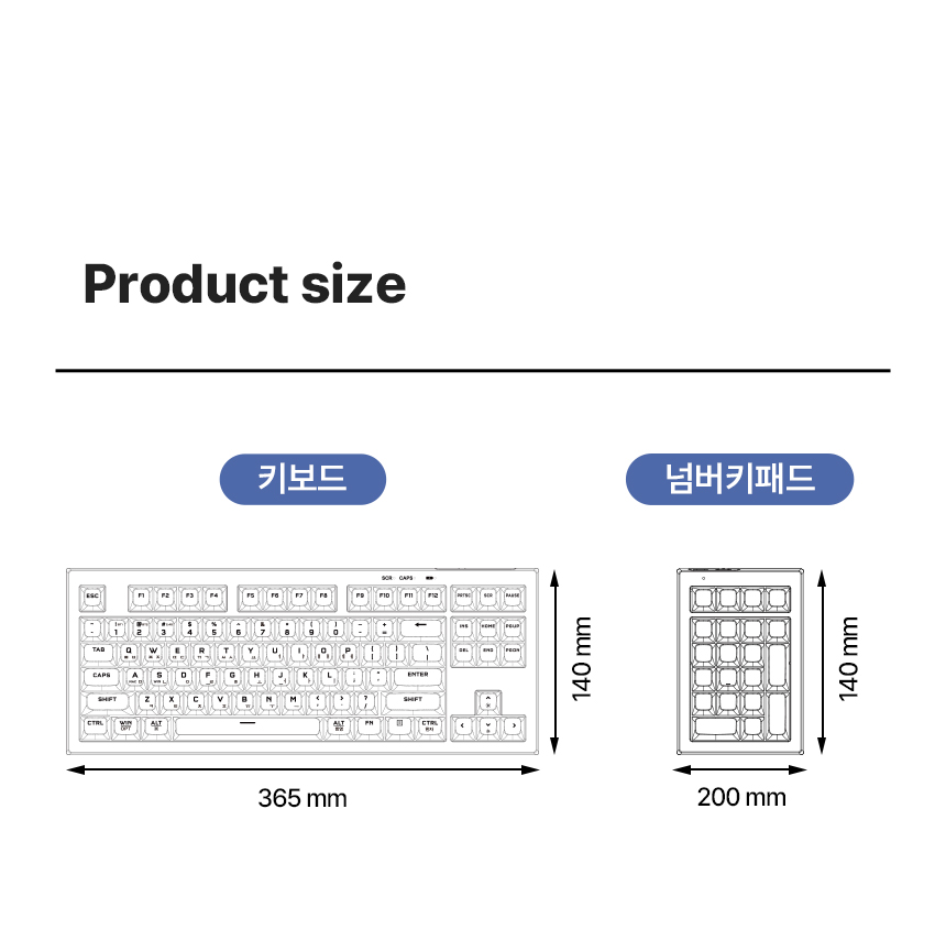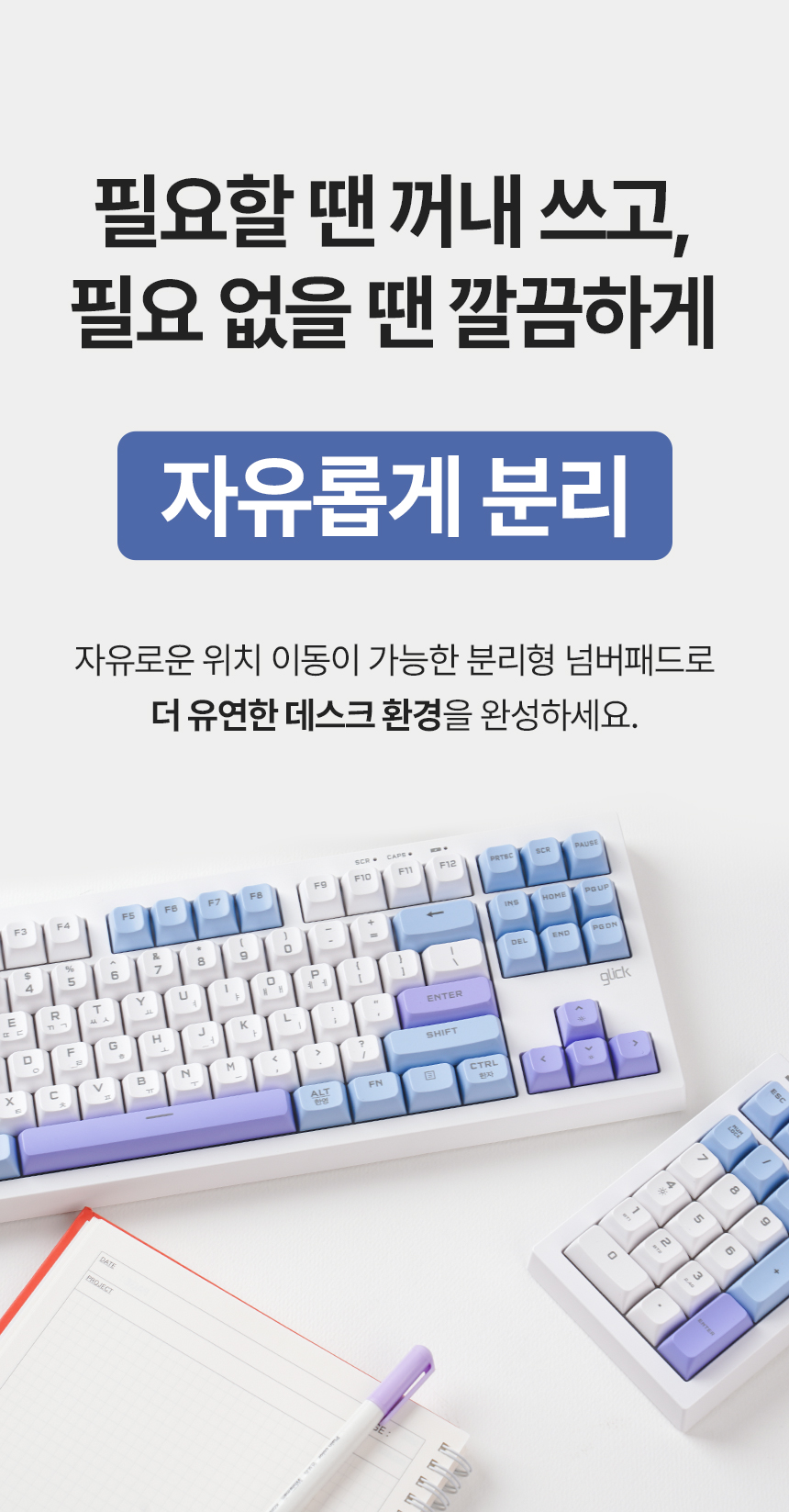 이번 와디즈에서는 87키 키보드 + 넘버키패드 세트를 기획했습니다.