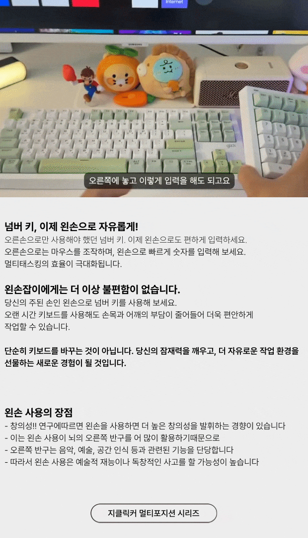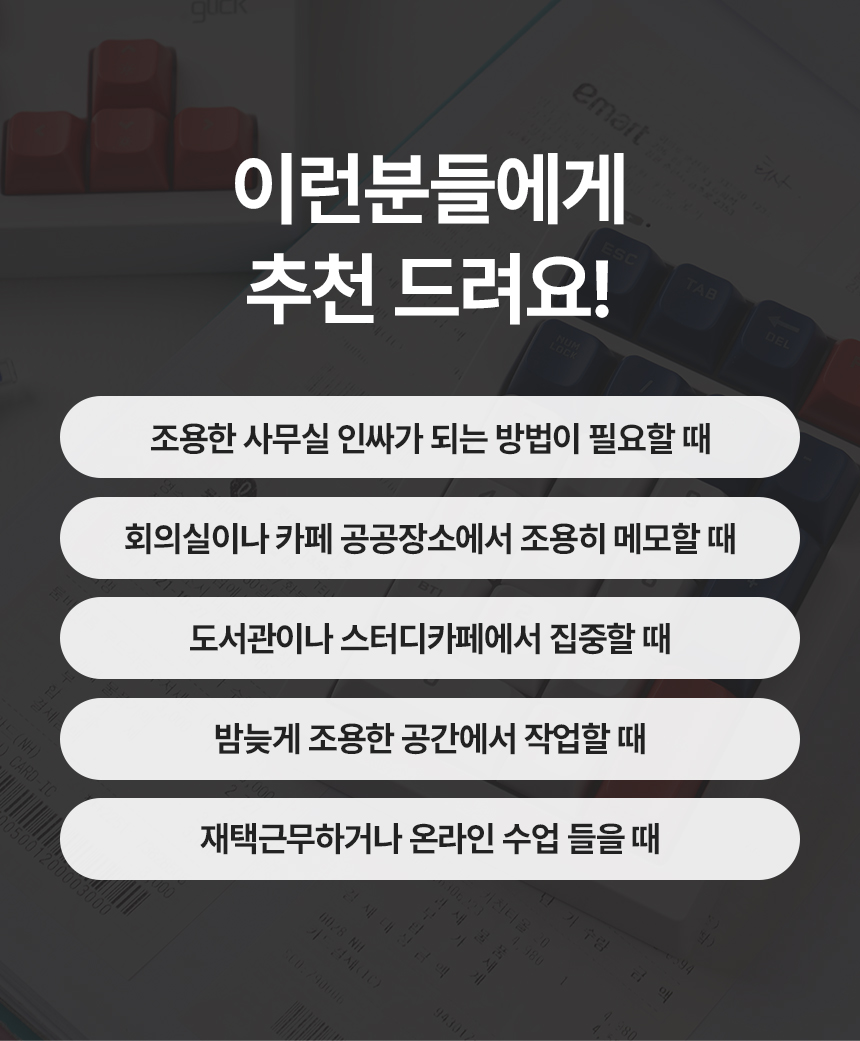 이 제품은 단순한 키보드가 아니라, 사용자의 다양한 니즈와 불편함을 해결하기 위한 고민에서 시작되었습니다.