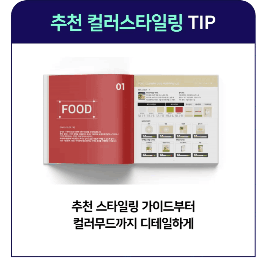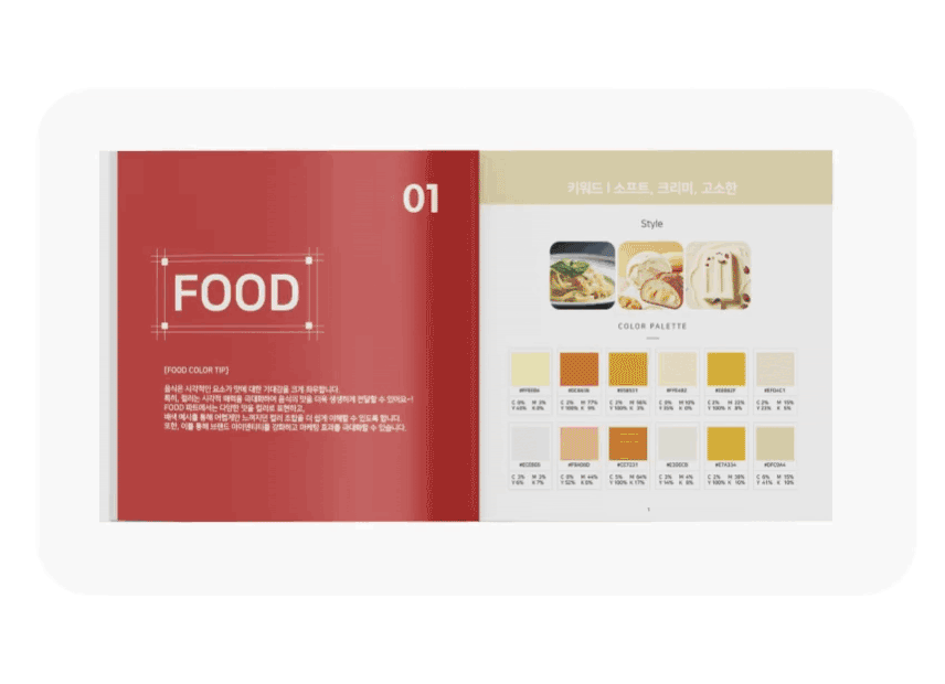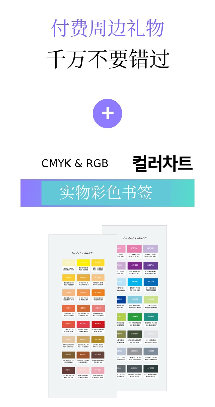 - 品牌造型书(收录不同色彩的感觉与意义及品牌成功案例)29,900韩元 赠品 : ( 色卡 书签 + 在线 样品片+ AI 聊天机器人+ 设计模板 全能型)