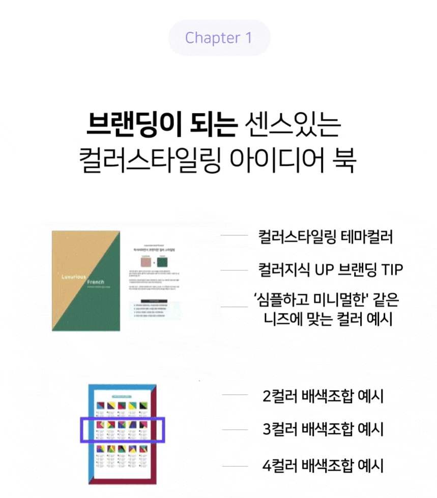 - 趋势色彩设计创意书第1册(色彩设计配色书)32,100韩元赠品: (色卡书签 + 在线样品片 + AI聊天机器人 + 设计模板一体化)