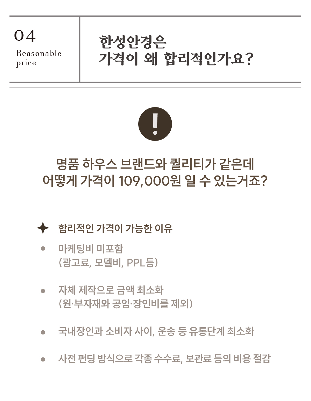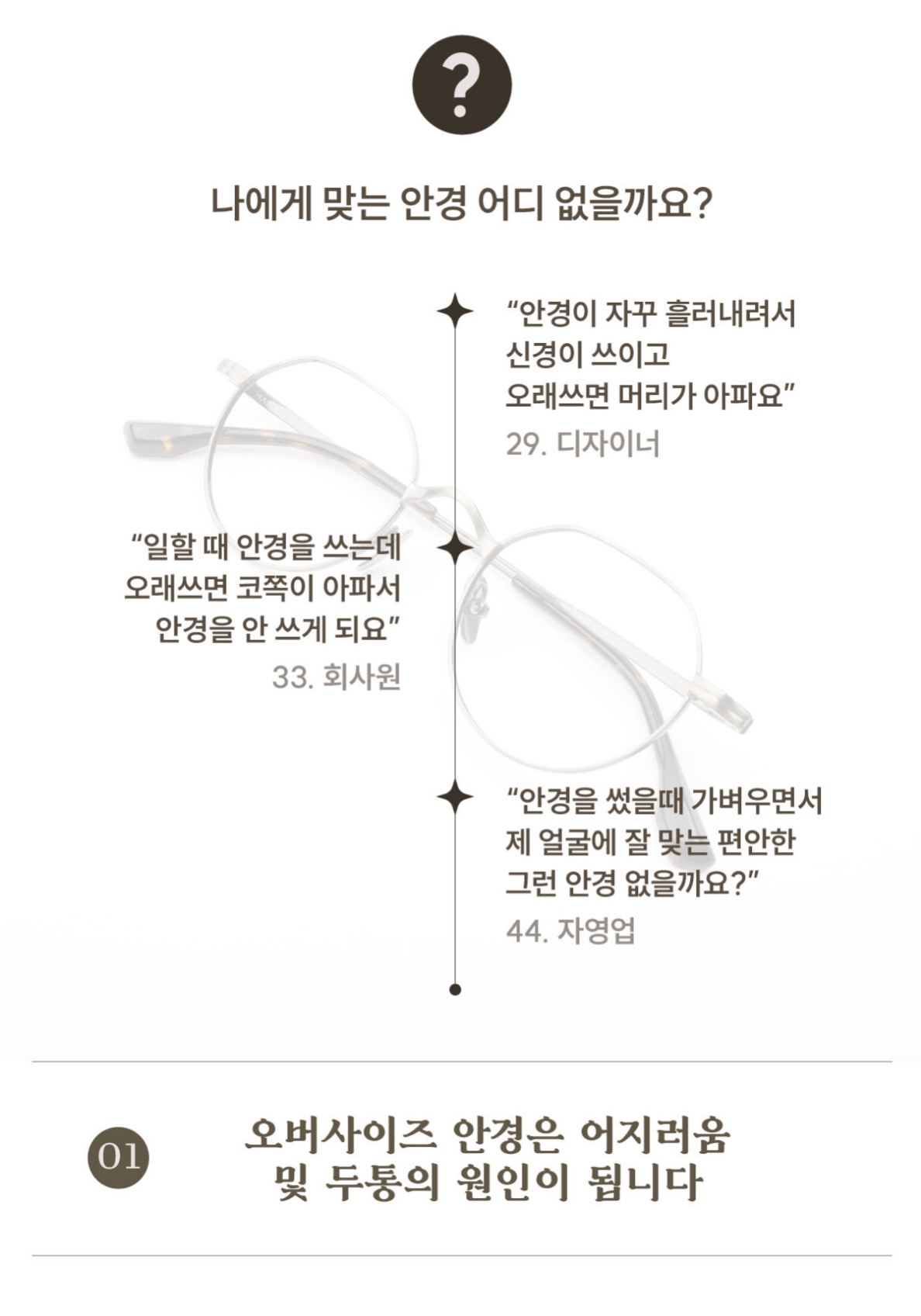 "보잘 것도 없지만, 특별하지도 않지만, 우리의 진정한 정성을 담은" 안경을 만들기 위해 노력하고 있습니다.
