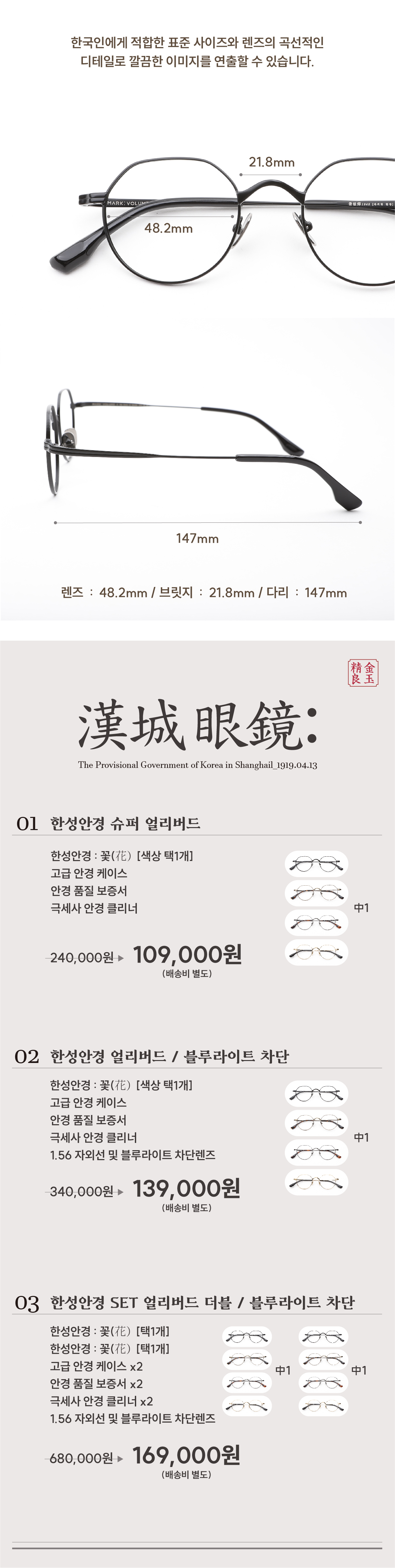 모든 안경 및 렌즈는 사우나, 차 안 등 뜨거운 곳에서 보관하지 마세요! 렌즈의 코팅이 터지거나 테가 틀어질 수 있습니다. 이 경우 메이커에서는 책임질 수 없으니 되도록 서늘한곳에 보관해주세요.