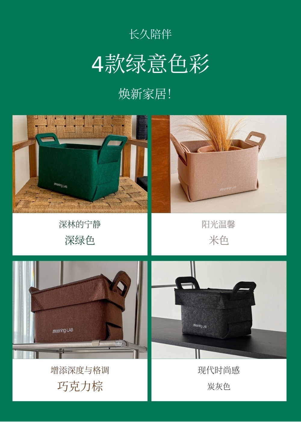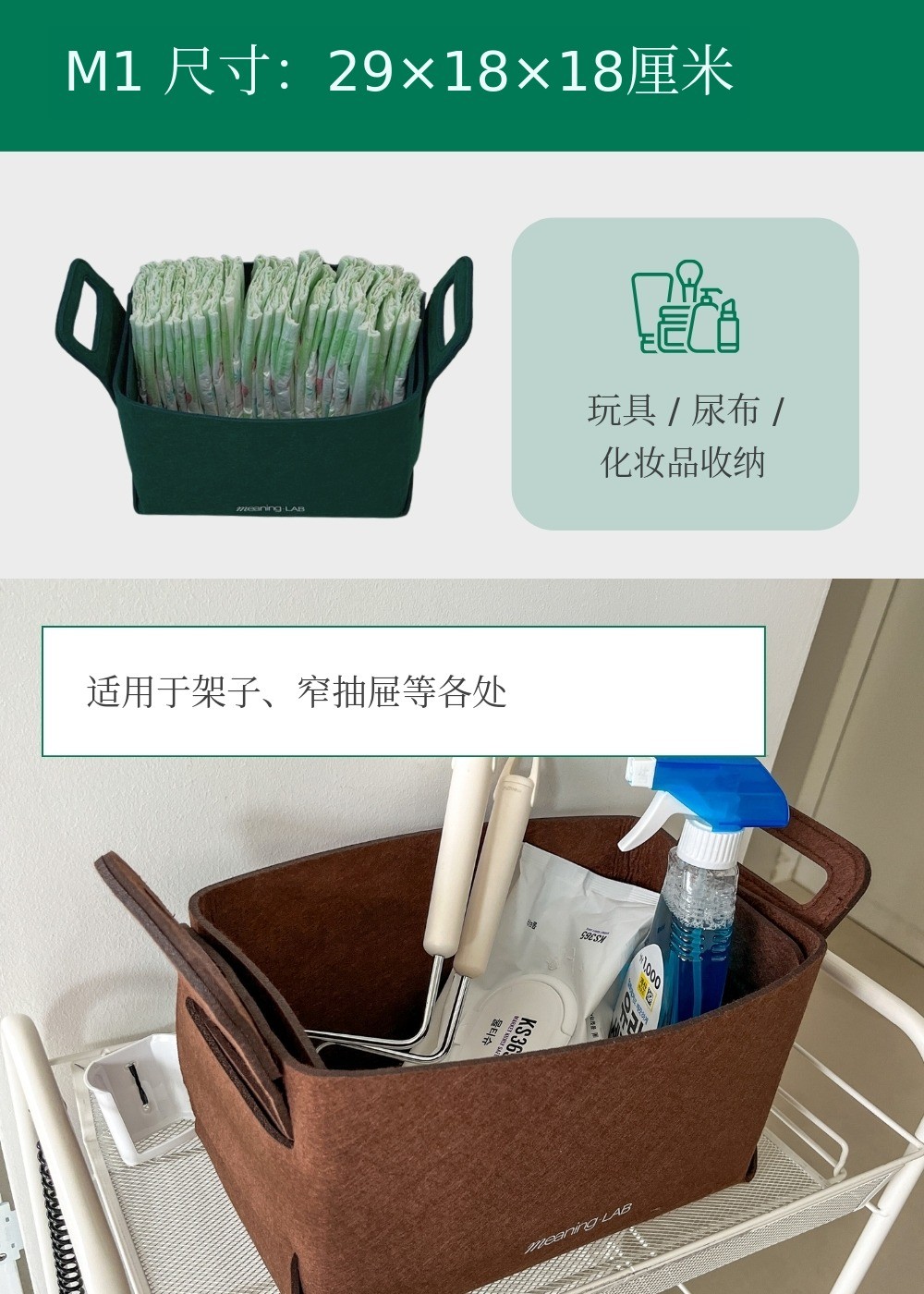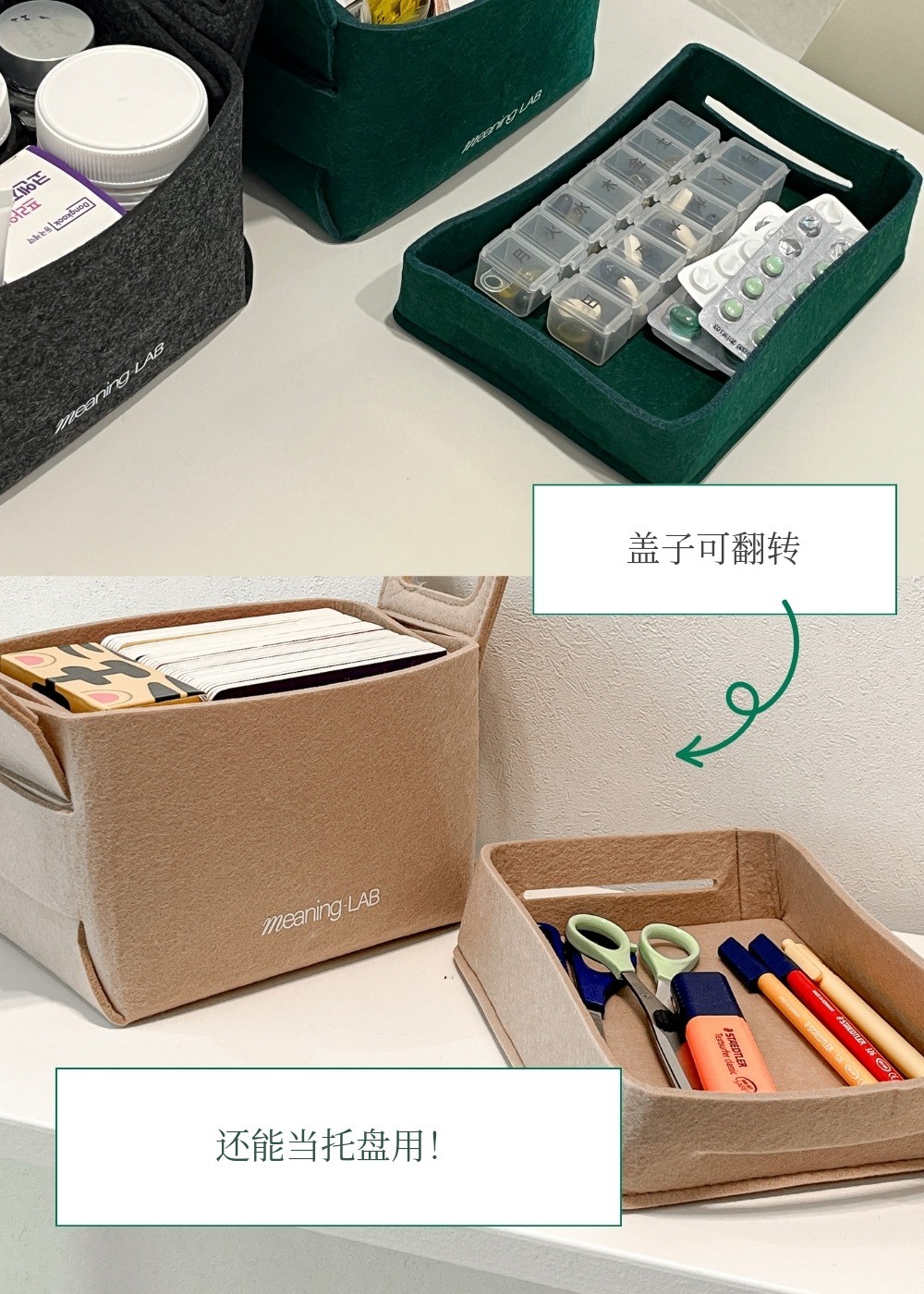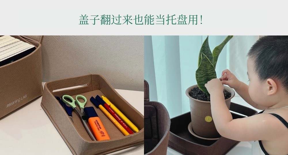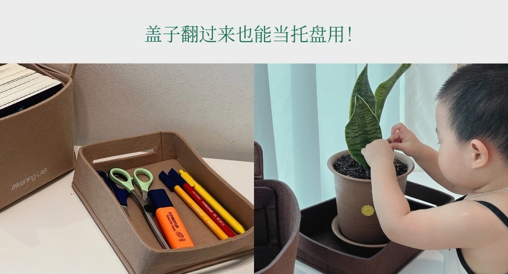 MeaningLab绿色毛毡2合1收纳箱