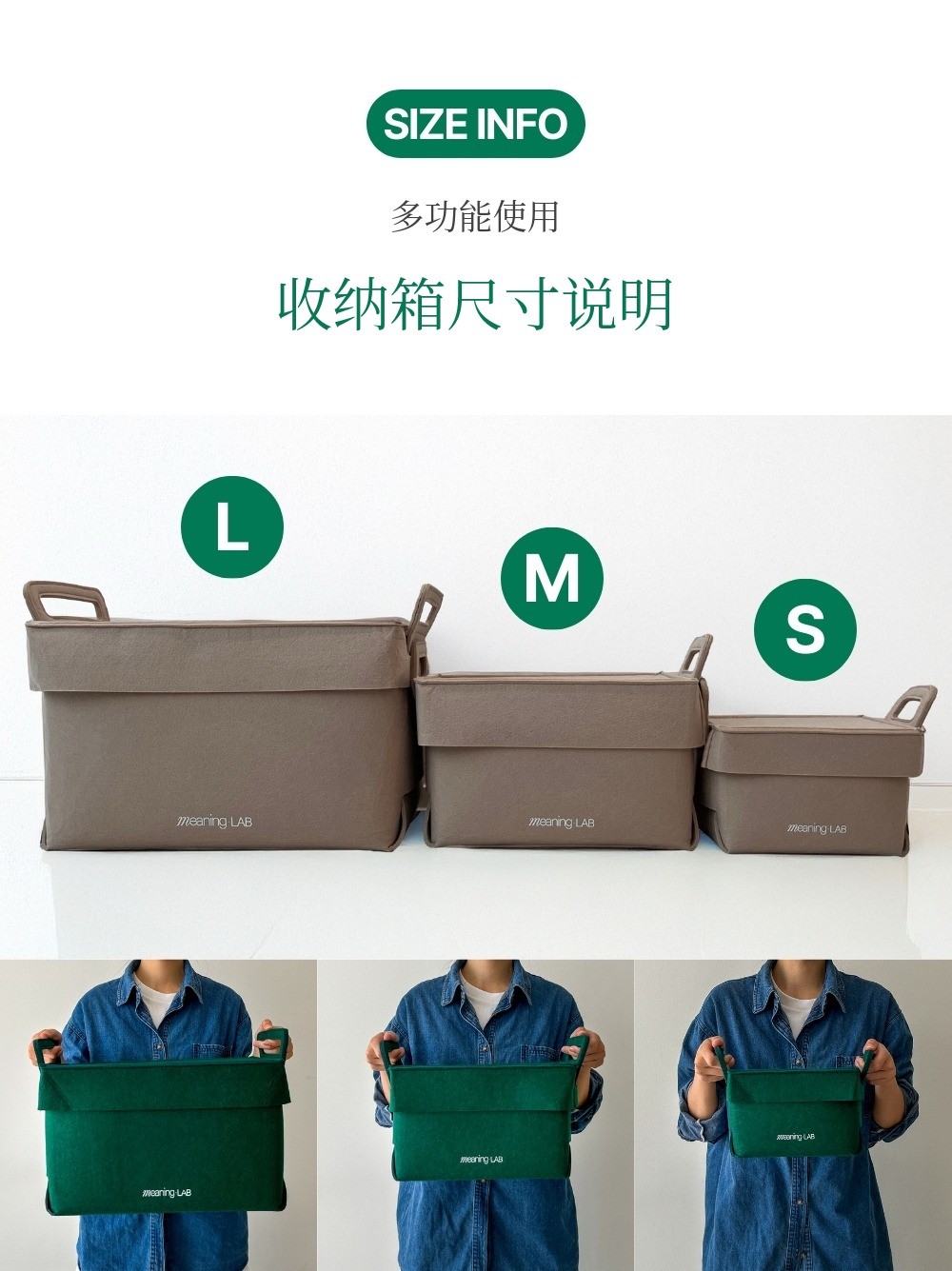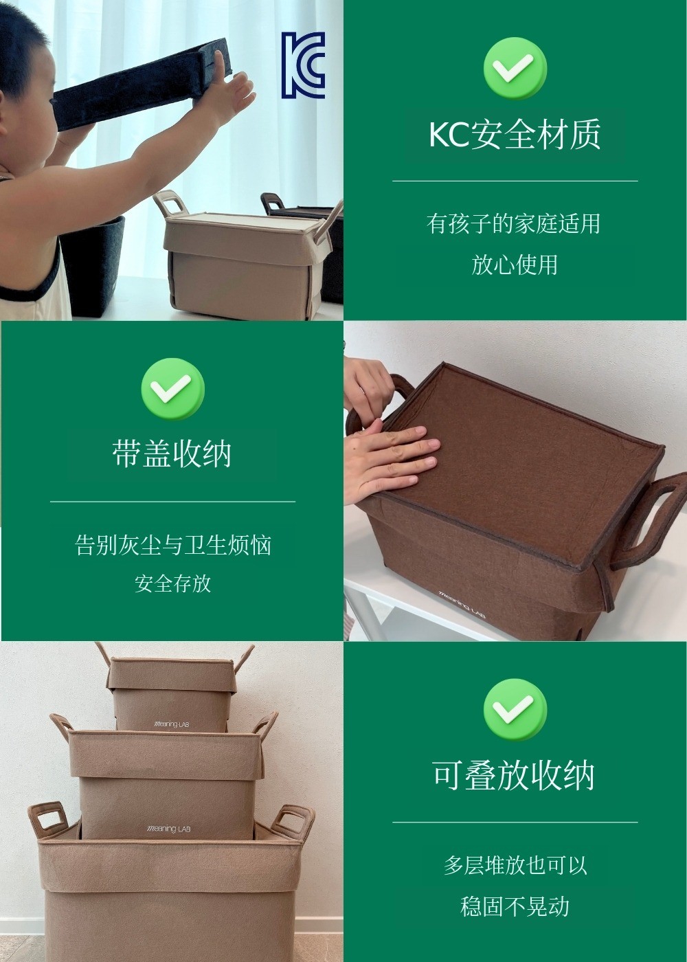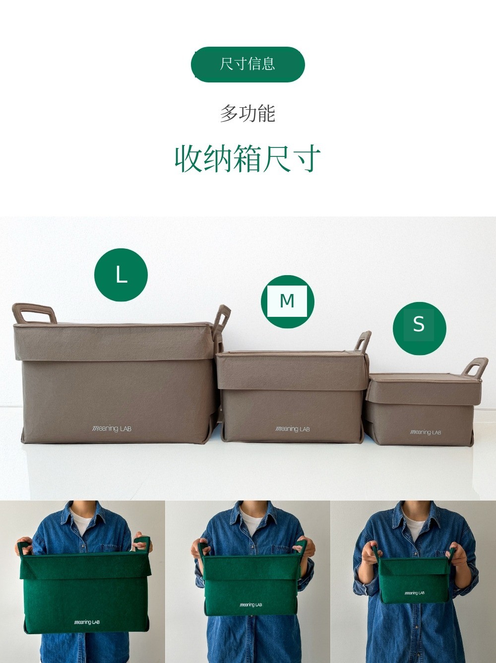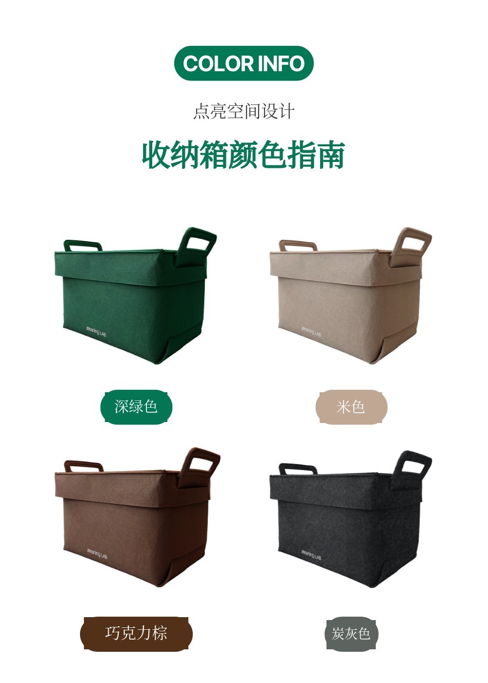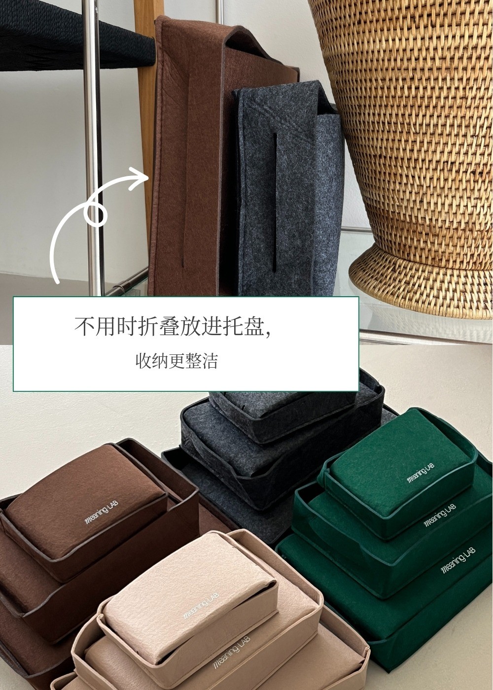 MeaningLab绿色毛毡2合1收纳箱