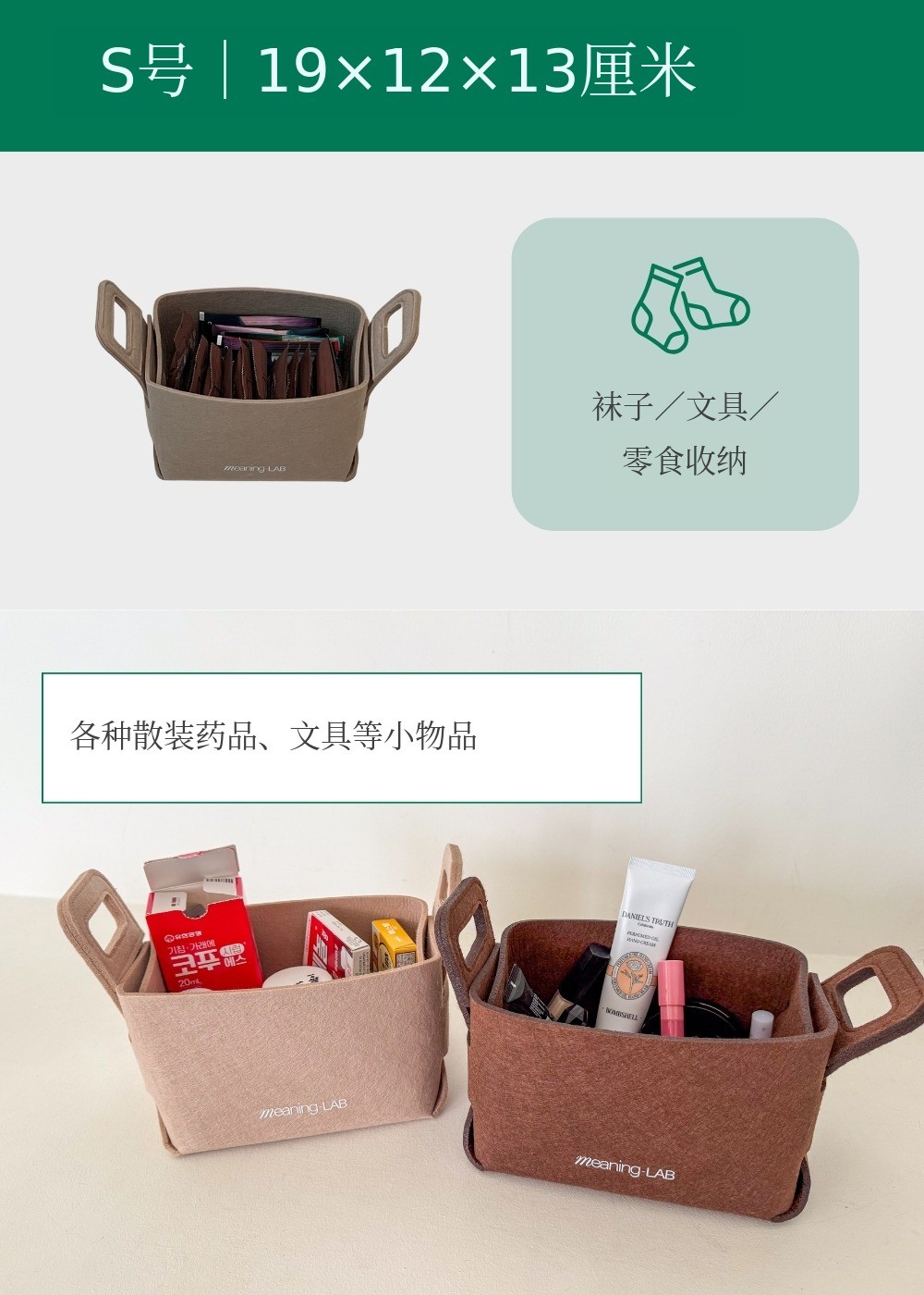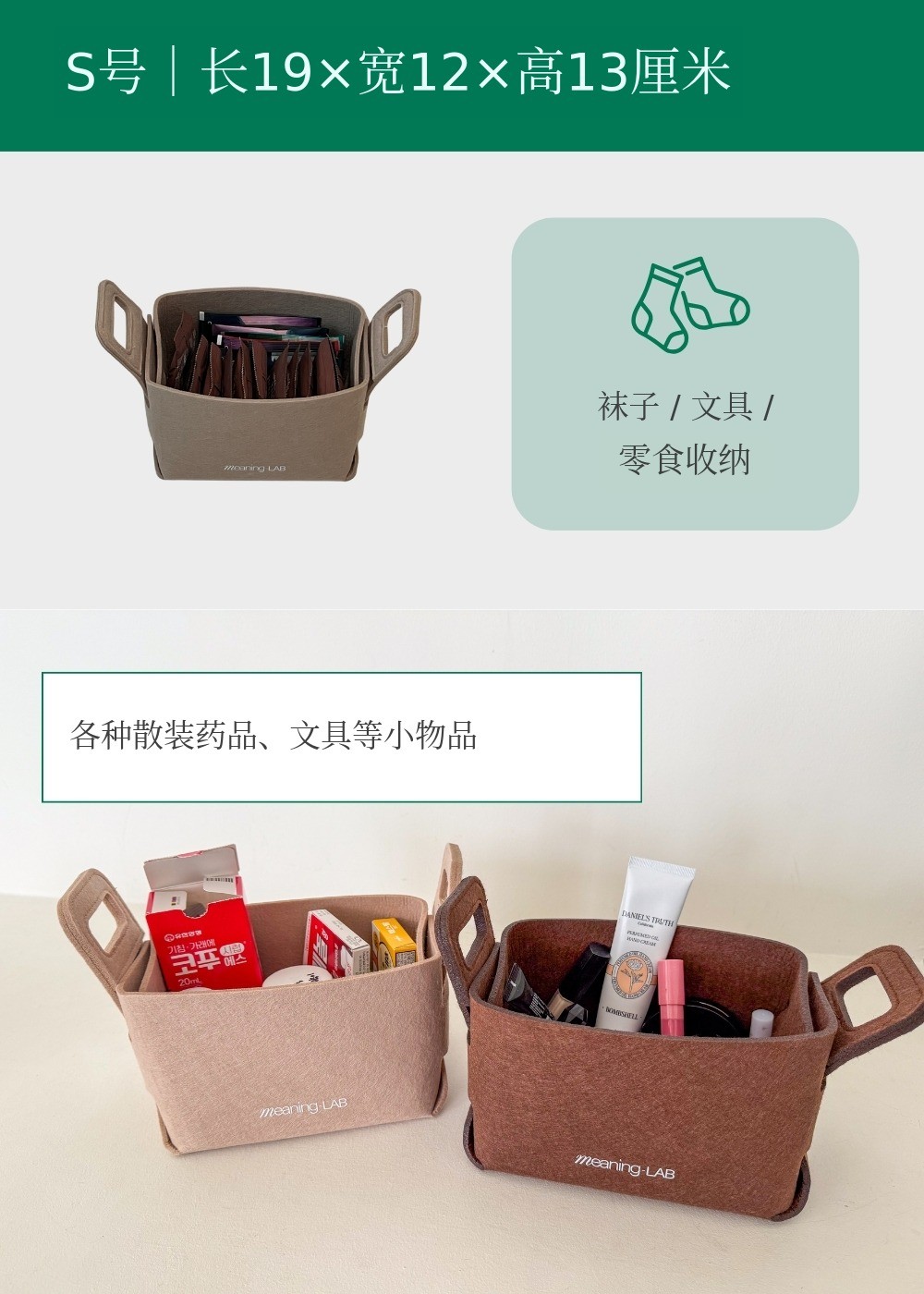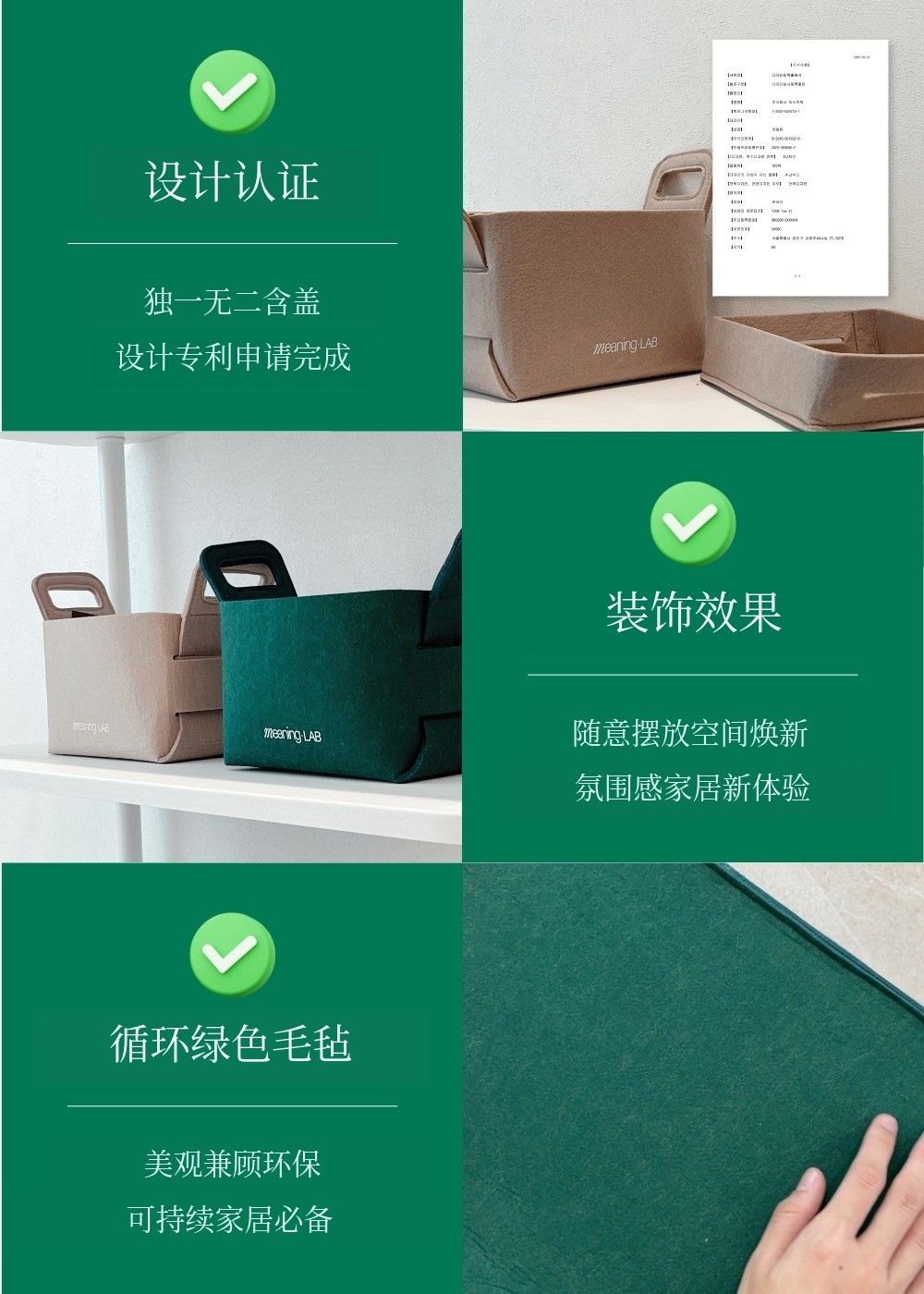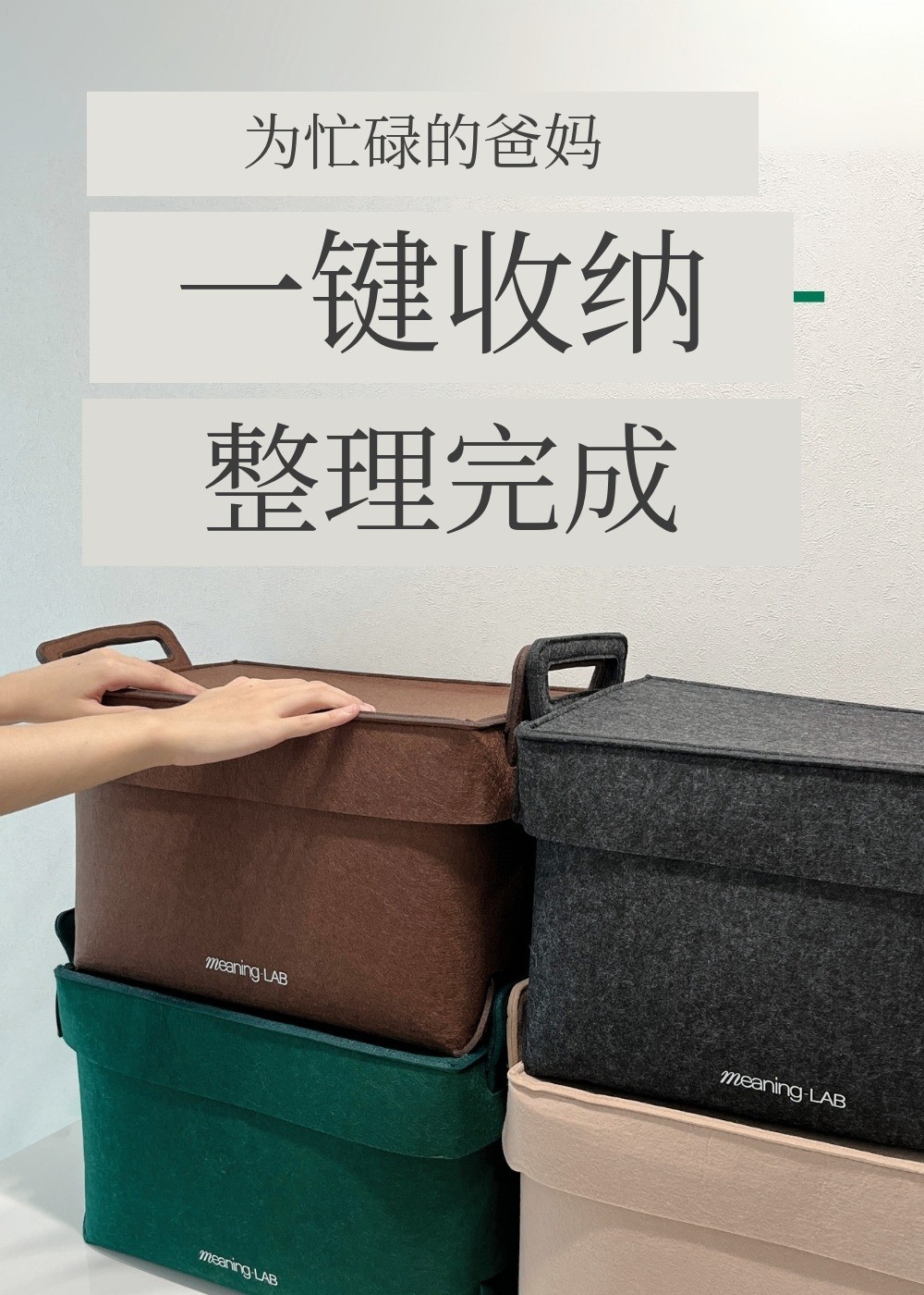 MeaningLab绿色毛毡2合1收纳箱
