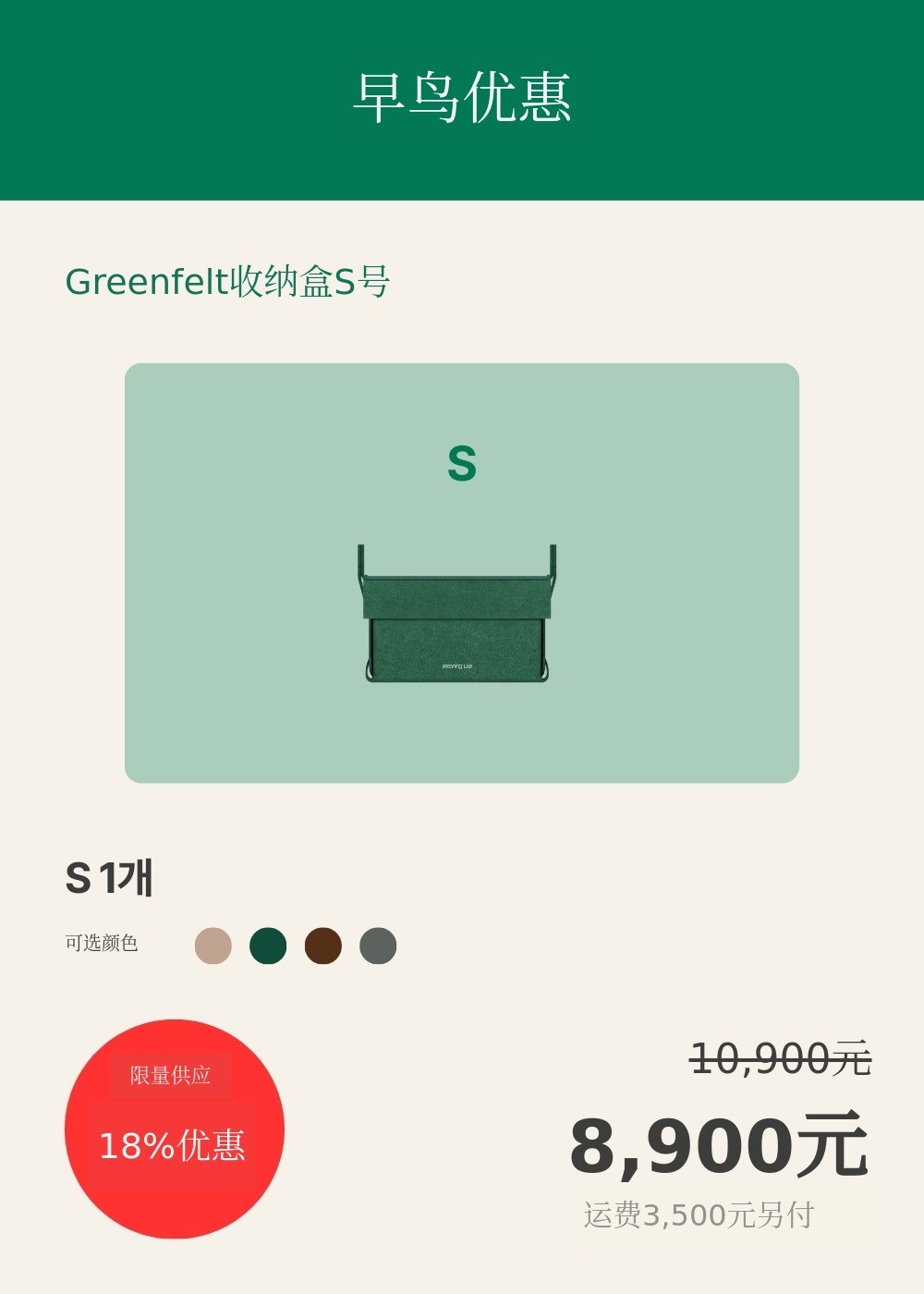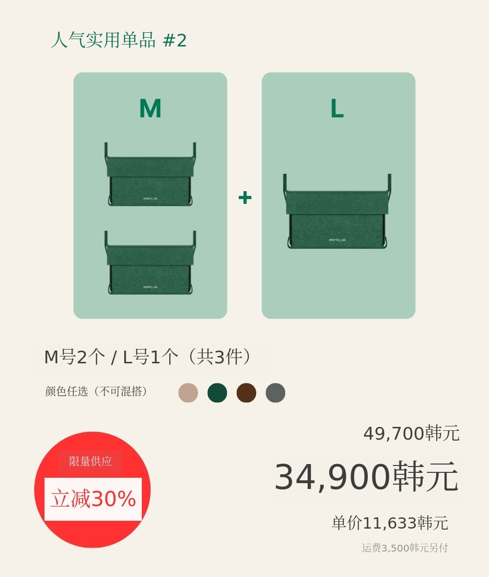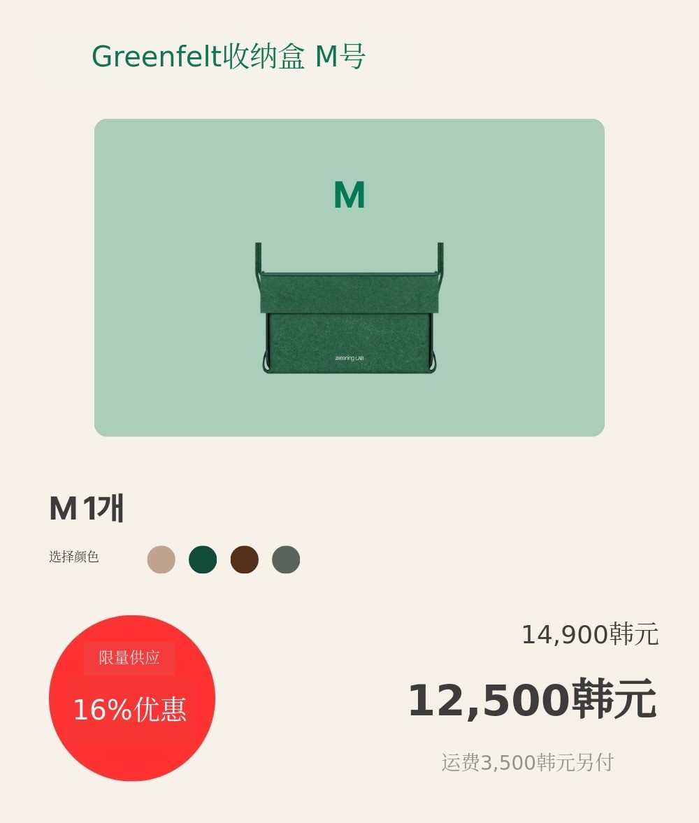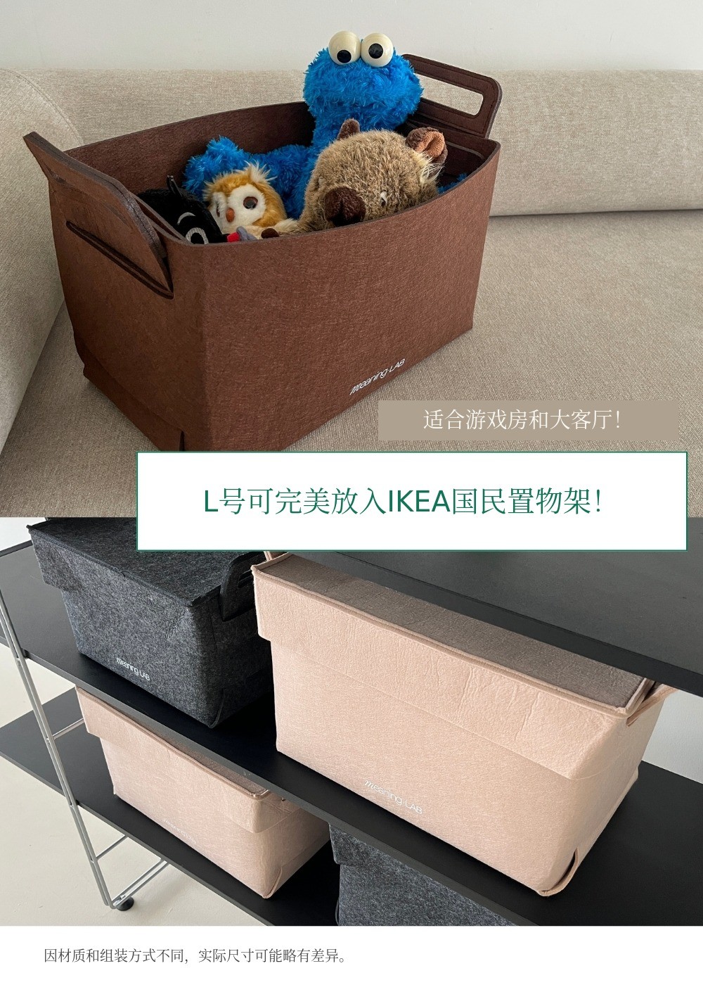 MeaningLab绿色毛毡2合1收纳箱