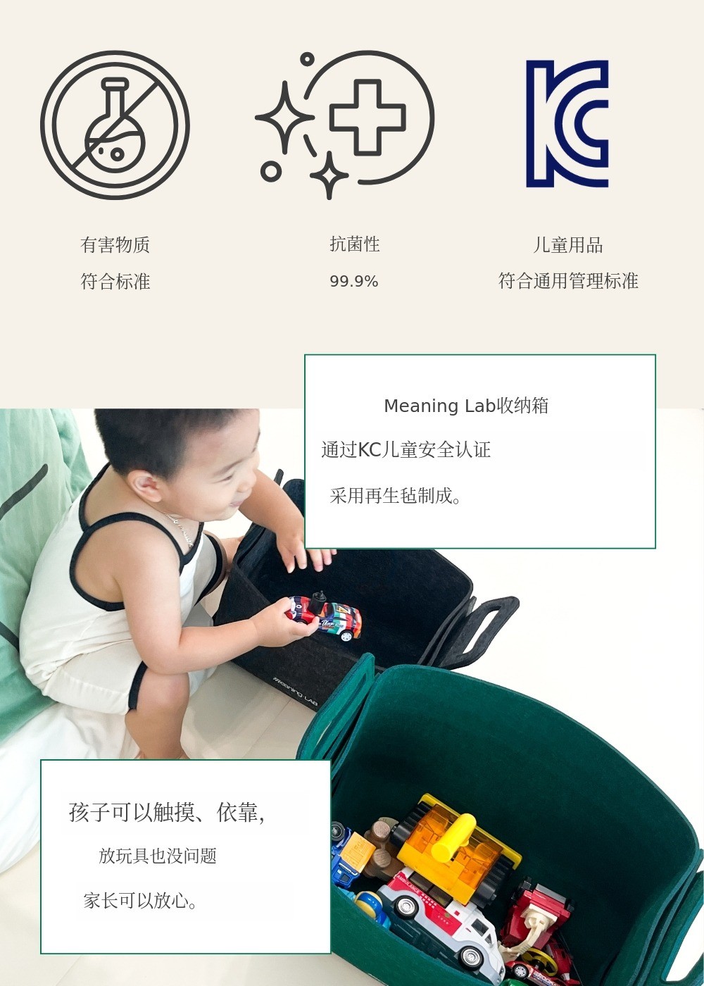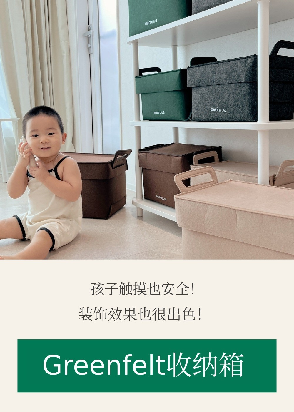 为了让我们宝宝身边的许多物品安全又快速地整理 为了让您能够使用,我们从材料到产品,经过一年的策划、设计和制作,打造了这款特别的收纳箱。