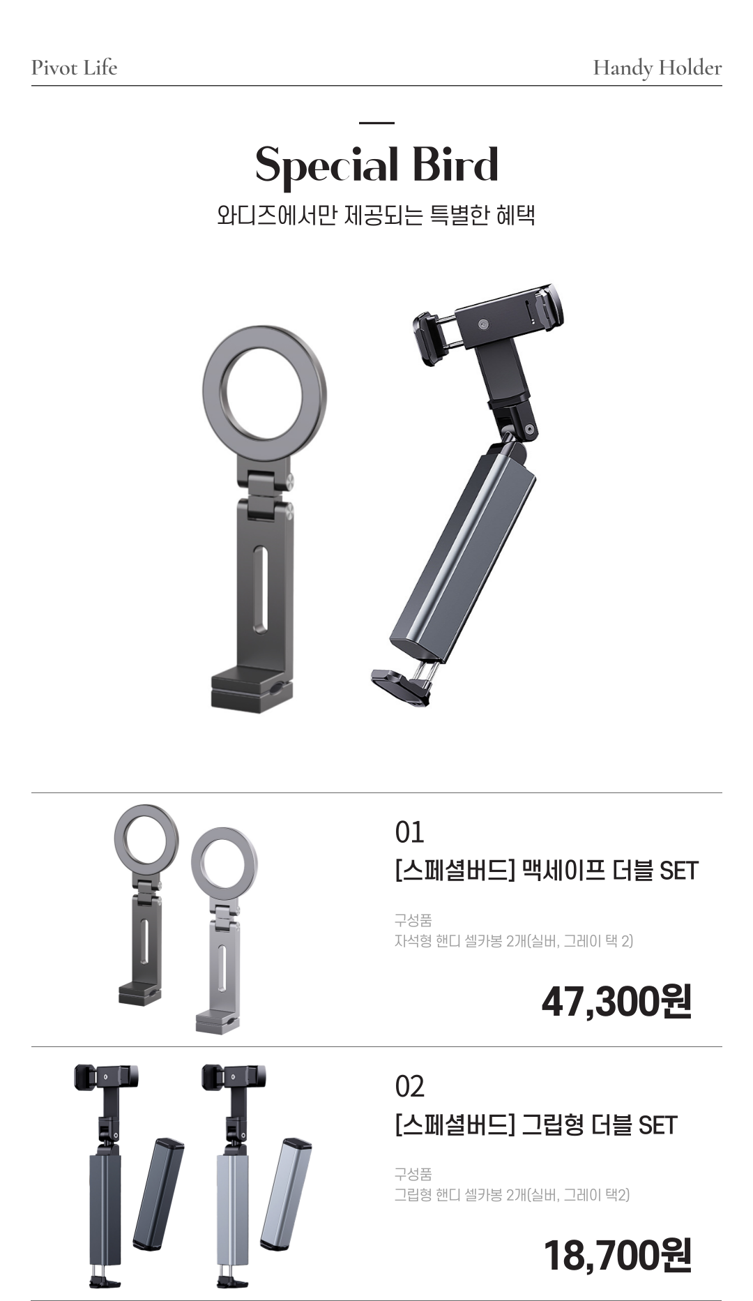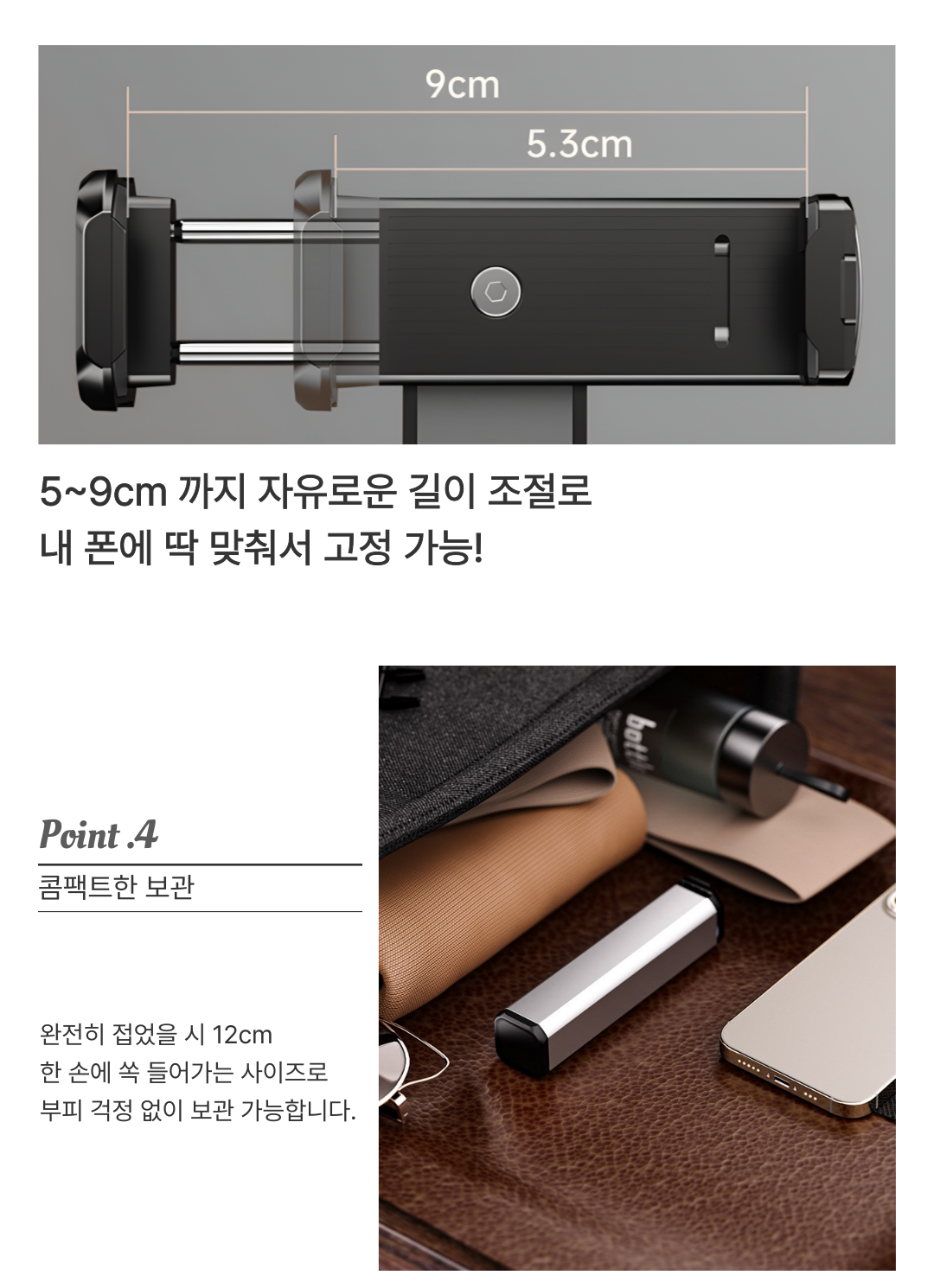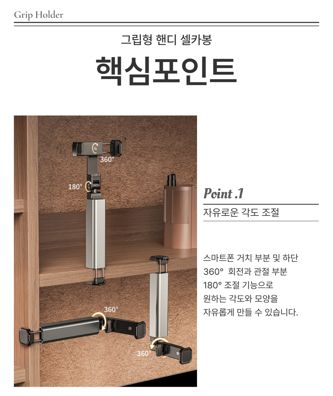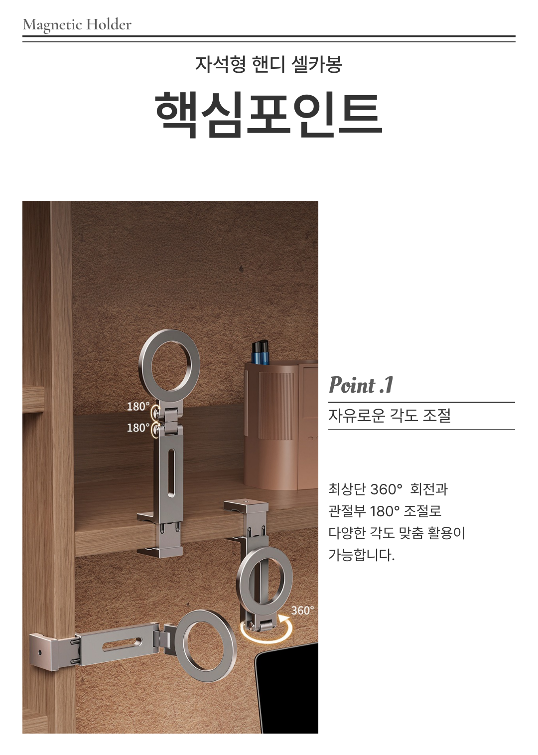 1. 📱 便携自拍杆 - 一手掌握,迷你设计,360°旋转 2. 🔄 自由角度调节 - 360度旋转与180度关节灵活调节 3. 🎁 独家众筹优惠 - 磁吸型与握持型双套装优惠提供