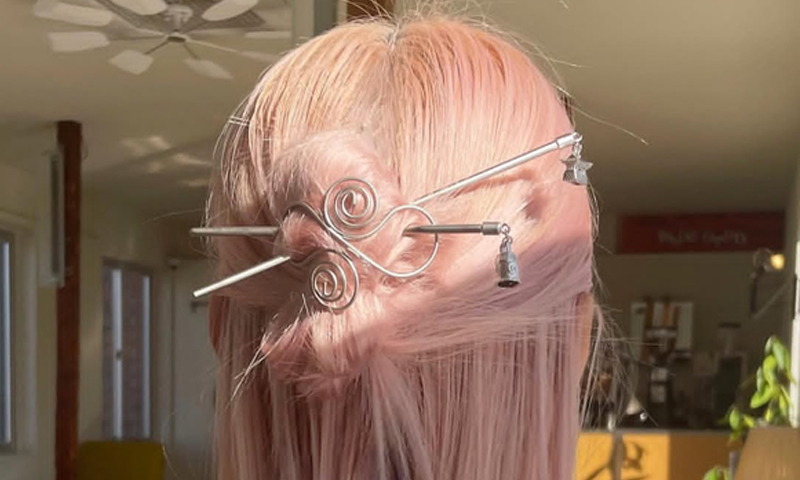 可作为发簪装饰像发夹一样佩戴,也可以仅用一根长发簪盘发。