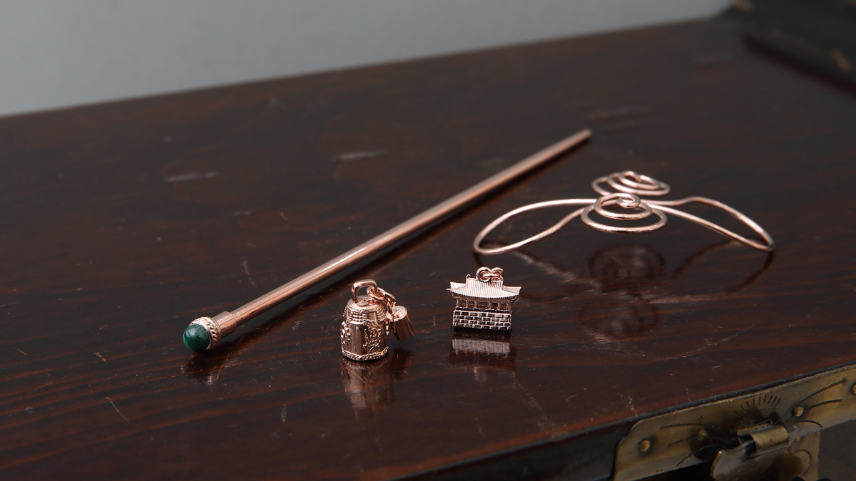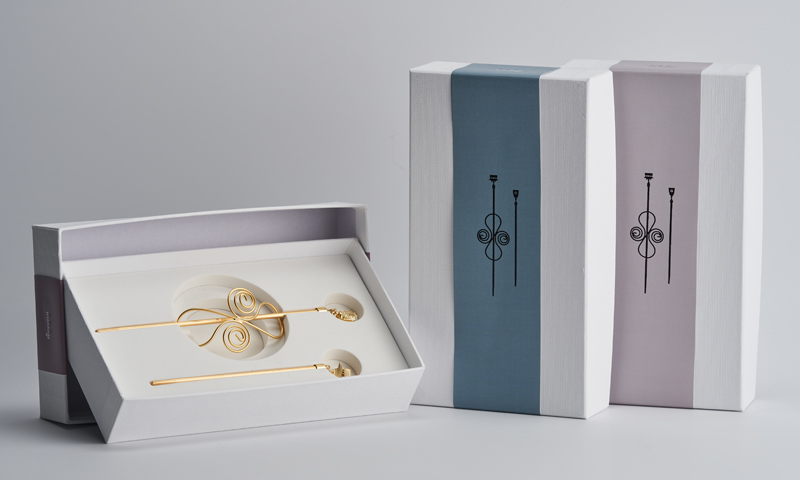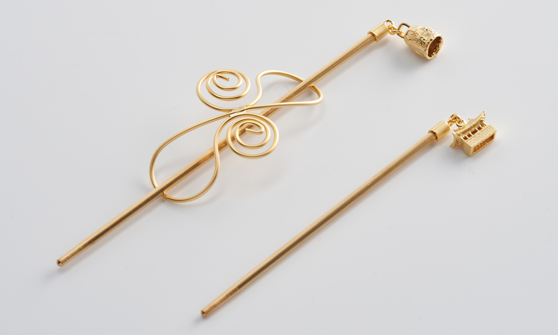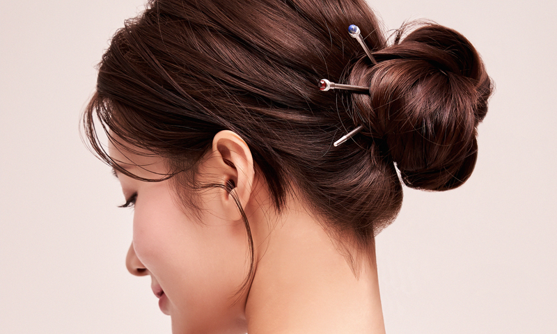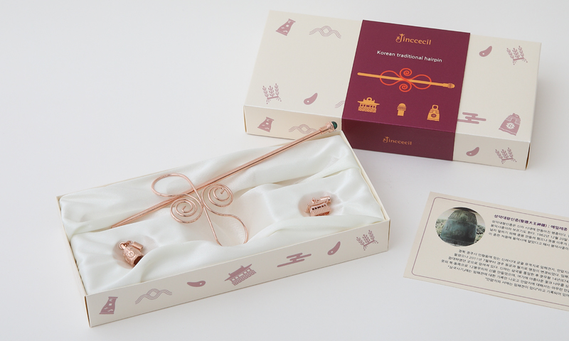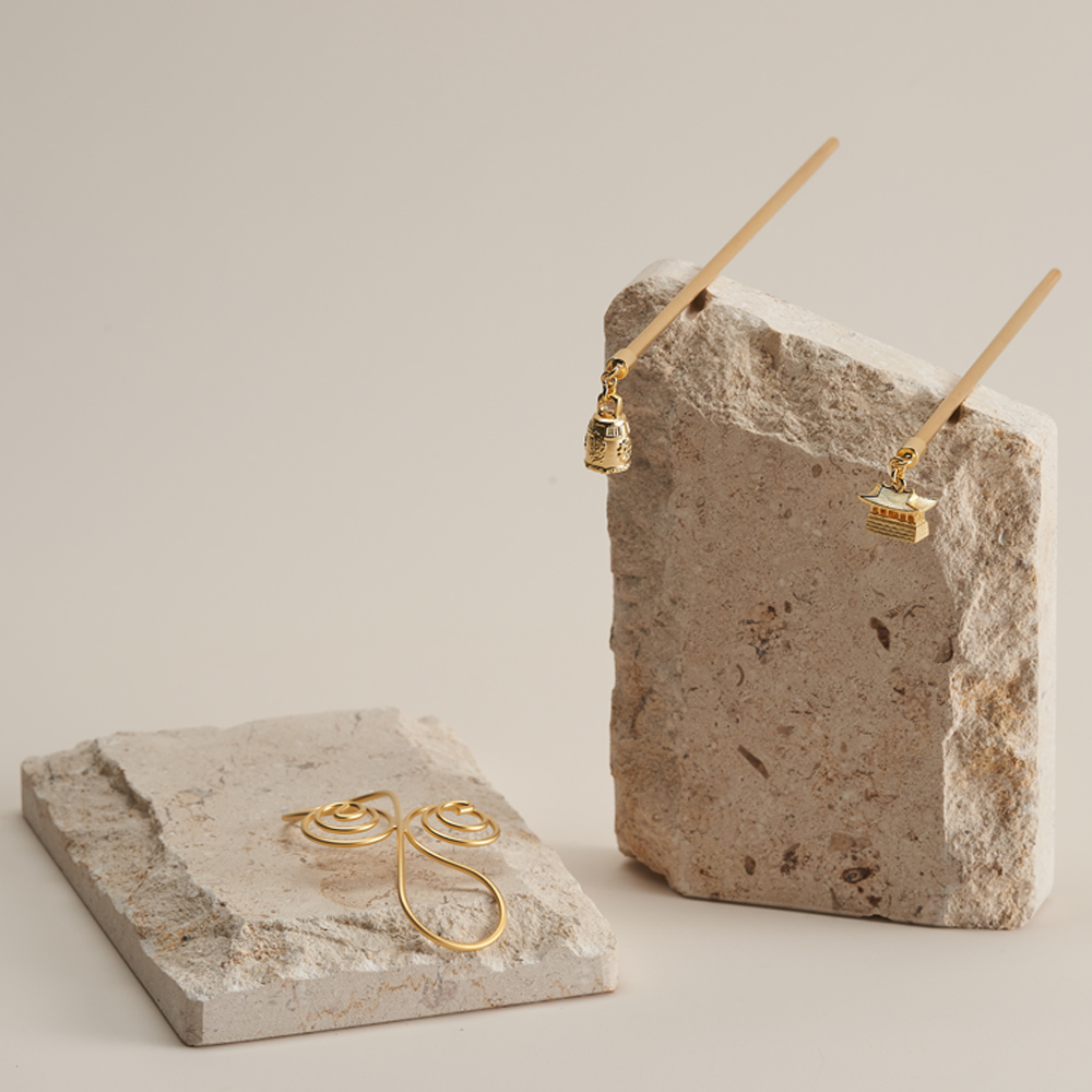 以‘圣德大王神钟’和‘东宫’为灵感的发簪吊坠,不仅仅是只能搭配韩服的发簪,而是任何人都可以与各种服饰搭配的发饰概念,根据T.P.O可分离、可更换吊坠的发簪由此诞生。