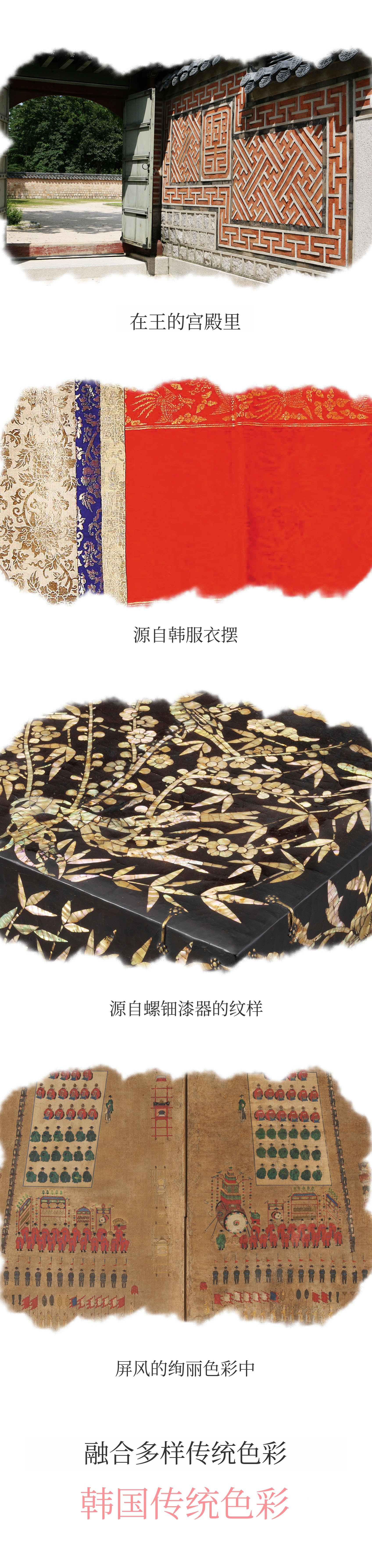 红蓝色、石间朱色、天青色、松花色、雪白色、淡朱色 等多种韩国璀璨的传统色彩汇集于一本!