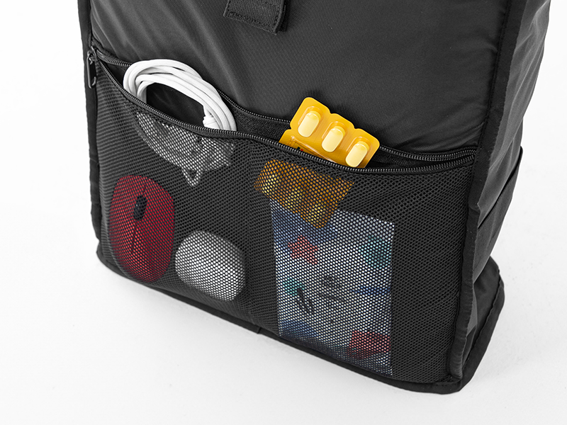 자잘한 물건들을 수납할 수 있는 커다란 지퍼 매쉬 포켓이 있습니다.