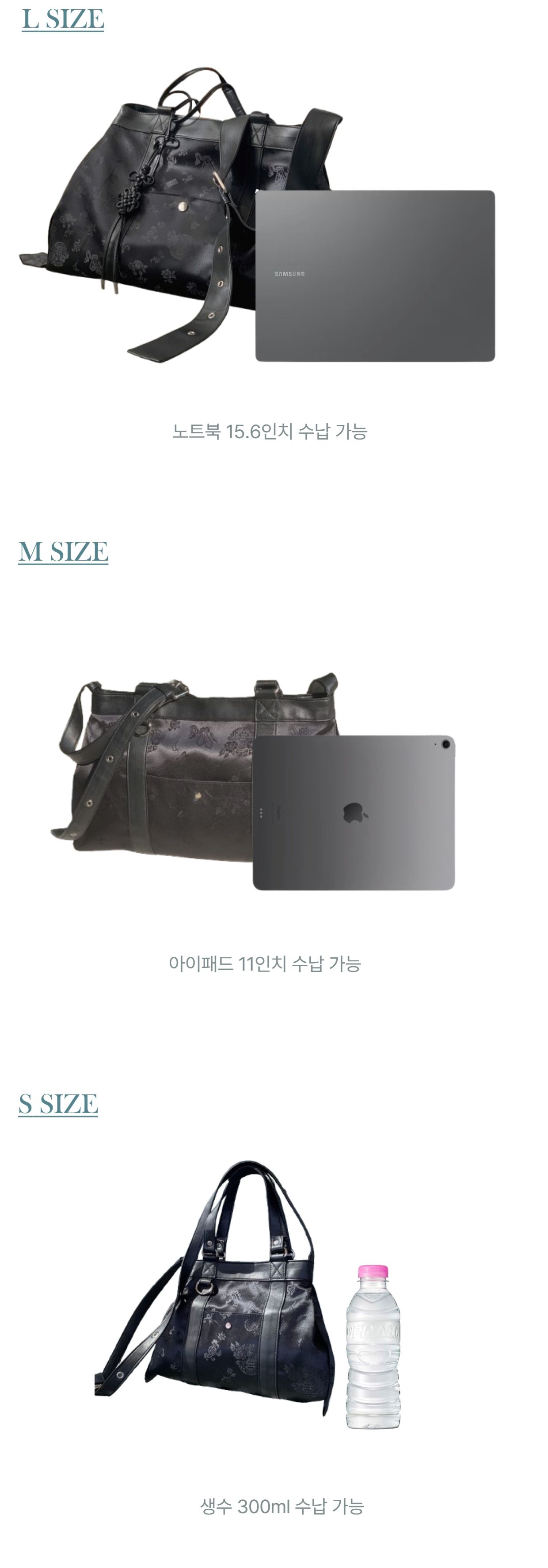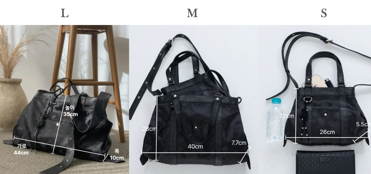 핸들은 한 줄로 안정감 있게, 포켓은 자석 여밈으로 더욱 편리하게, 키링 고리는 더 튼튼하게. 그리고 많은 분들이 요청하신 작은 사이즈(S·M)도 새롭게 출시했습니다.