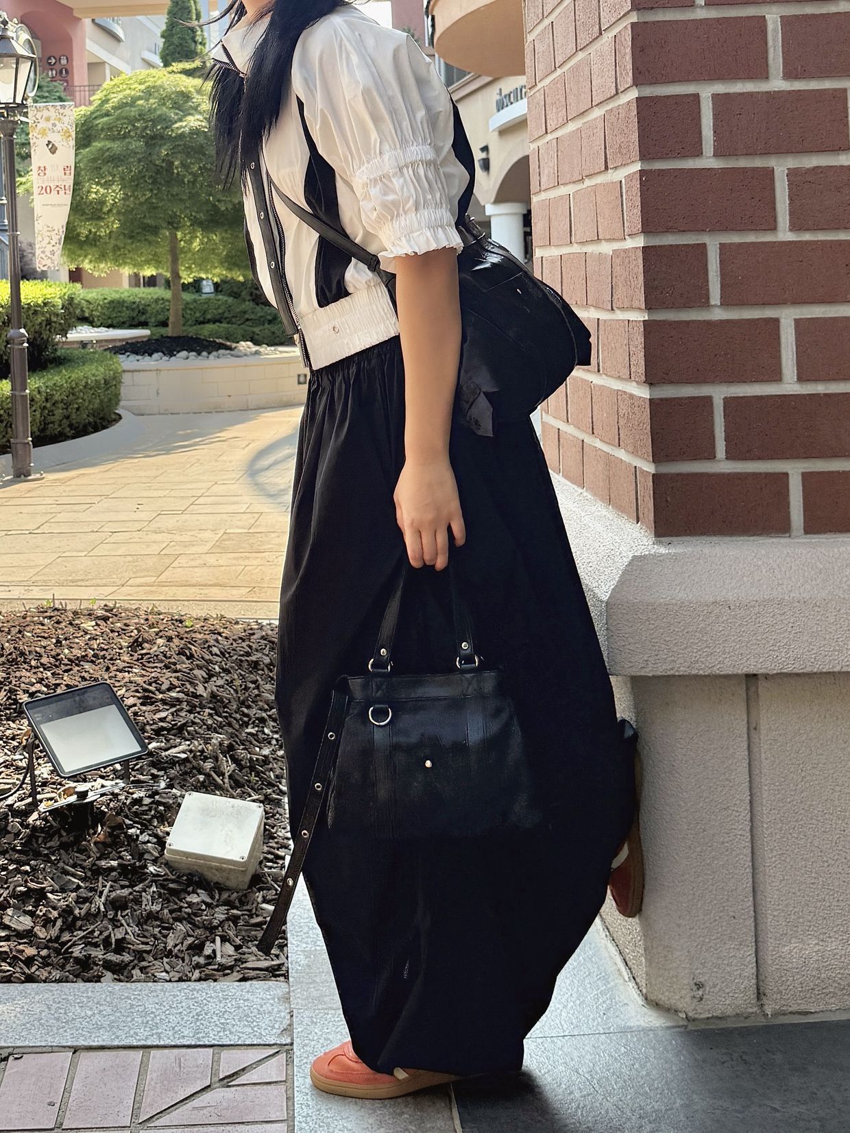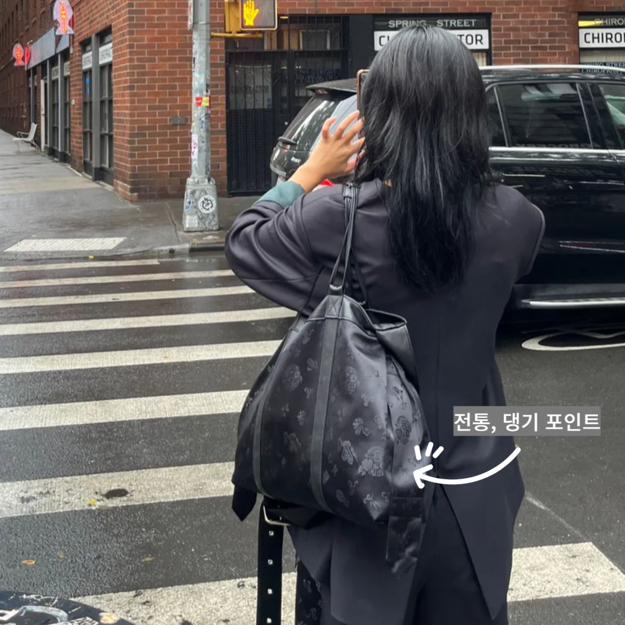 가방 하나로 딱 코디를 완성해주는 느낌이이에요.