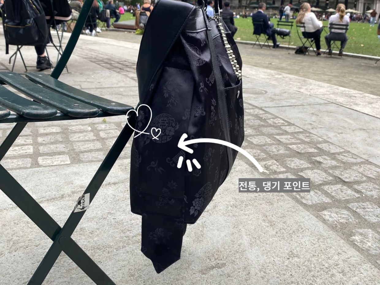 이 댕기가 가방에 달리면서 단순한 액세서리가 아닌, 전통의 가치를 느낄 수 있는 디테일로 완성되었습니다.