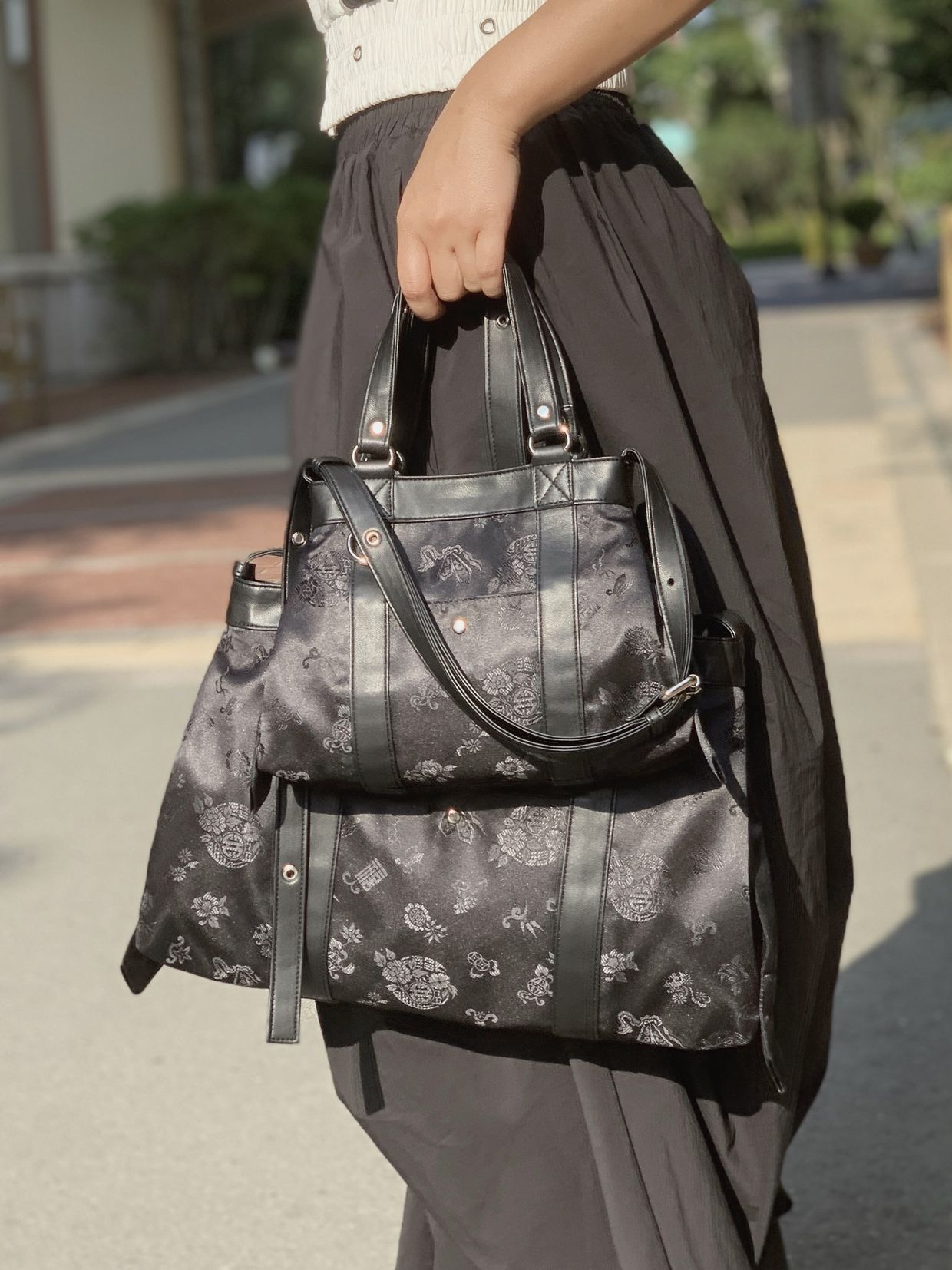 이 가방을 만들게 된 이유는 한국 전통의 아름다움을 현대적으로 재해석해 더 많은 사람들이 일상 속에서 자연스럽게 접할 수 있기를 바랐기 때문이에요. 전통은 그저 옛날 것, 어렵고 무겁다는 이미지에서 벗어나, 트렌디하고 세련된 감각으로 풀어낼 수 있다는 걸 보여주고 싶었어요!
