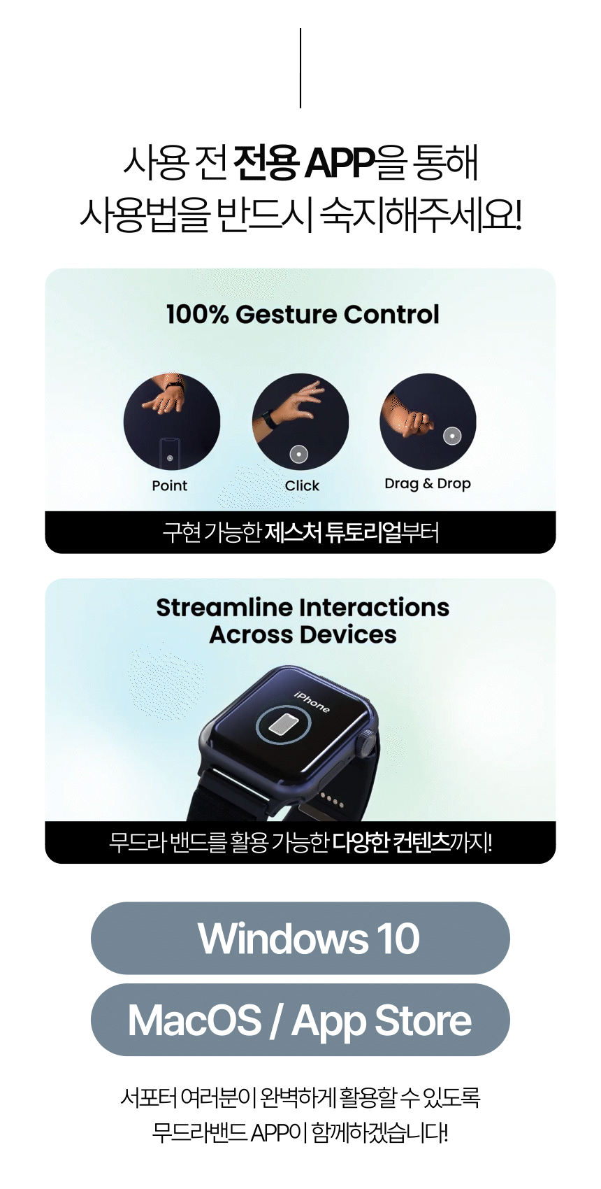 무드라밴드를 비롯한 각종 스마트 기기를 포함, 여러가지 테크가전 제품을 서포터 여러분에게 선보이고 서포터 여러분의 삶의 질을 개선하는데 도움이 되기 위해 노력하고 있습니다.