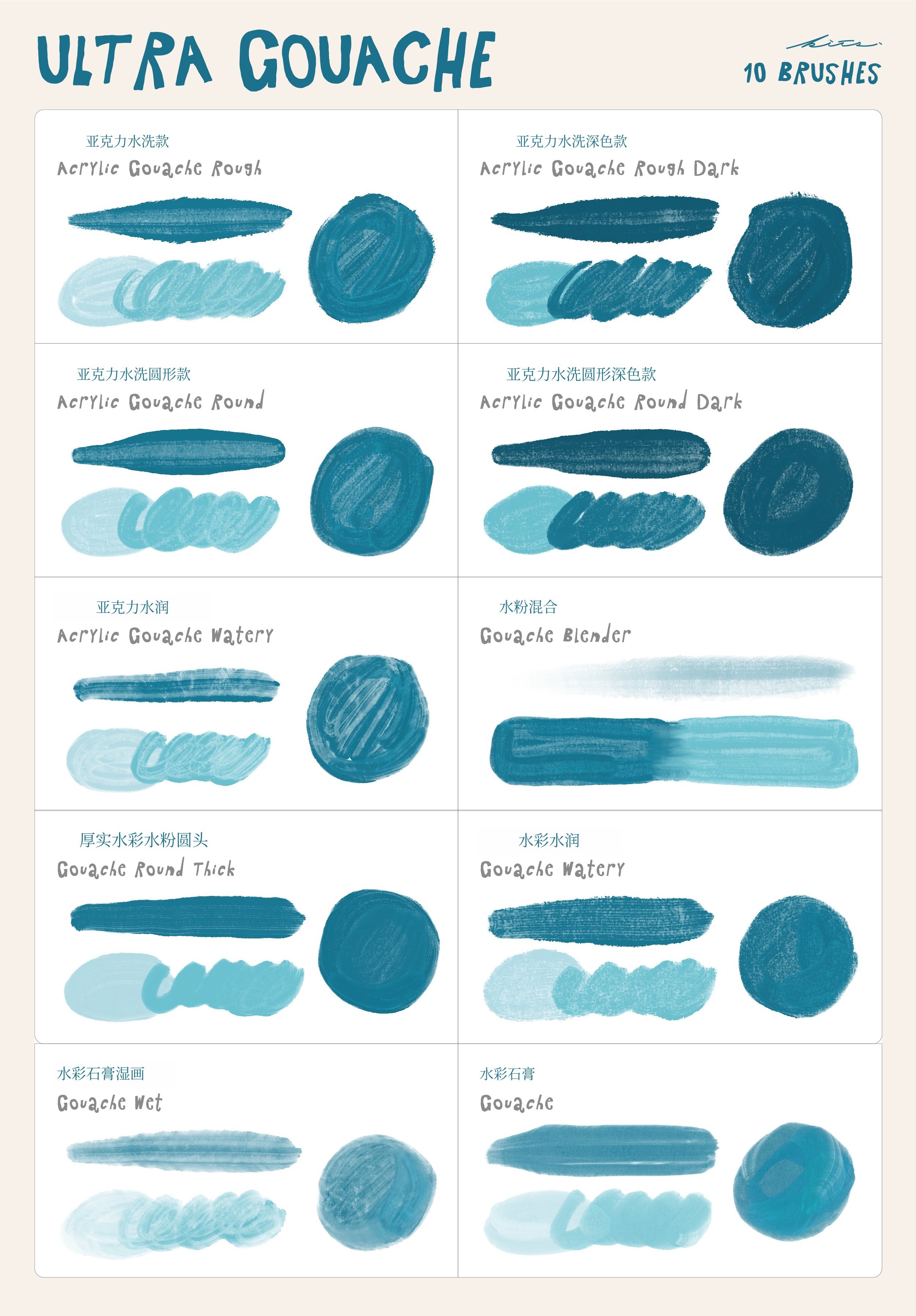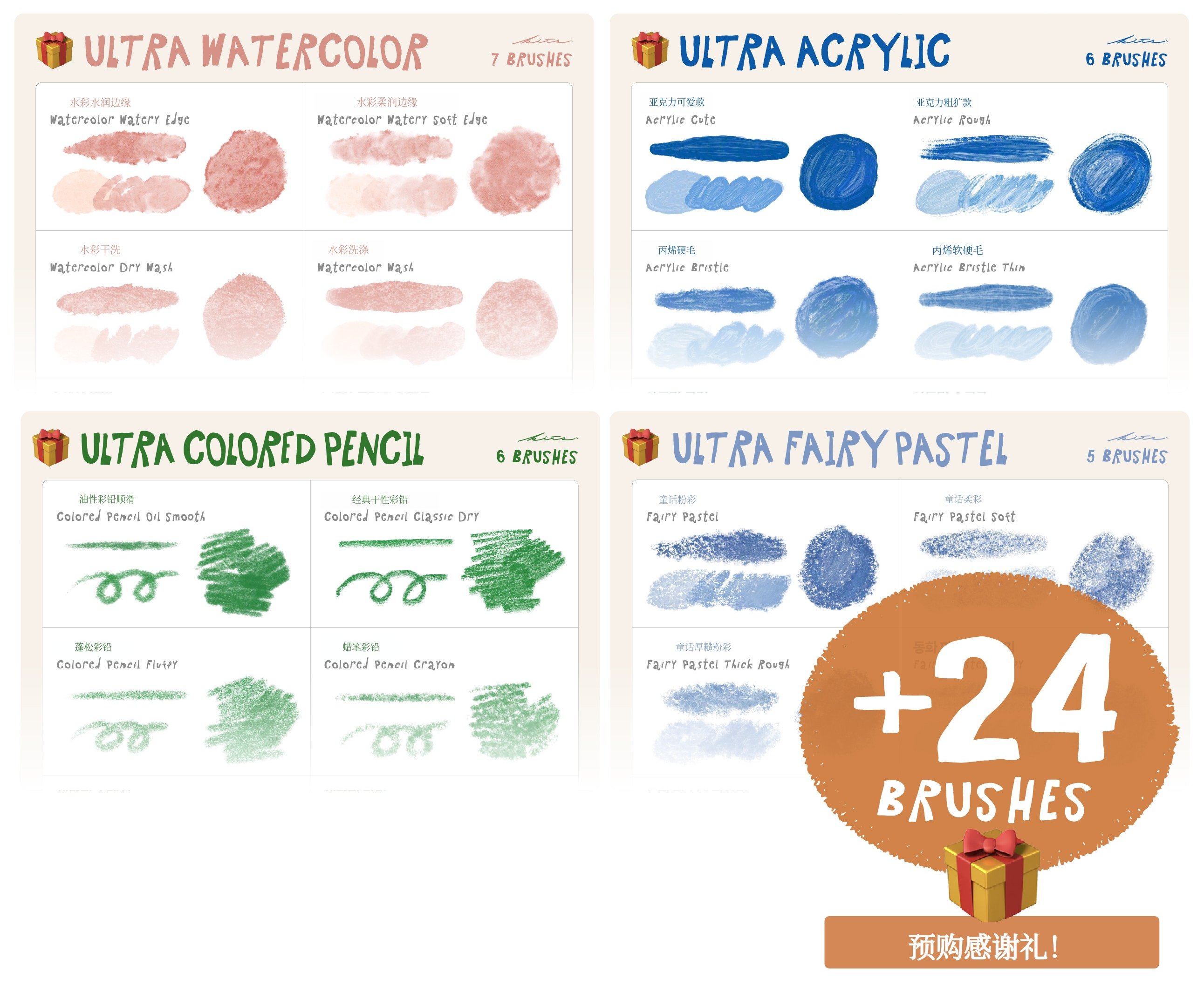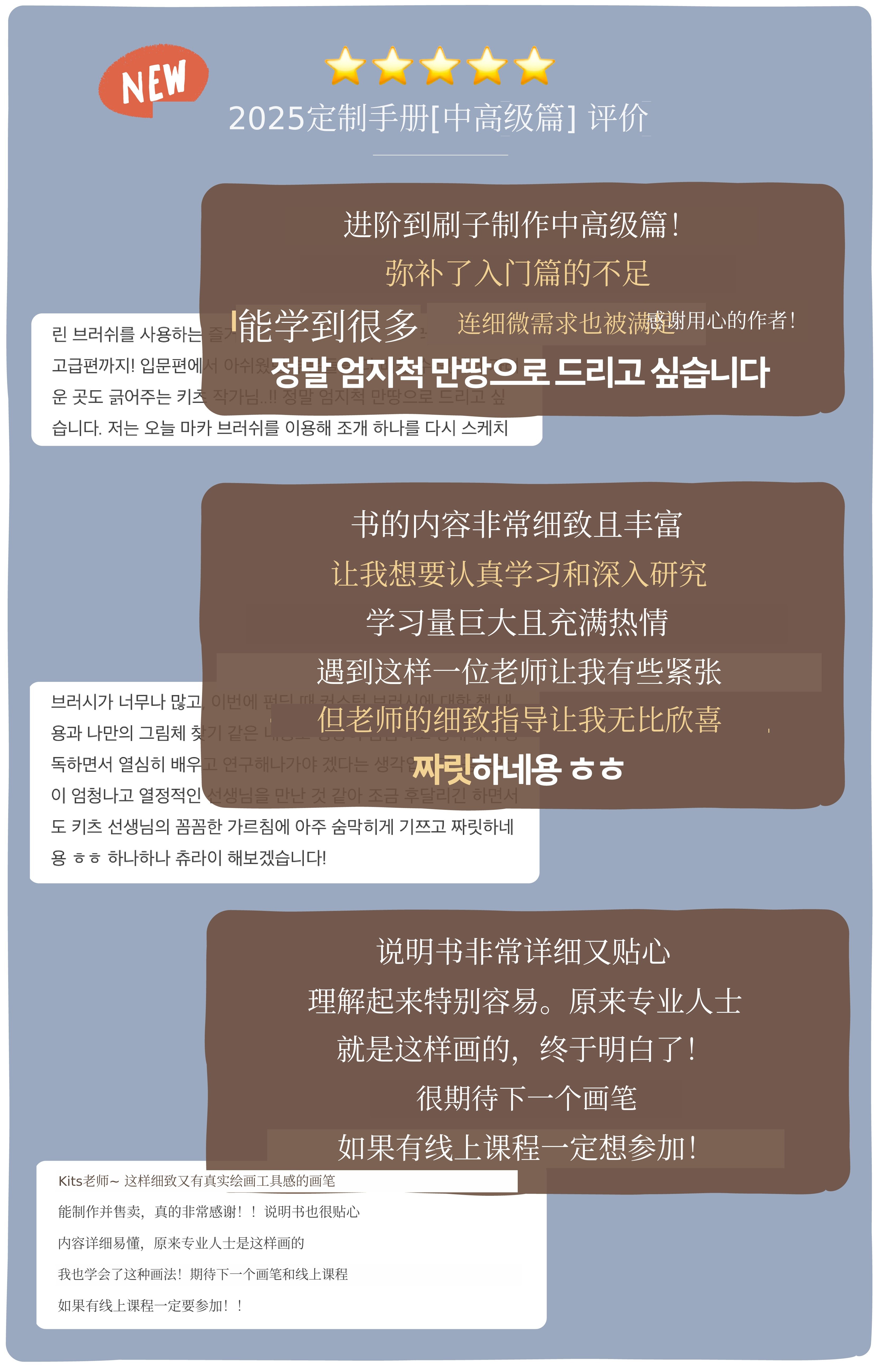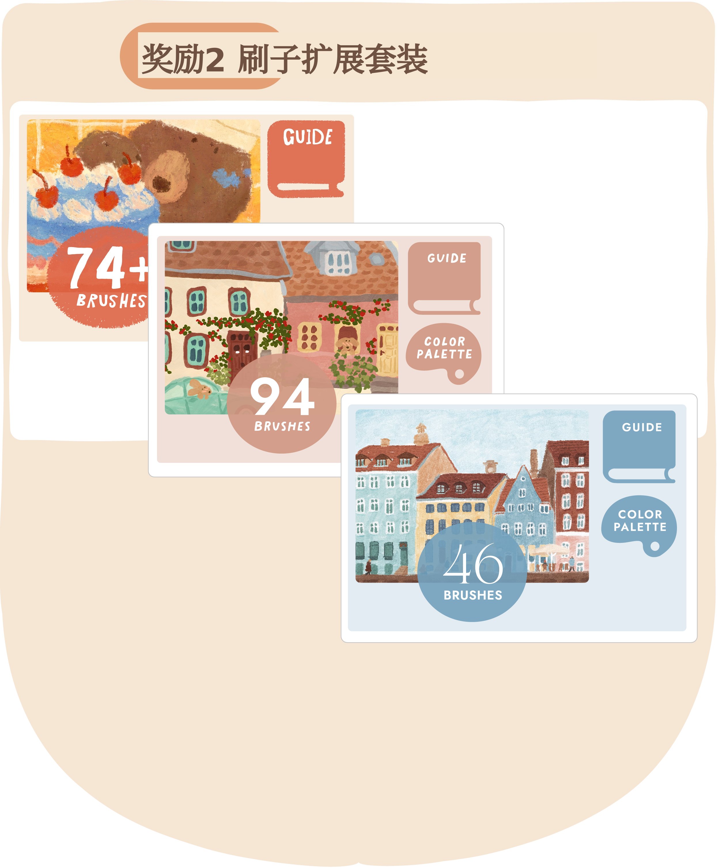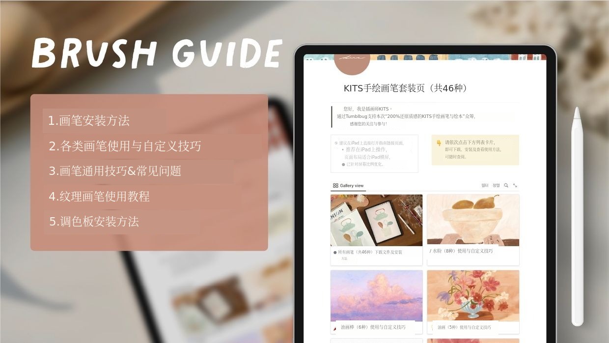 Kits Brush曾入选Class101 TOP20 通过iPad绘画“模拟质感”系列课程自2020年1月起,提供包含水粉、油画棒、水彩、彩色铅笔等材料及纸张质感的定制笔刷套装 开始提供。