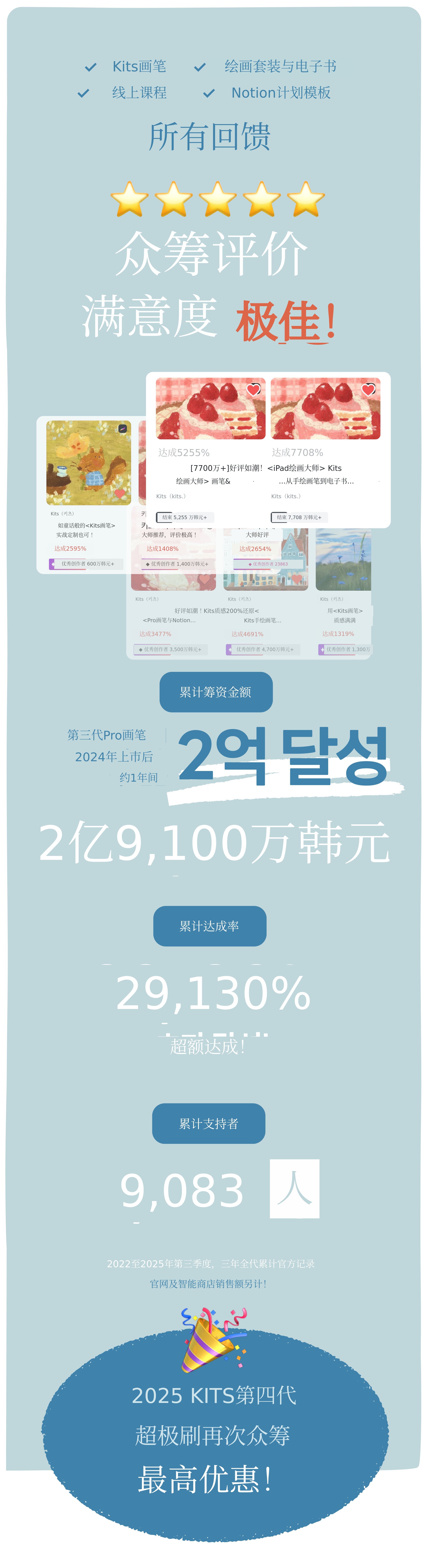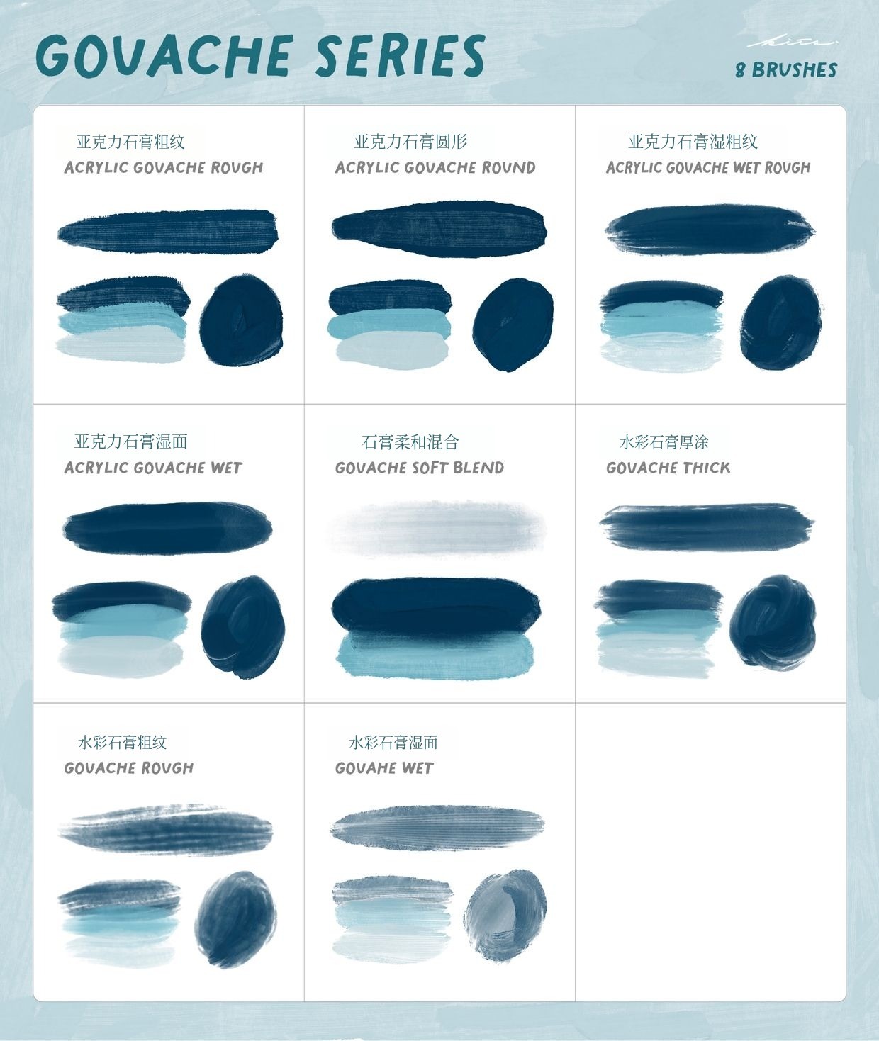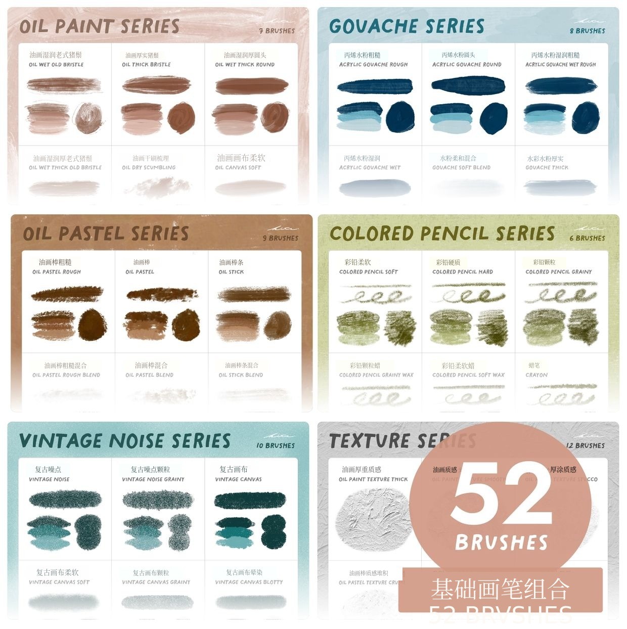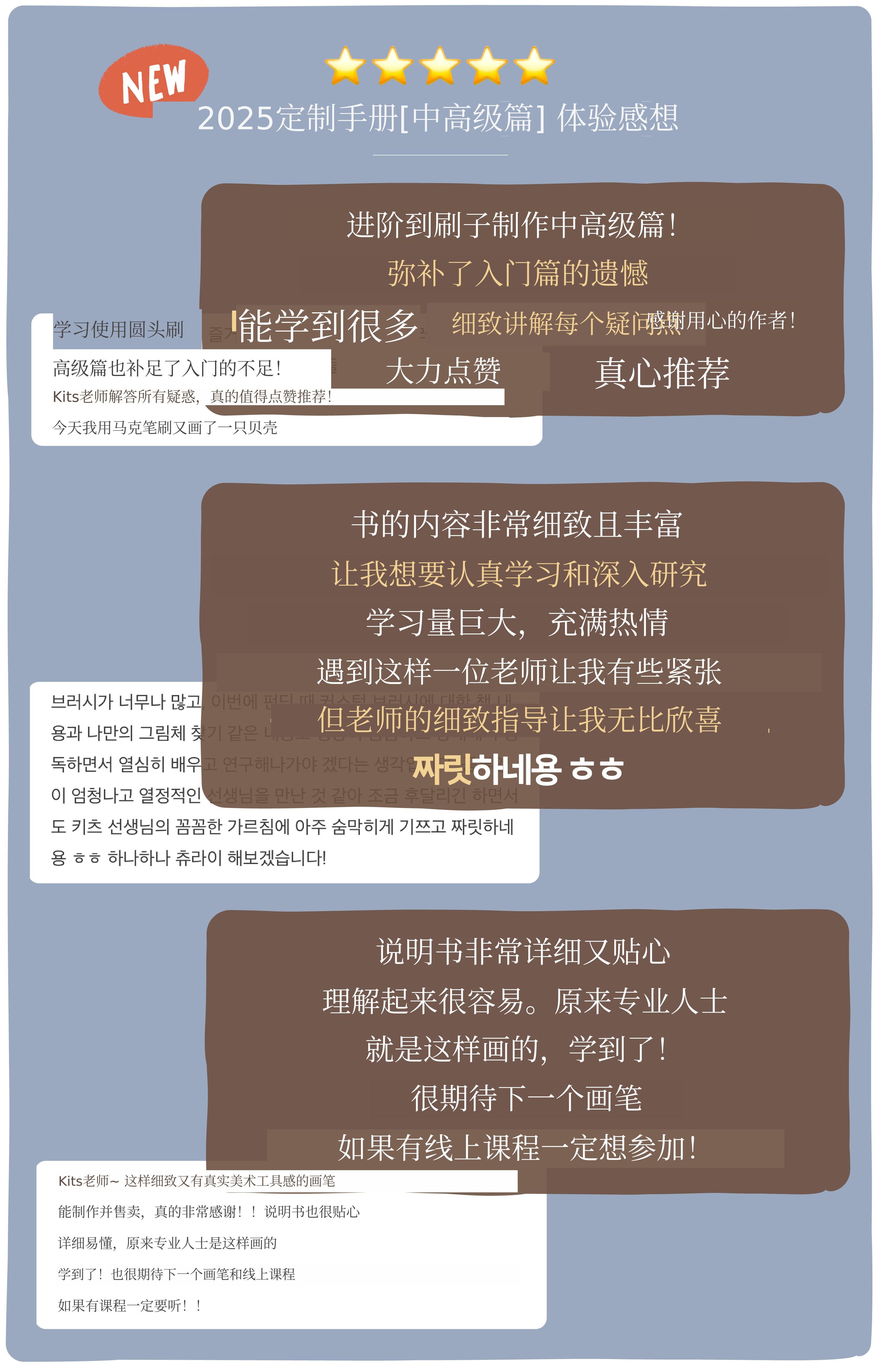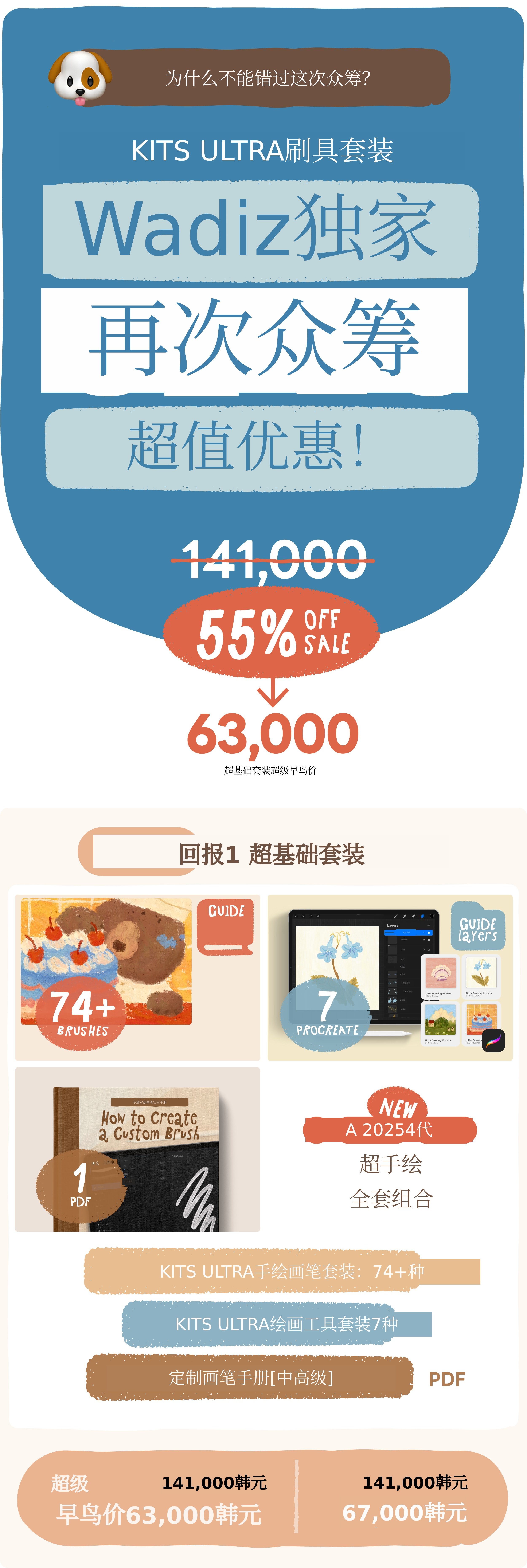 Kits Brush曾入选Class101 TOP20 通过iPad绘画“模拟质感”系列课程自2020年1月起,提供包含水粉、油画棒、水彩、彩色铅笔等材料及纸张质感的定制笔刷套装 开始提供。