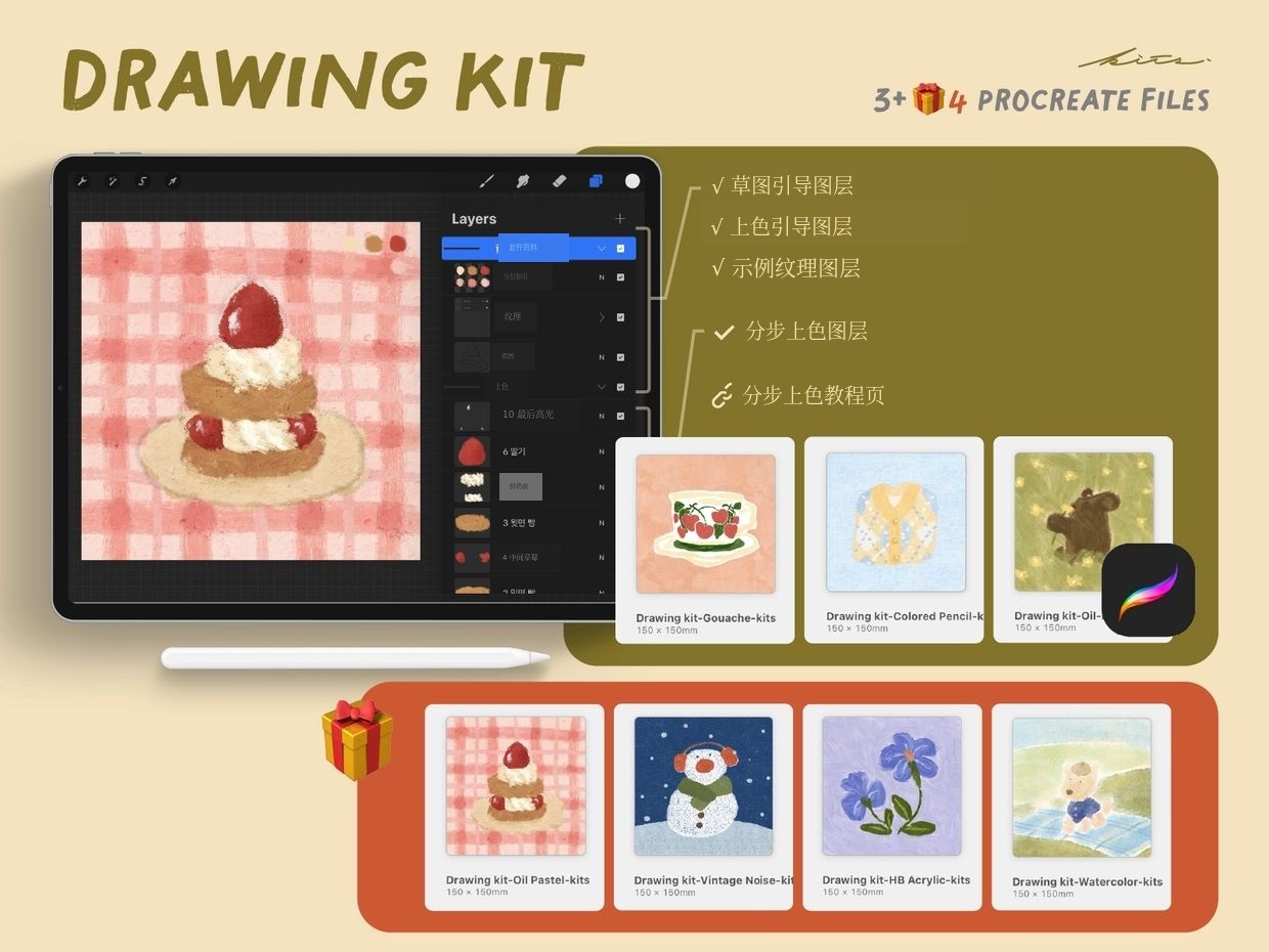 - 绘画套件:.procreate(兼容Procreate应用,包含作为指南资料的图层)