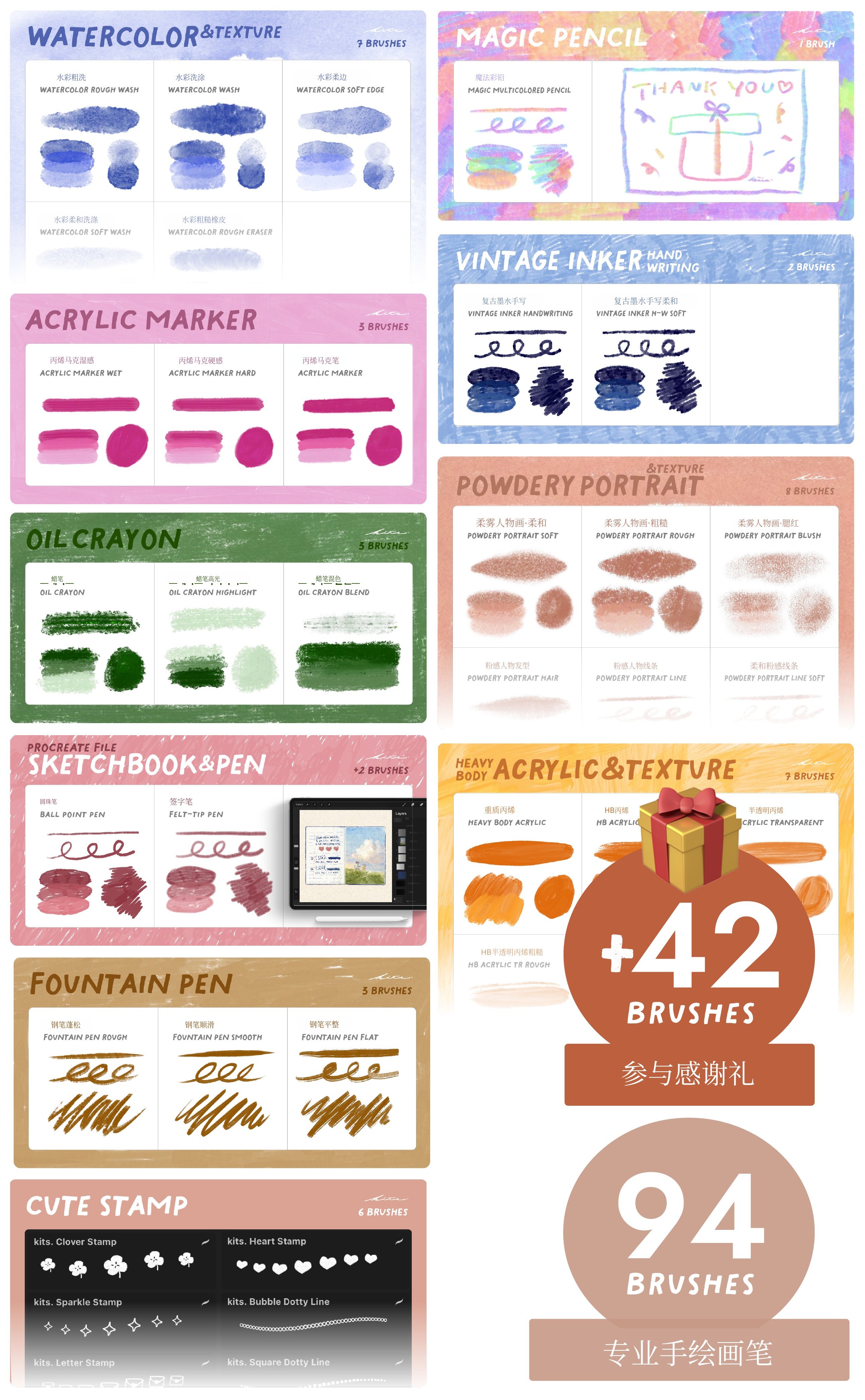 提供的画笔文件在iPad Procreate应用5X版本及以上可最佳使用。因此建议您更新应用,若收到后无法兼容,请通过消息联系我们!