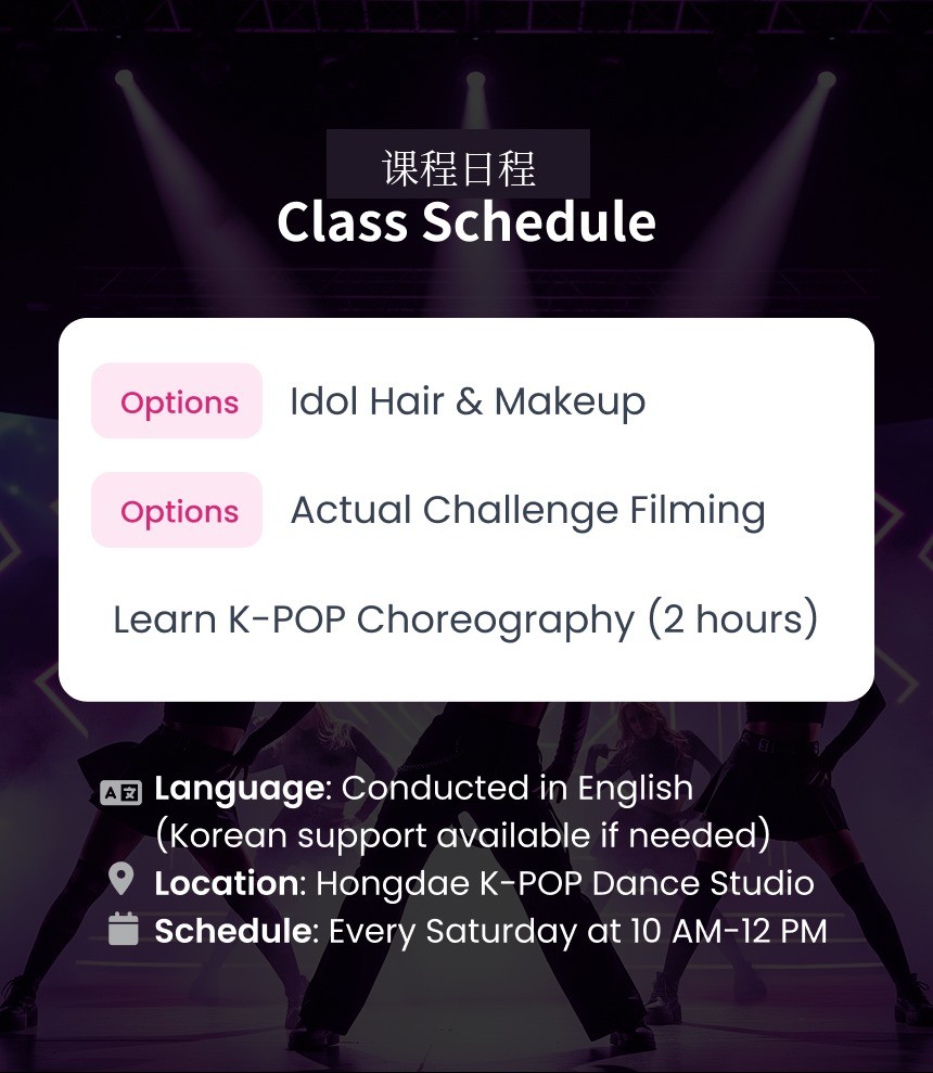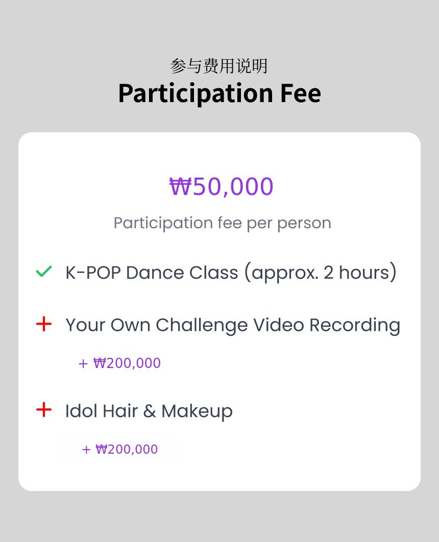 💰 费用:50,000韩元(仅限舞蹈挑战)