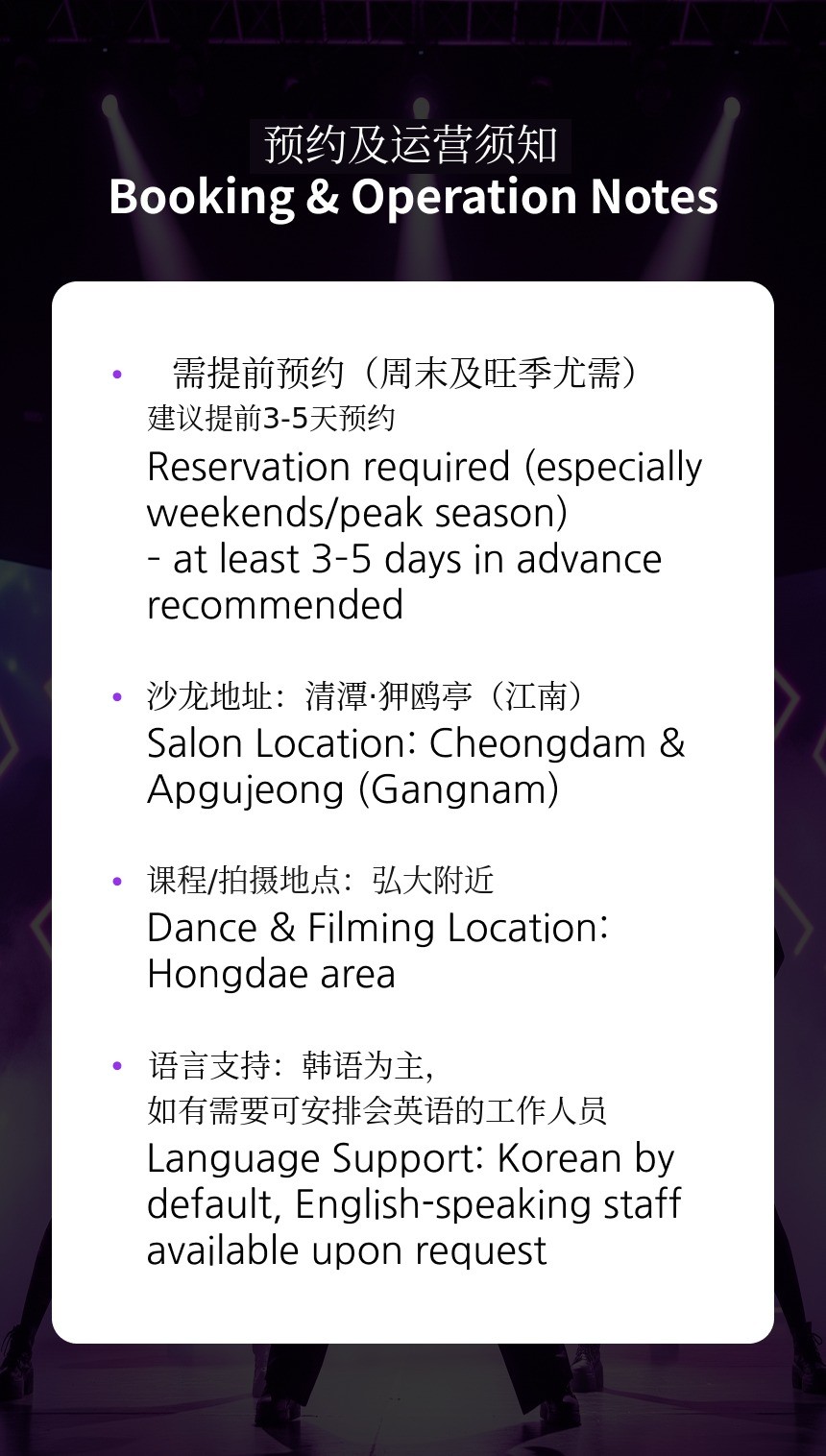 奖励提供地点: 弘大(编舞课程、短视频拍摄)、江南(偶像造型)