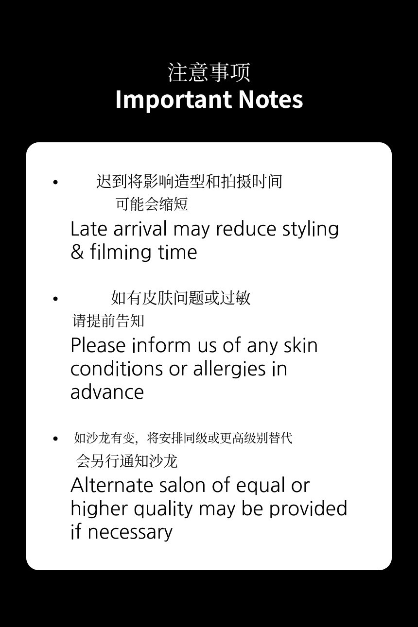- 是否提供服装、发型、化妆等:选择发型、化妆奖励时提供。(服装需自备)