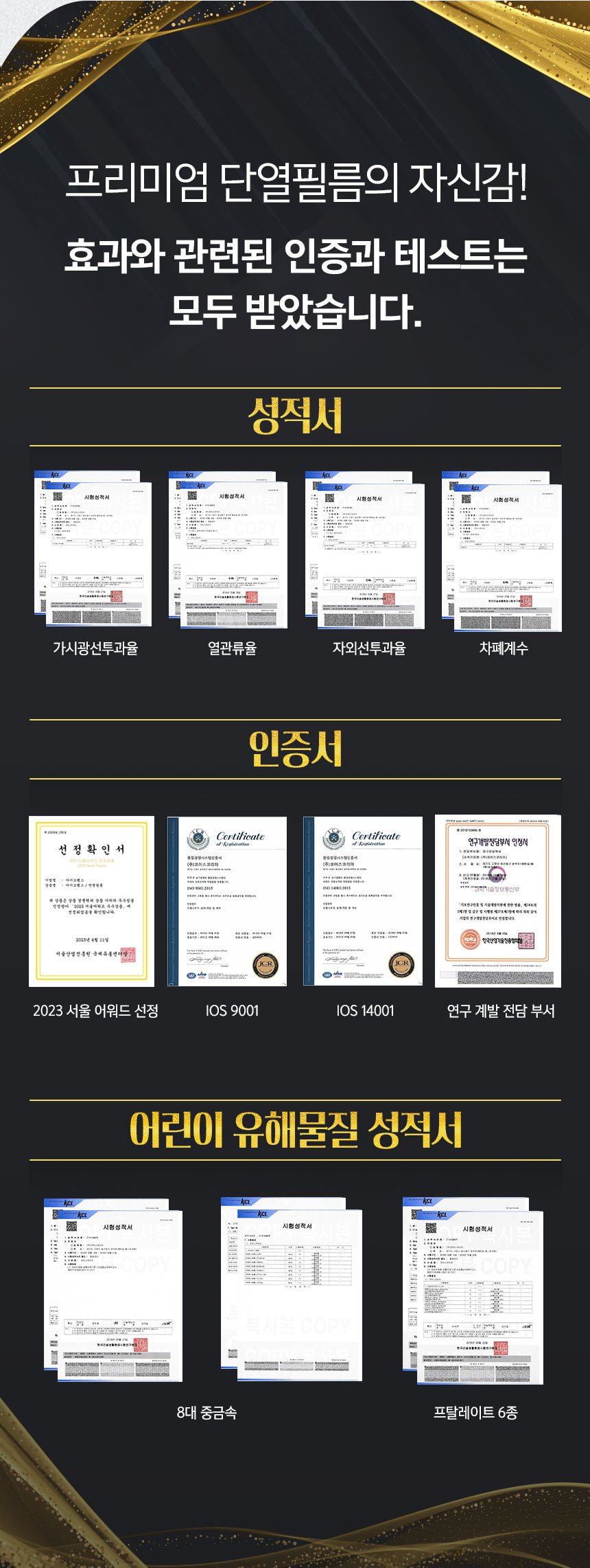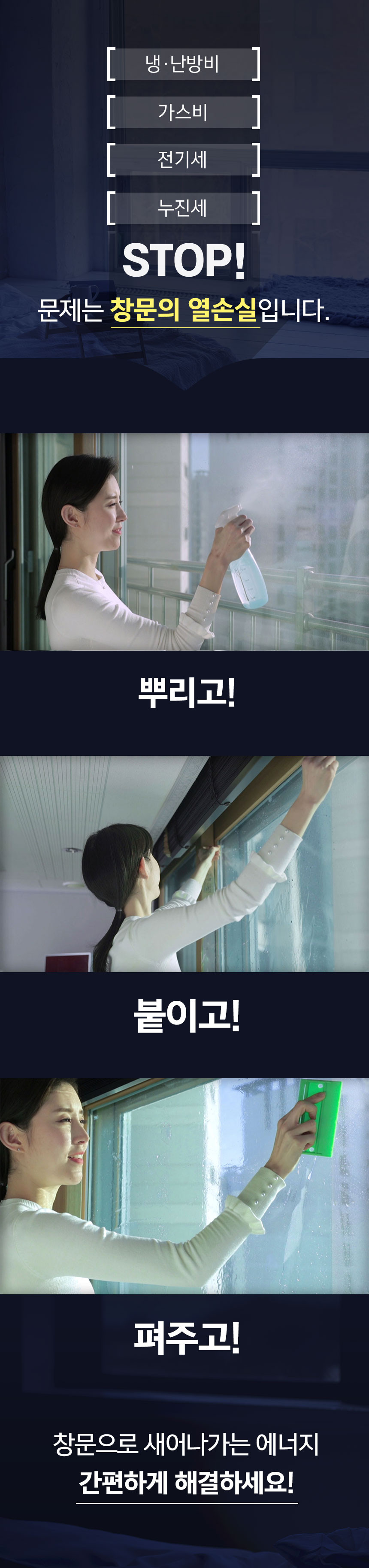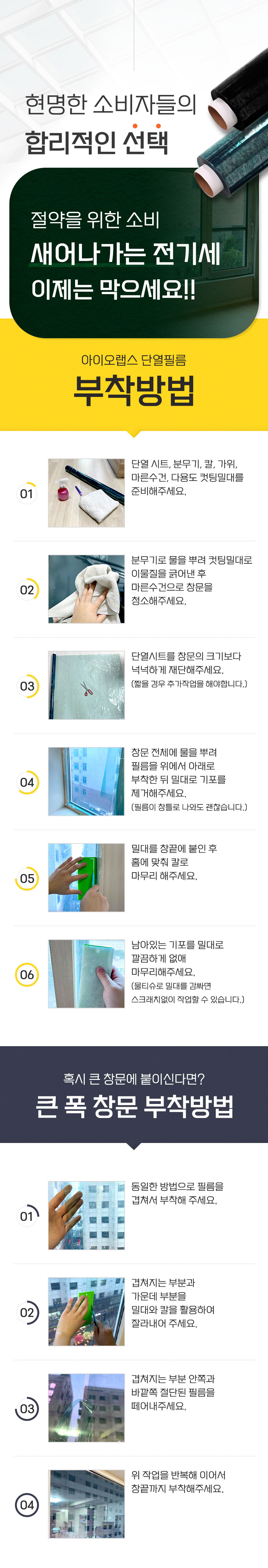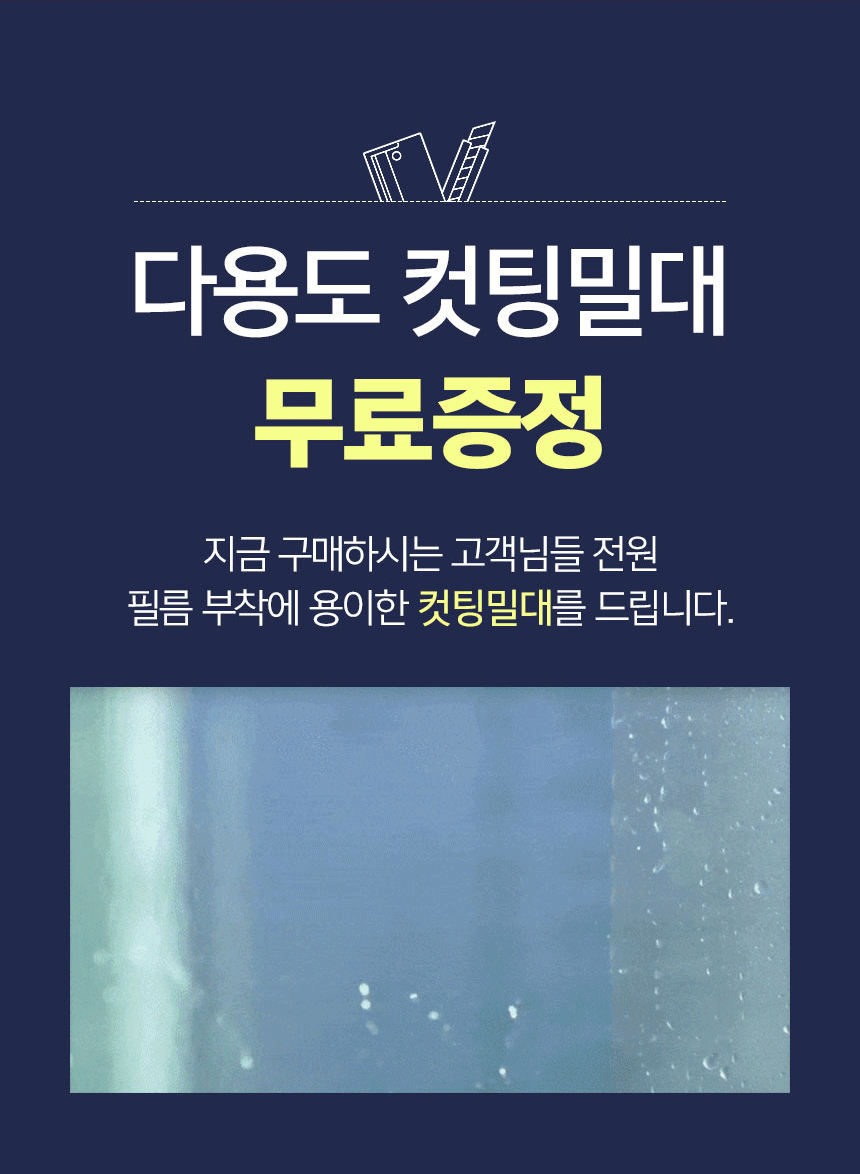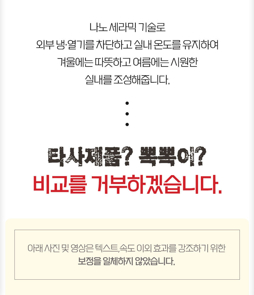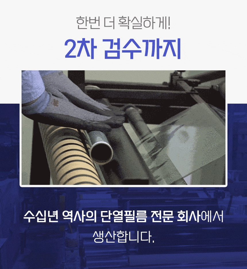 중국산이 아닌 영국산 프리미엄 원료를 수입하여 이후 원료 배합 및 전 공정을 국내에서 진행하며 "물만을 이용하여 누구나 손쉽게" 부착이 가능한 창문 단열필름입니다.