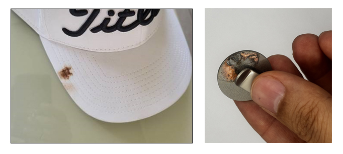 비나 염분에 노출되면 녹이 발생하지는 않지만 갈색 변색이