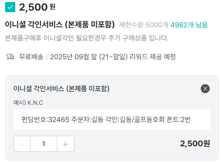 ※ 미진행시 각인 없이 출고 됩니다