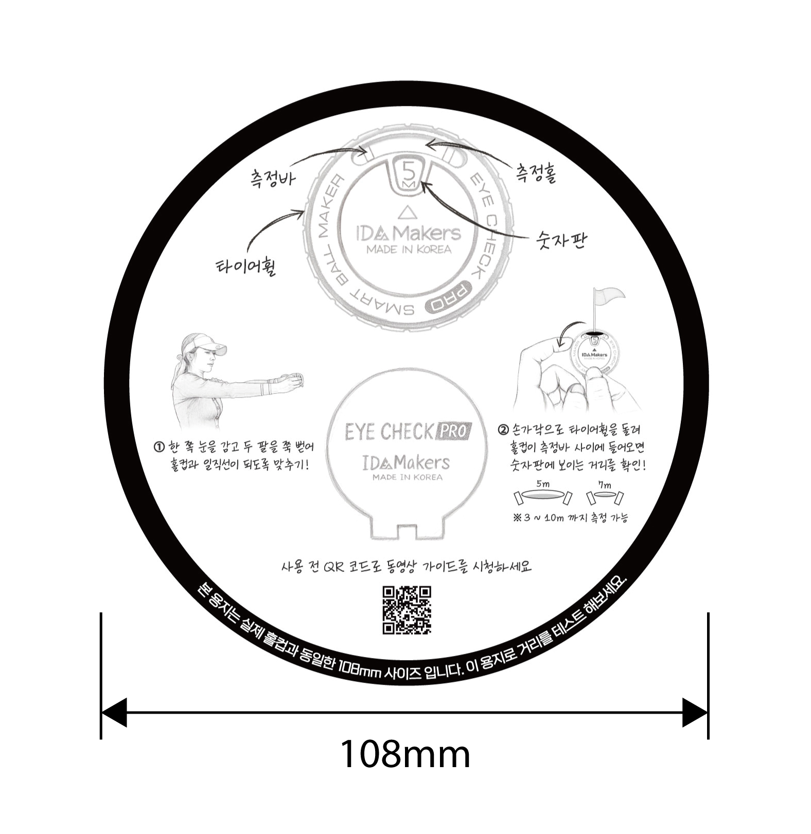 홀컵 규정 사이즈(108mm)의 설명서가 함께 동봉 되어 있어서