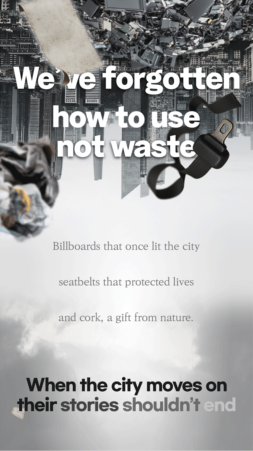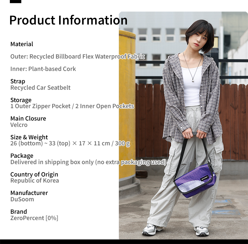 每个包袋都由回收的城市广告牌、再生汽车安全带和天然软木制成,将城市废弃物转变为真正实用且美观的物品。