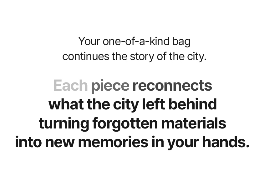 每个URBAG都是独一无二的——因为没有两种回收材料拥有相同的故事。