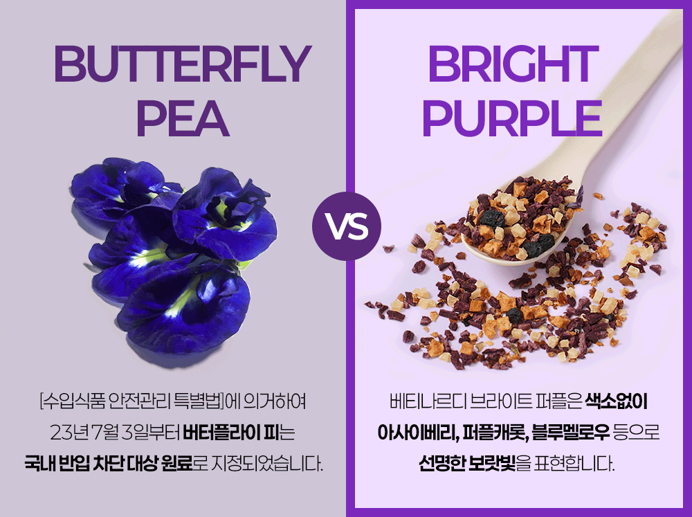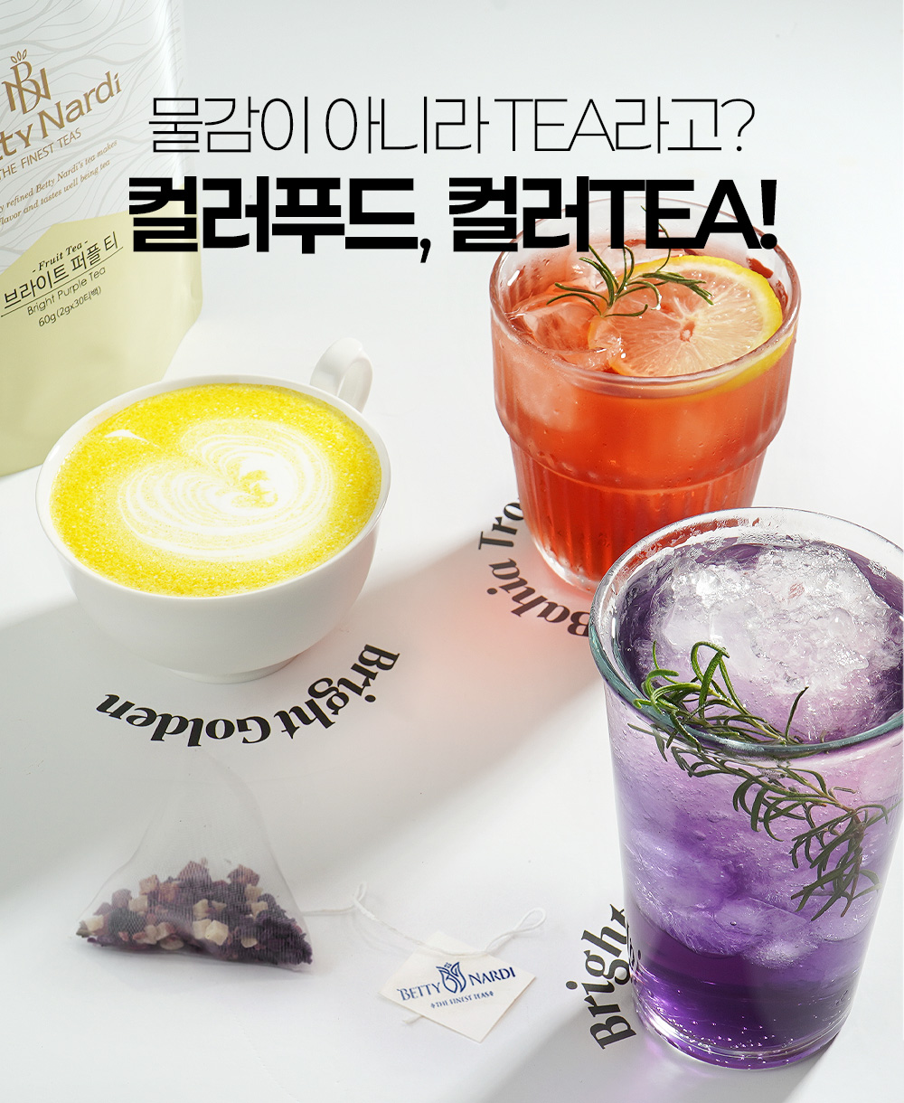 특히 23년 7월부터 시행된 버터플라이피 티의 유통금지 이후부터 그에 준하는, 푸른빛을 띄는 유니크한 허브를 찾기 위해 각고의 노력을 기울인 끝에 맛과 색의 밸런스, 그리고 안정성 모두를 잡는 '브라이트 퍼플'의 힌트를 얻으며, 동시에 내부에서 오랫동안 관심있게 연구하고 있던 강황(터머릭)의 특유의 약향을 보완한 '브라이트 골든'을 출시하게 되었습니다.