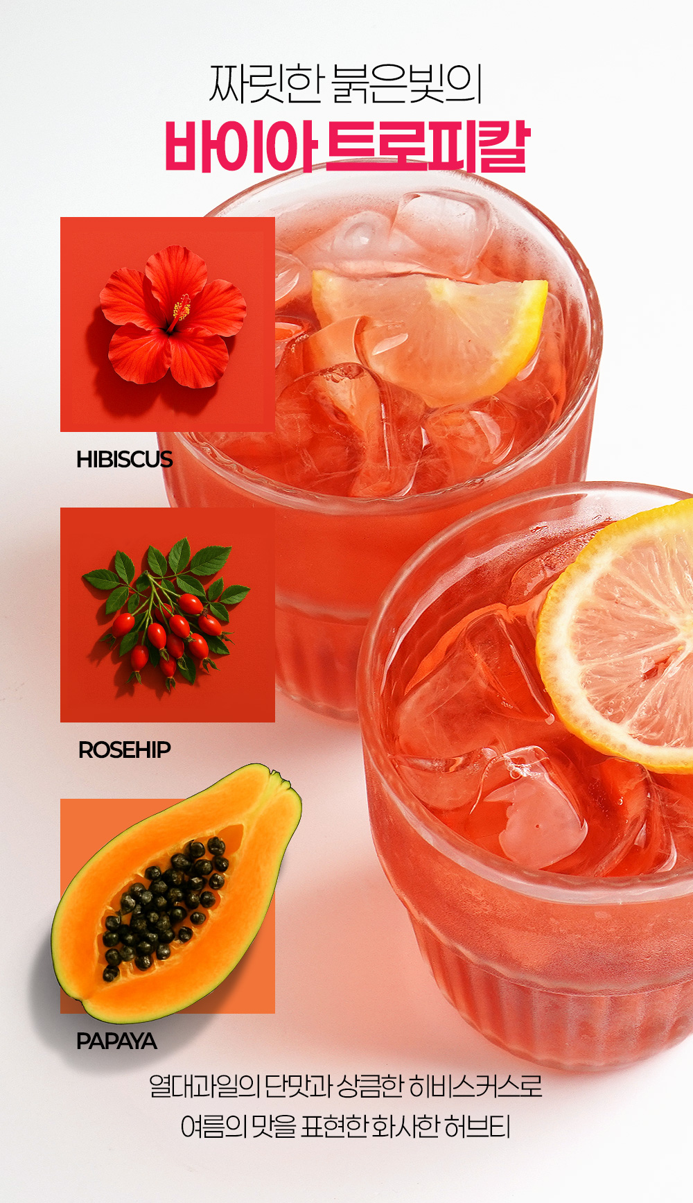 카페인 걱정없는 허브와 과채류를 담았습니다.