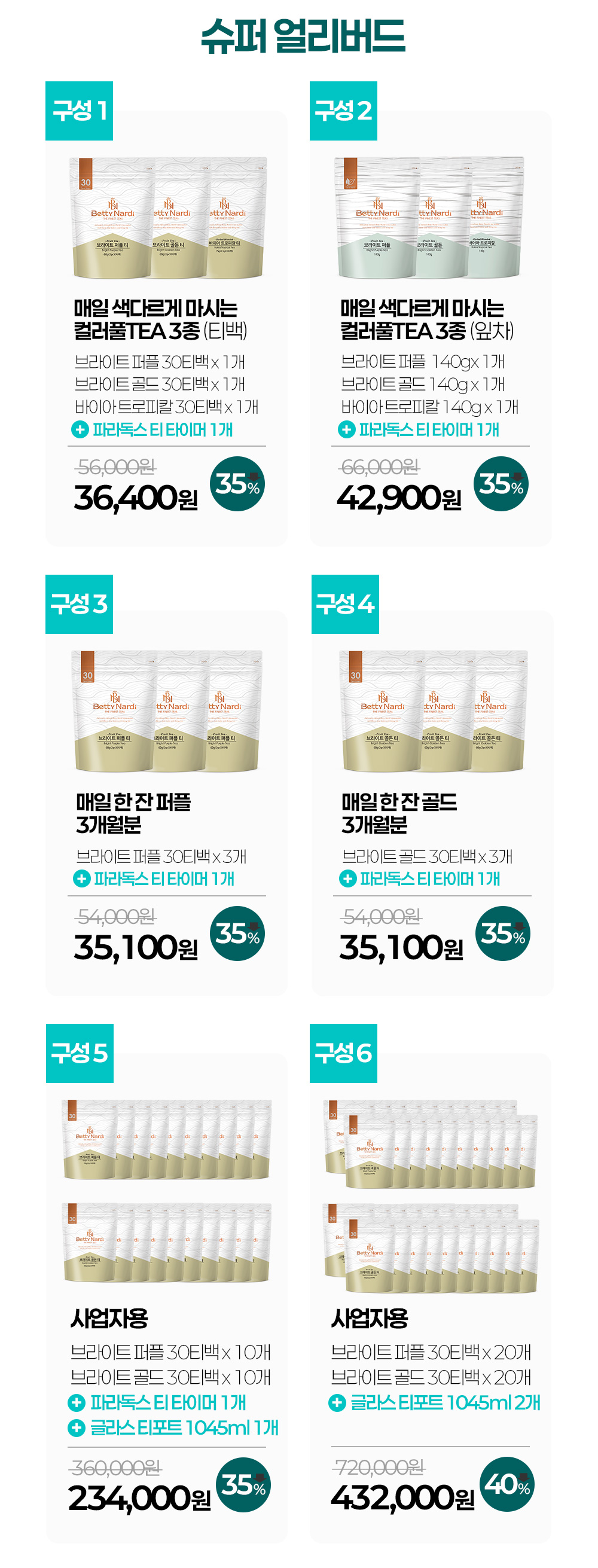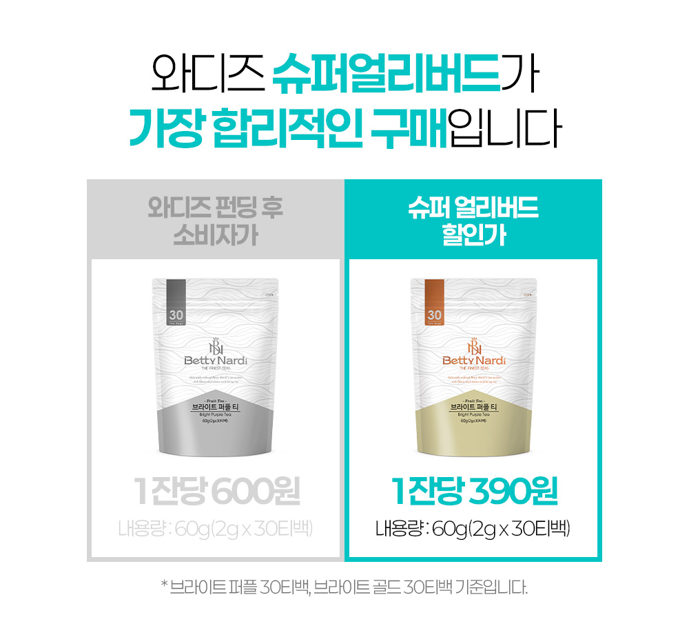 이번 펀딩에 도전하는 브라이트 골든티와 퍼플티는 베티나르디는 약 100여종의 다양한 상품종류를 가지고 있는 TEA브랜드의 상품 중 하나로, 1995년부터 레스토랑, 카페, 소매점 등에 유통하고 있는 삼주T&B의 주력 브랜드입니다.