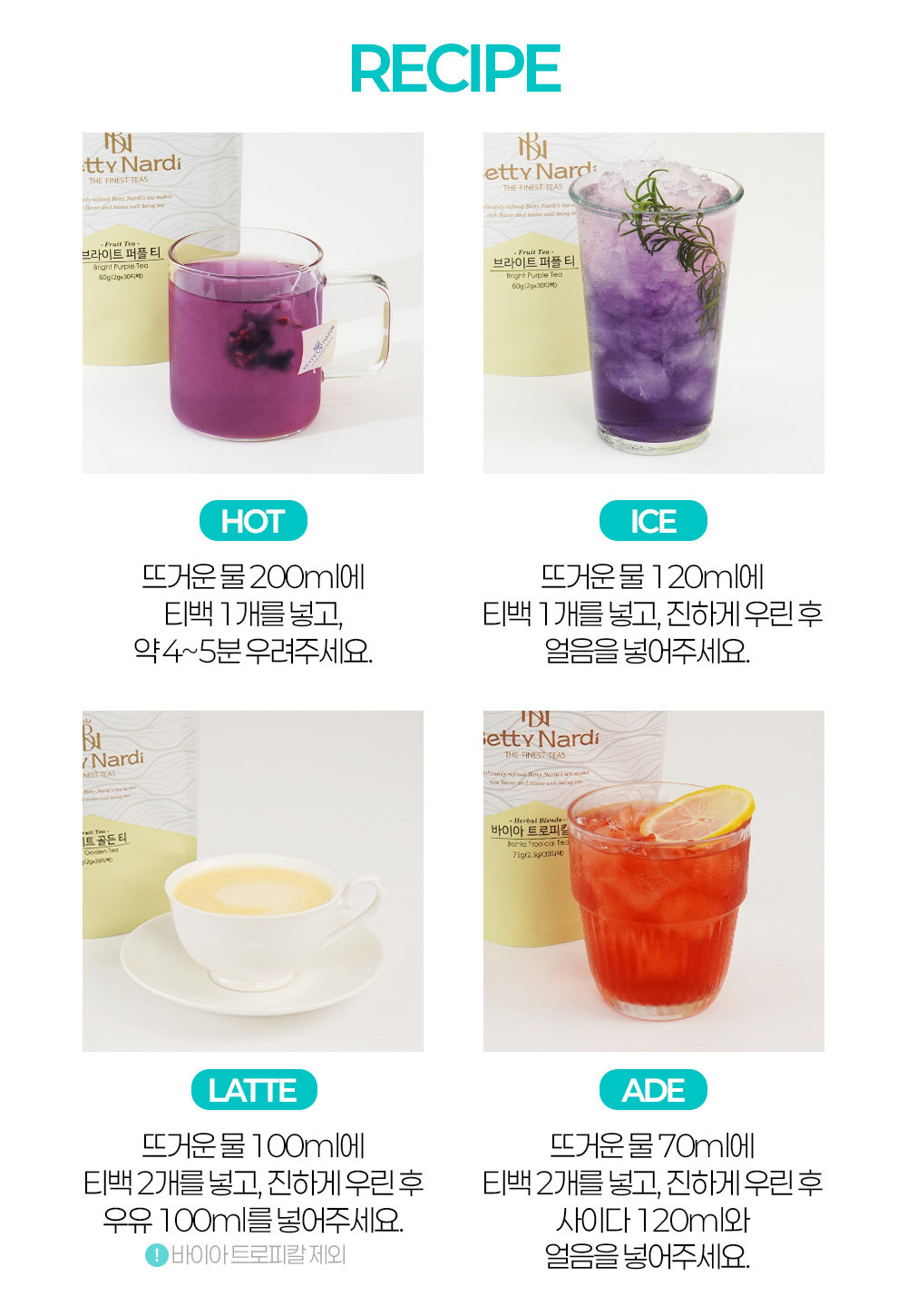 국내 차 시장에서 카페인 부작용에 대한 부담감으로 전체 매출에서 허브티가 차지하는 비중이 매년 늘어나는 기조를 캐치한 저희는 전세계의 유명한 인퓨전(블렌딩 허브차)를 발굴하는데에 큰 힘을 쏟고 있습니다.