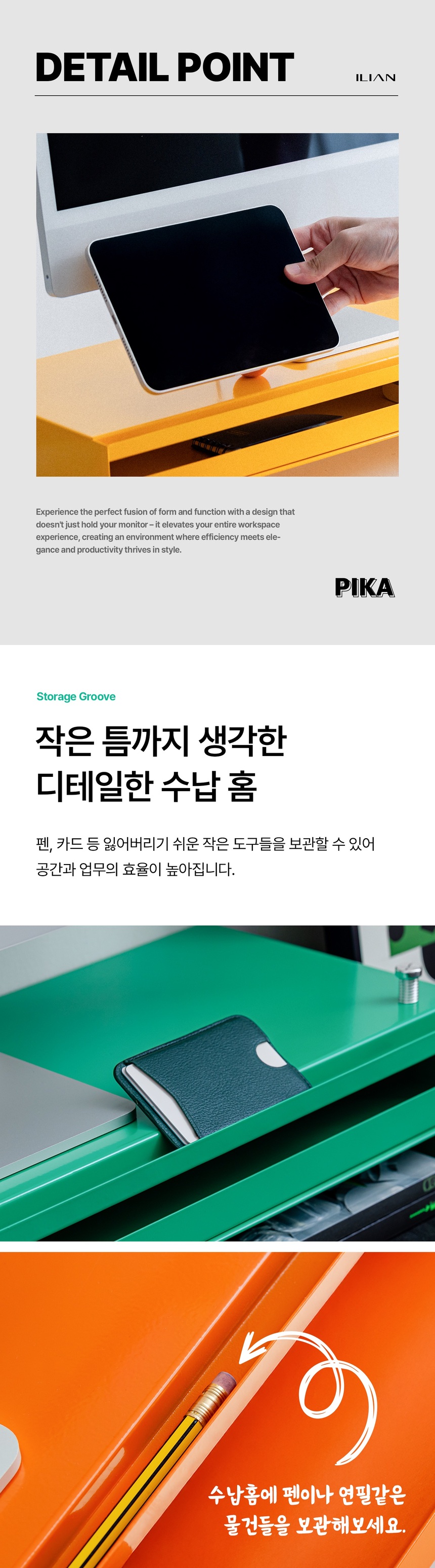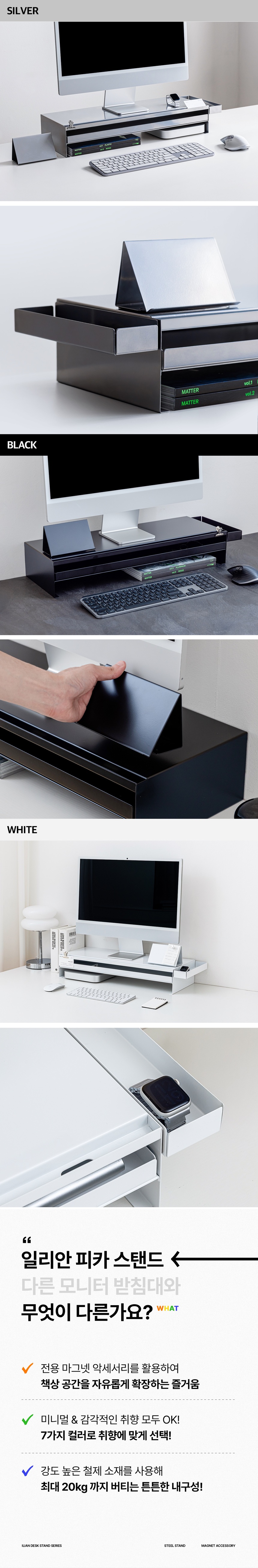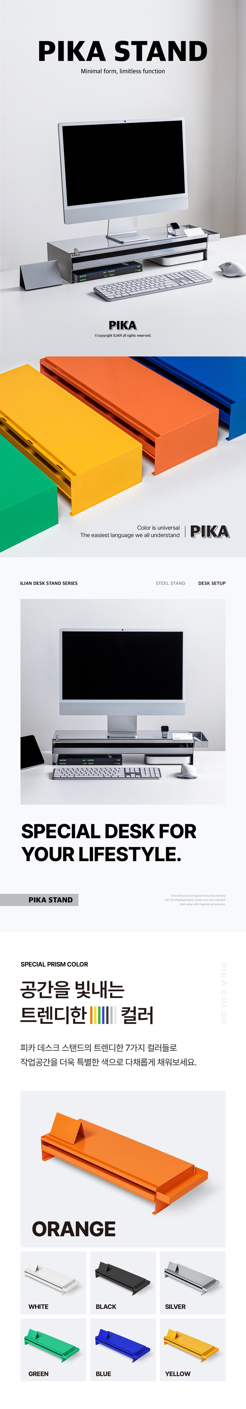 일리안만의 차별화된 디자인과 기능성을 위해 끝없이 연구하고 고민한 결과물인 피카 데스크 스탠드를 와디즈를 통해 여러분께 처음 선보입니다. 많은 관심과 검증 부탁드립니다.