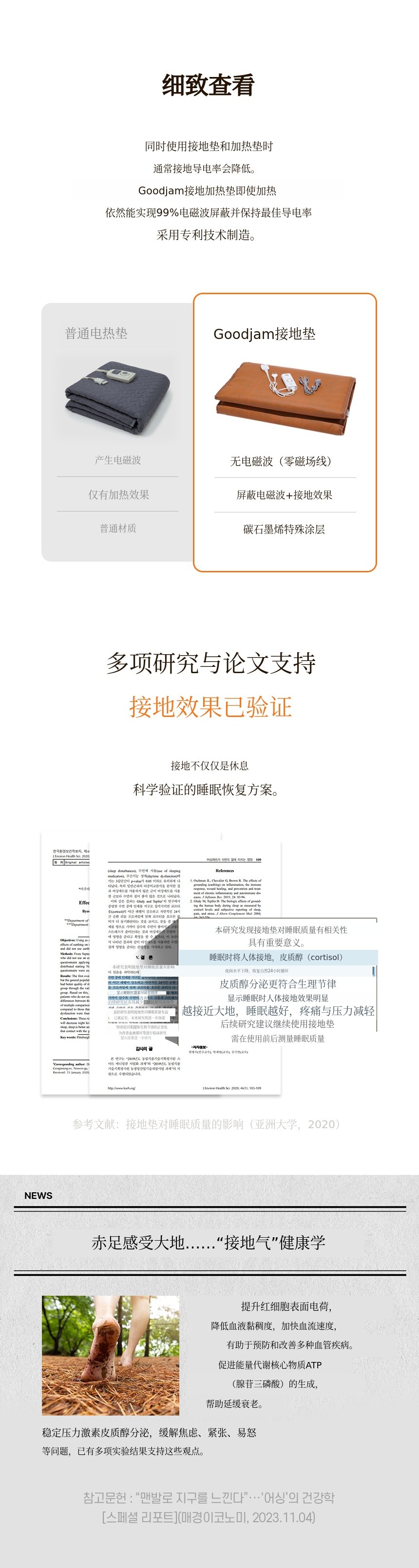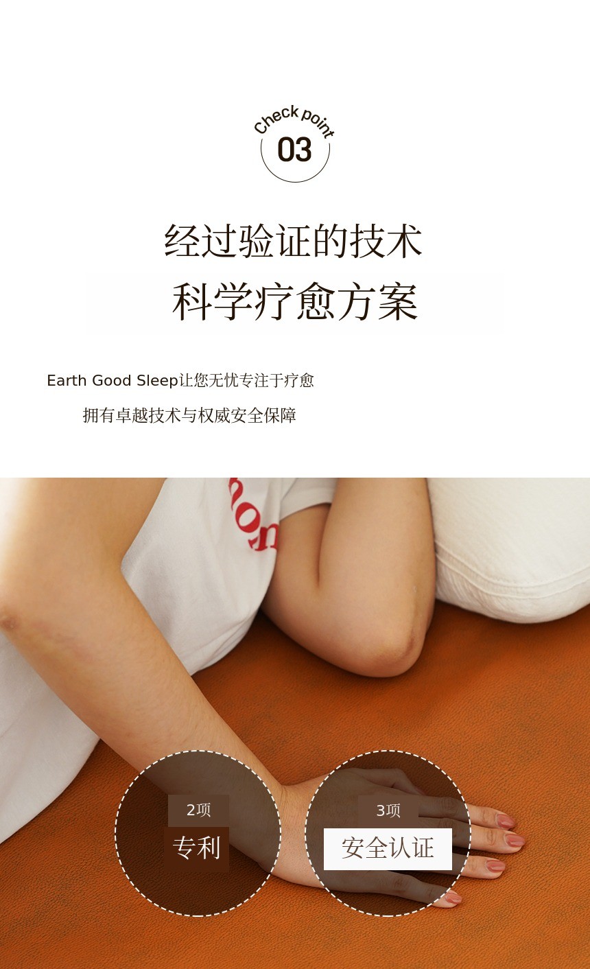 Earthing Good Sleep 黄土加热垫是寝具·纺织品专业制造商 与赤脚行走运动权威国际赤脚行走协会会长金道南(赤脚老师) 共同打造的接地产品。