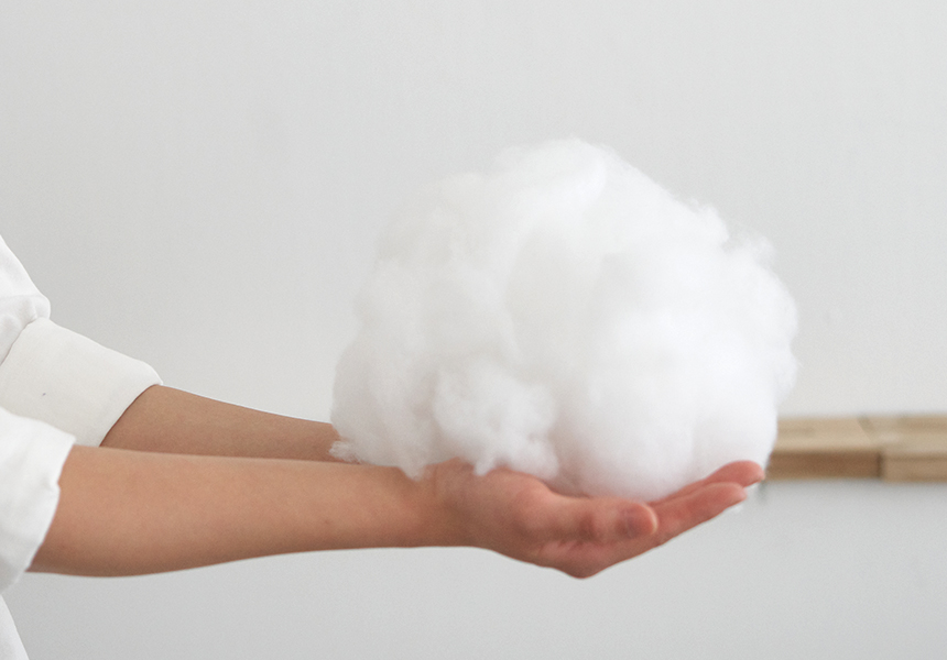 섬유 굵기가 가늘고 촘촘하여 같은 무게 대비 보온성이 뛰어난 충전재 입니다.