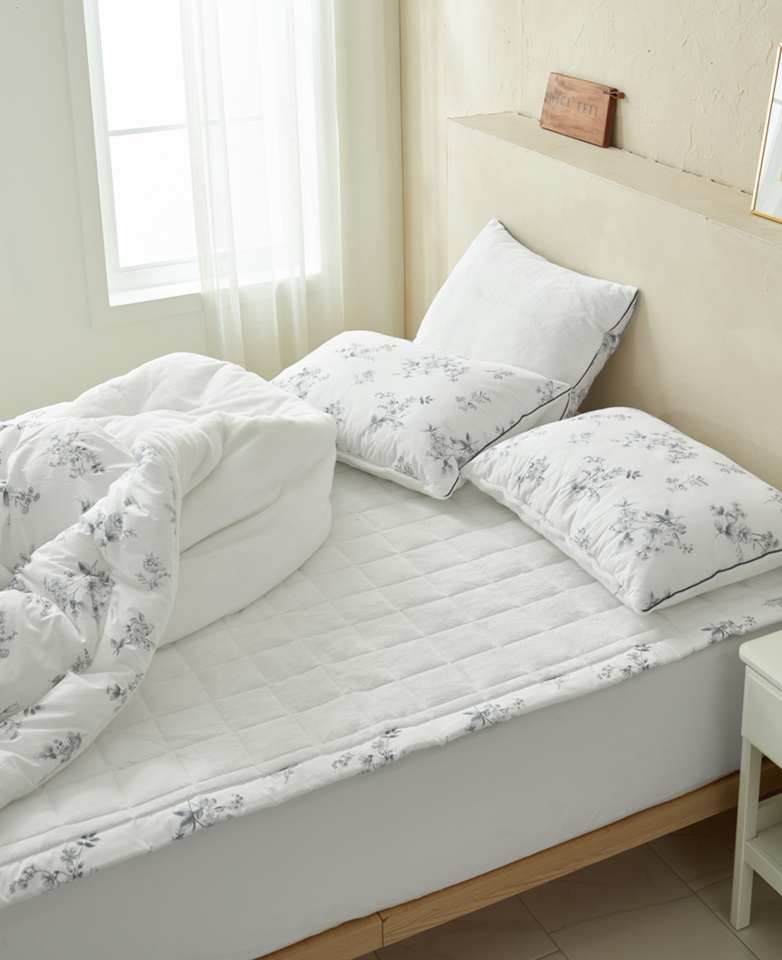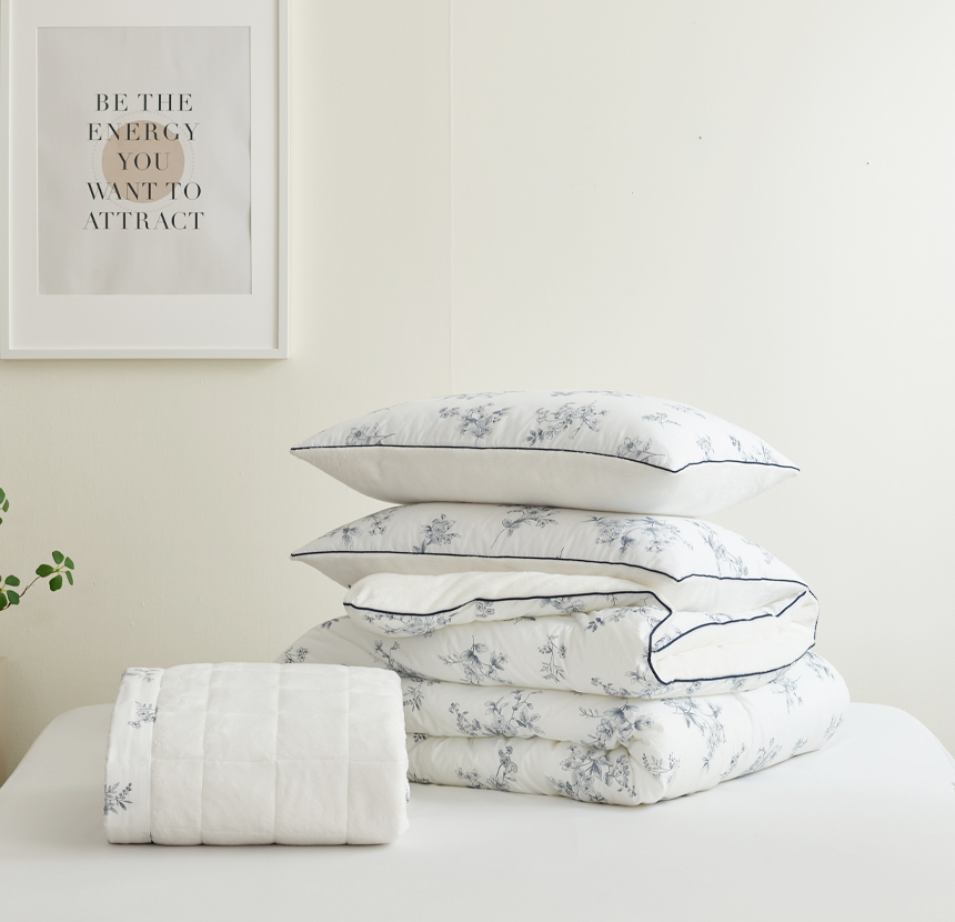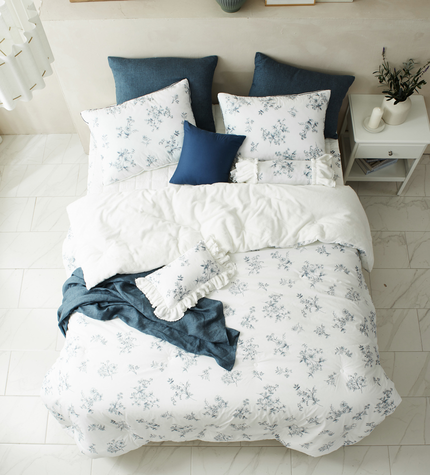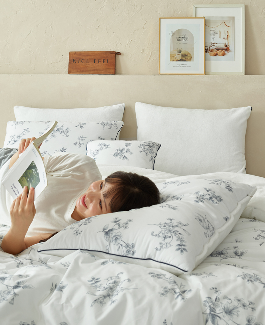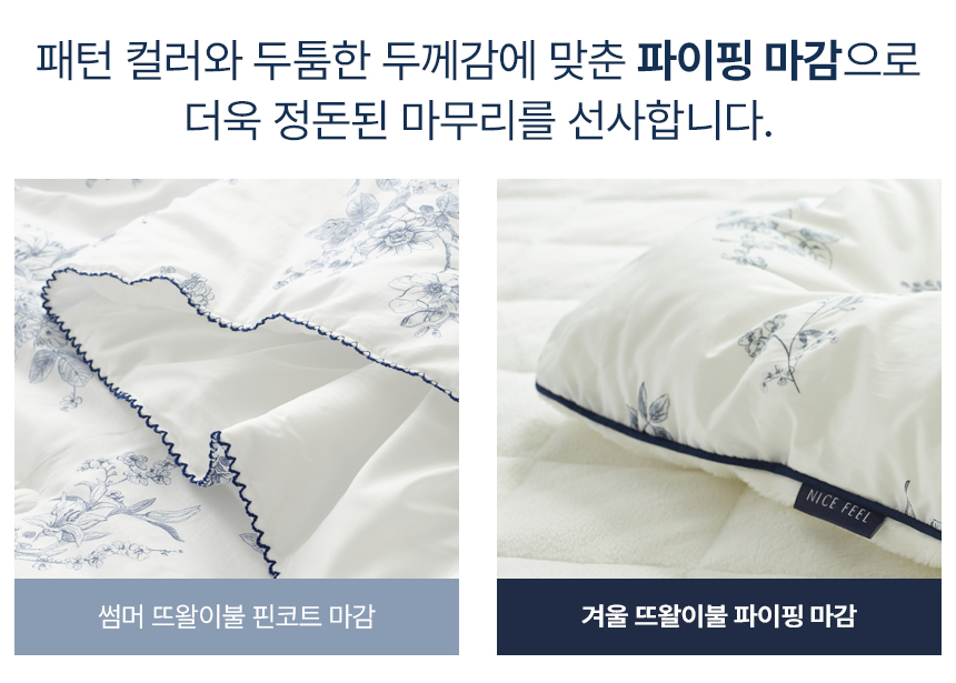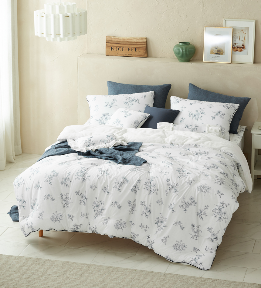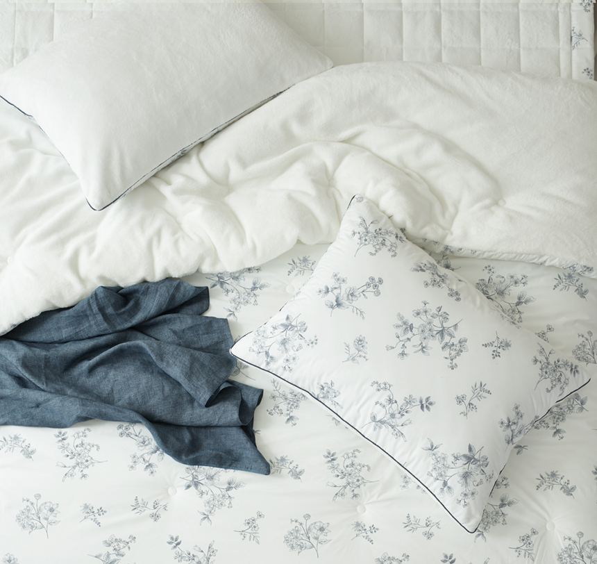 섬세한 파이핑 마감을 더해 흐트러짐 없는 완성도를 자랑합니다. 세탁후에도 모양이 잘 유지되어 오래도록 깔끔하게 사용할 수 있으며, 작은 디테일까지 신경 쓴 파이핑 라인이 세련된 포인트가 되어 침실 분위기를 더욱 돋보이게 합니다.
