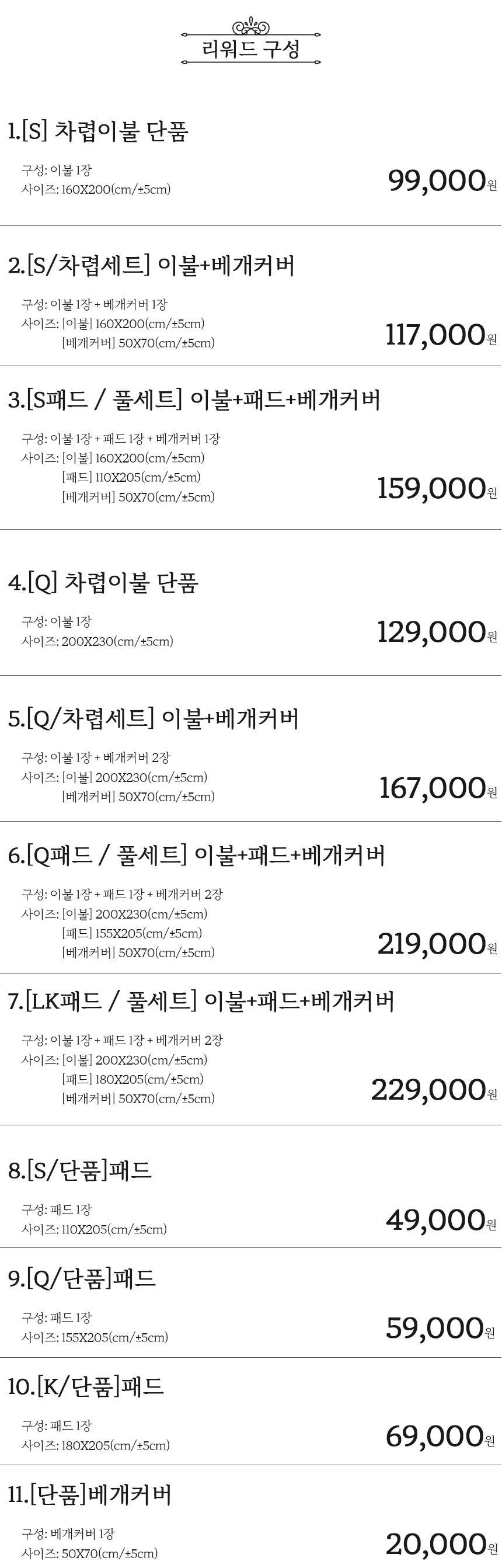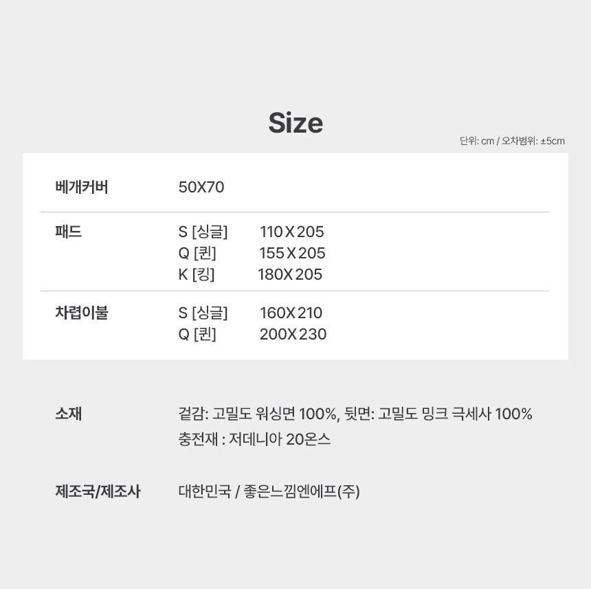 차렵이불S 단품기준