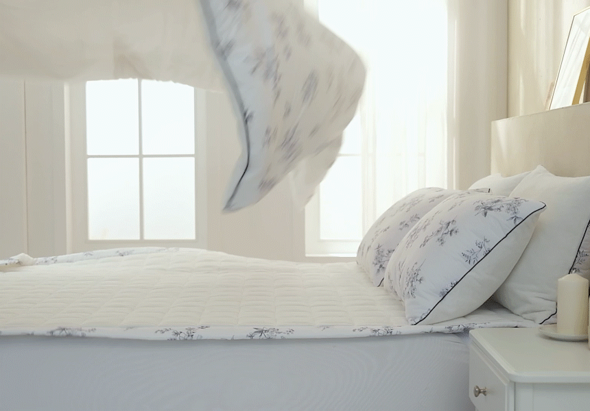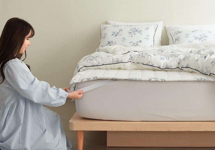 사방 모서리 밴딩이 매트리스를 단단히 고정해 패드가 들리거나 말릴 일이 없습니다. 씌우고 벗기기 편리해 위생 관리도 손쉽게, 늘 깔끔한 침실을 완성합니다.