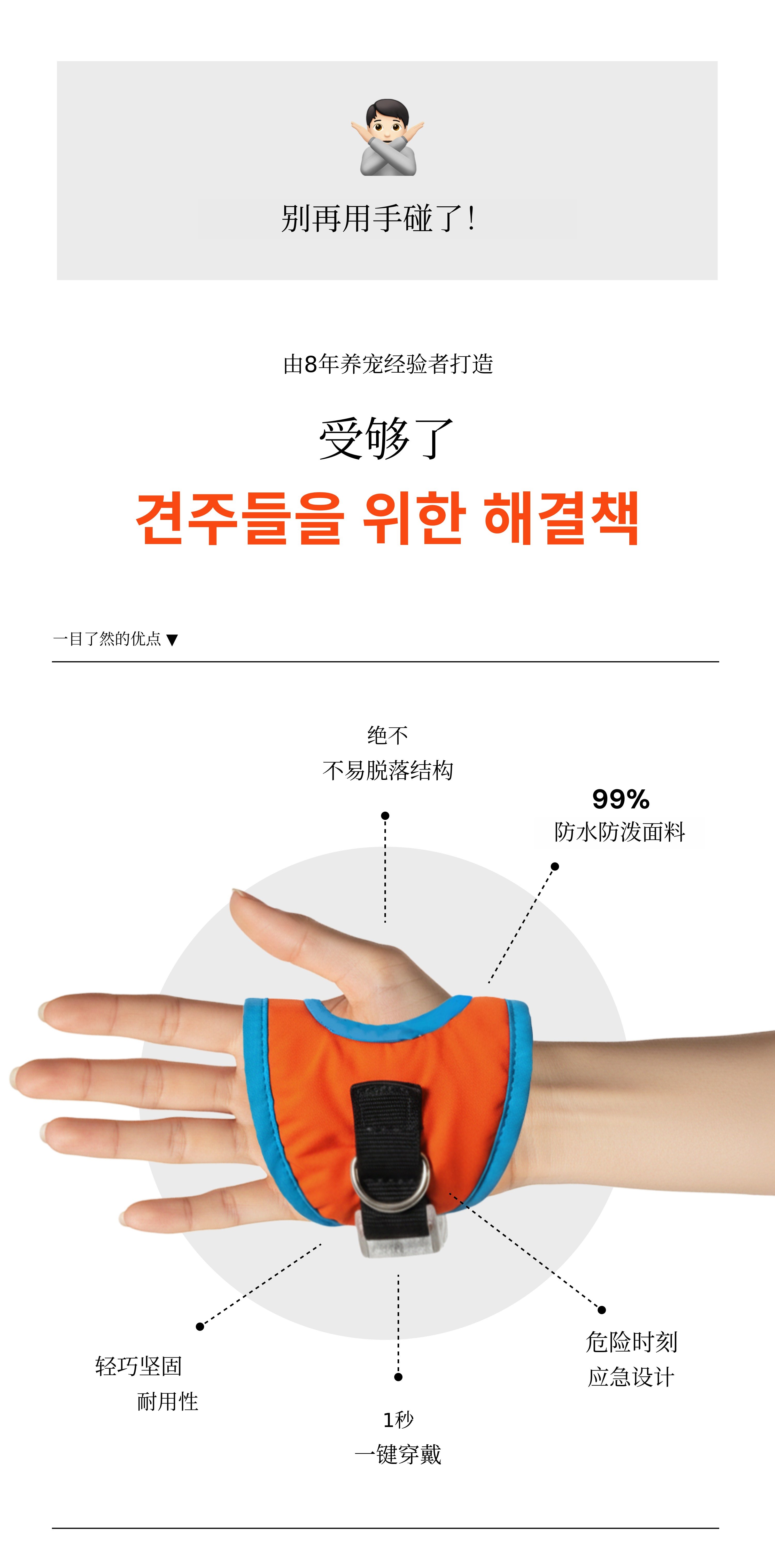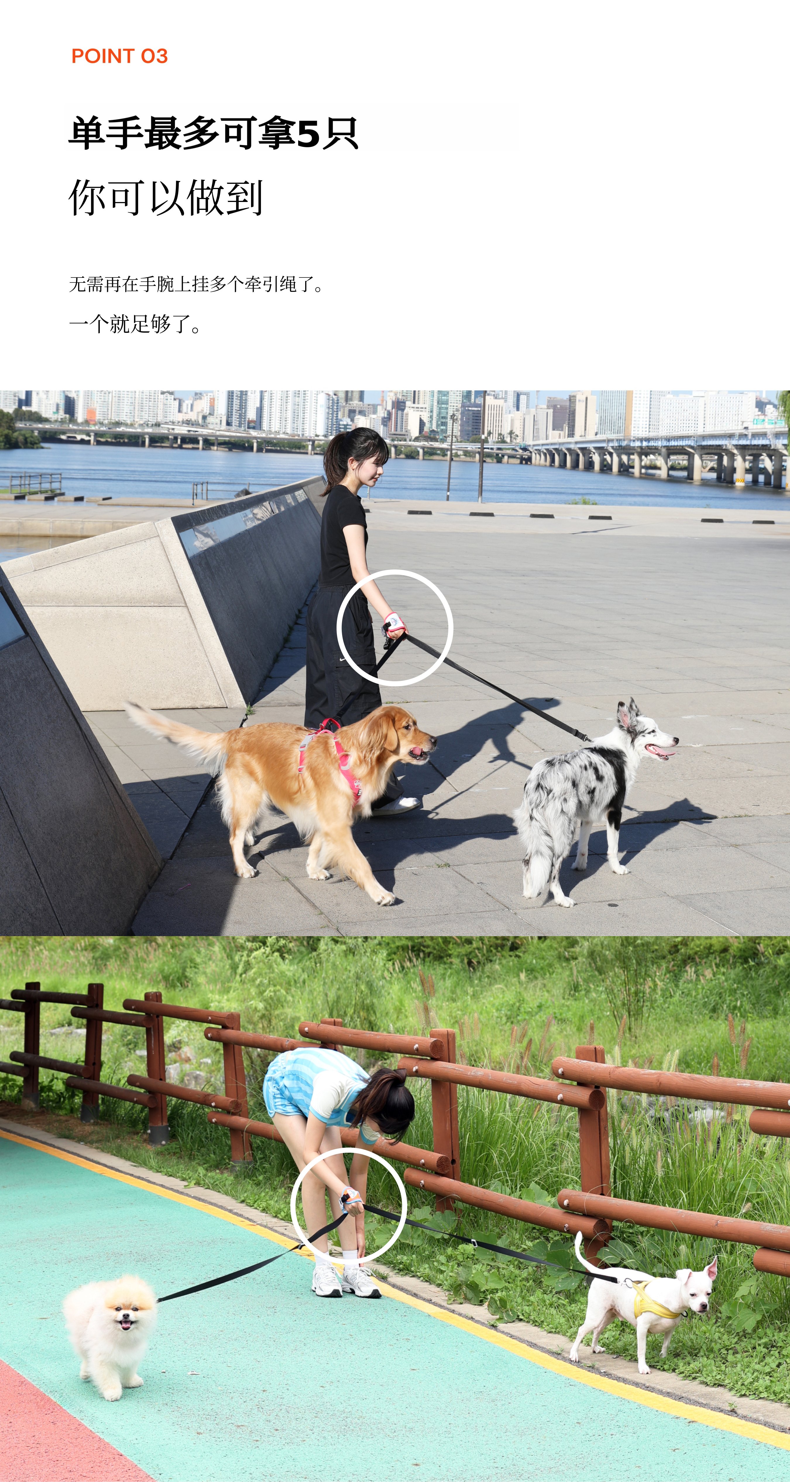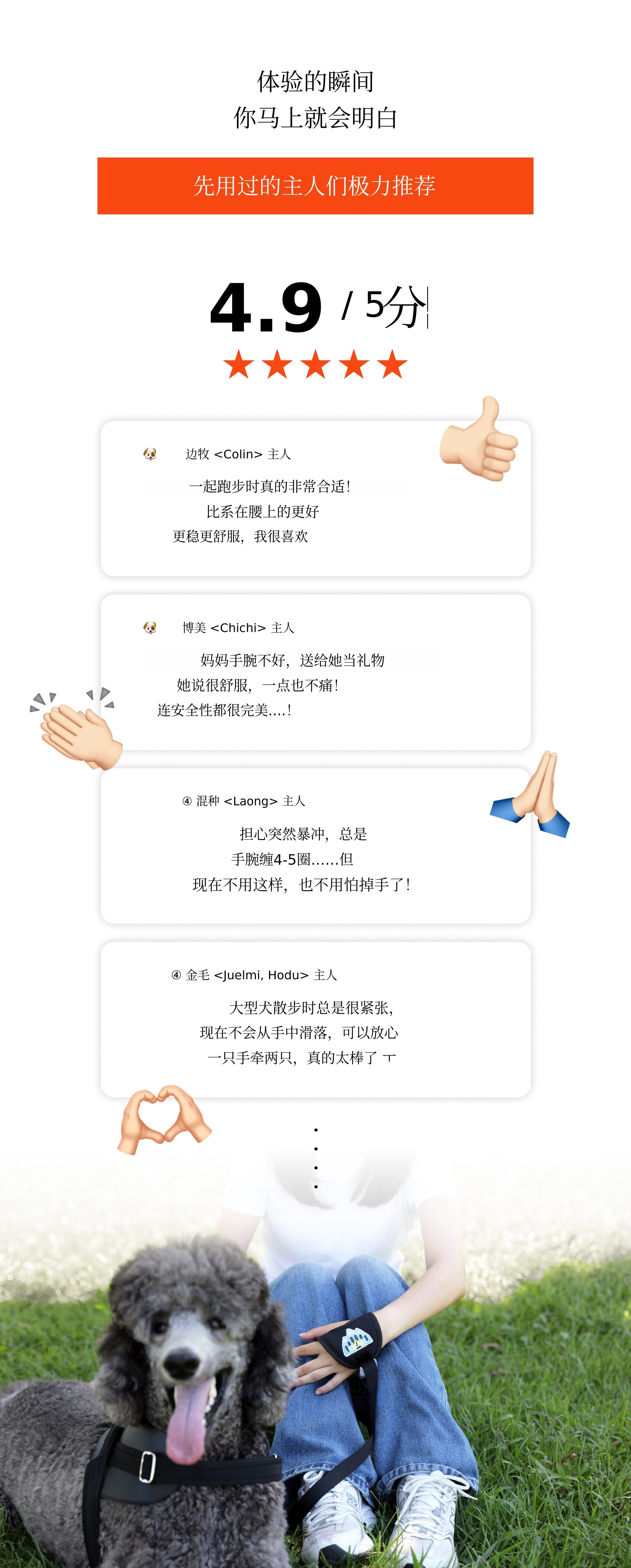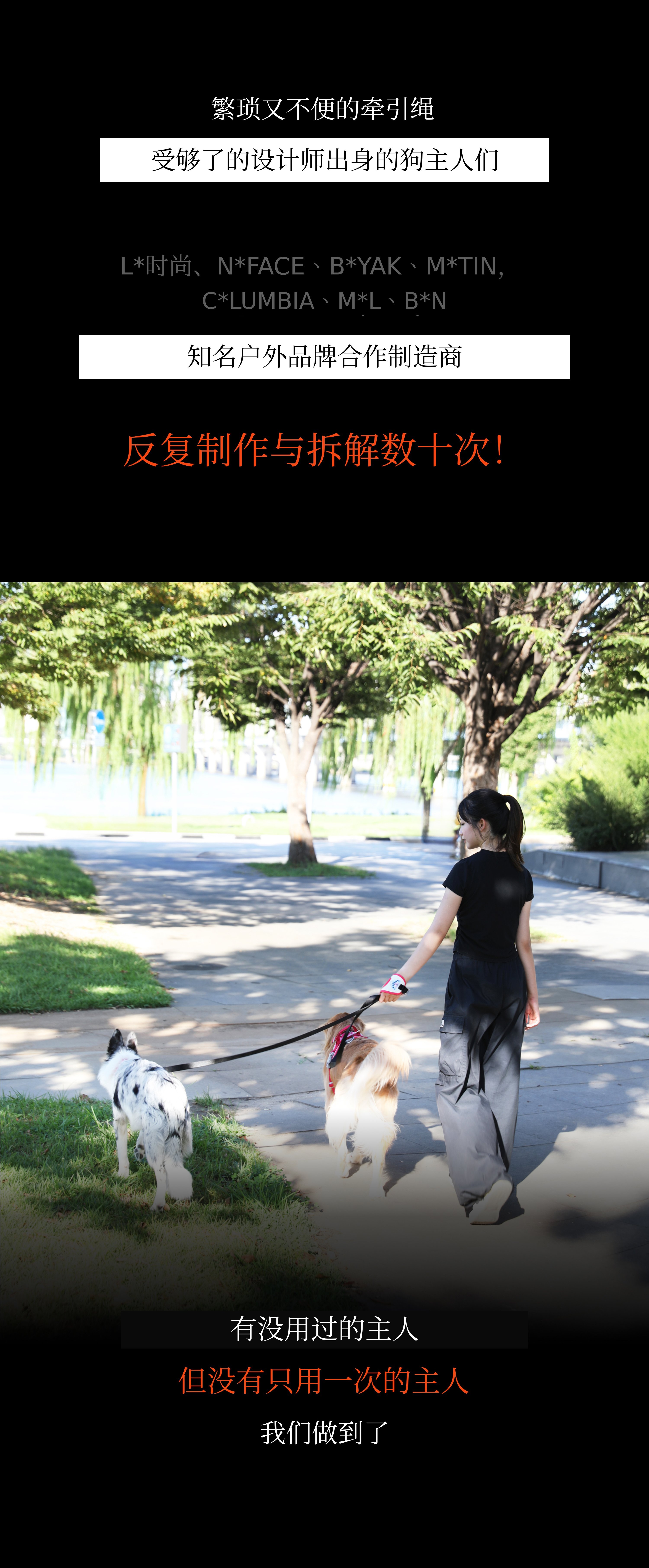 因手腕牵引绳、腰部牵引绳、自动牵引绳而感到不便的养犬人士